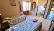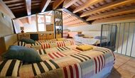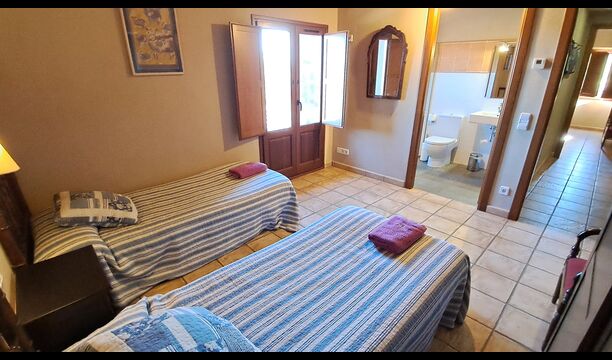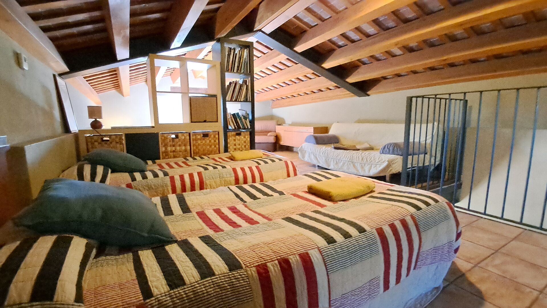 Huset har 6 moderne soveværelser. Det ene soveværelse ligger i stueetagen med badeværelset ved siden af, så det kan bruges i dagtimerne også af loftsværelset på anden sal. På første sal finder du 4 ekstra soveværelser, hver med eget badeværelse. Endelig er det åbne plateau på anden sal udstyret med en dobbeltseng, så det fungerer som det sjette soveværelse, der deler badeværelse med soveværelset nedenunder.