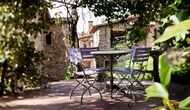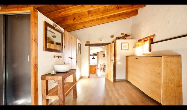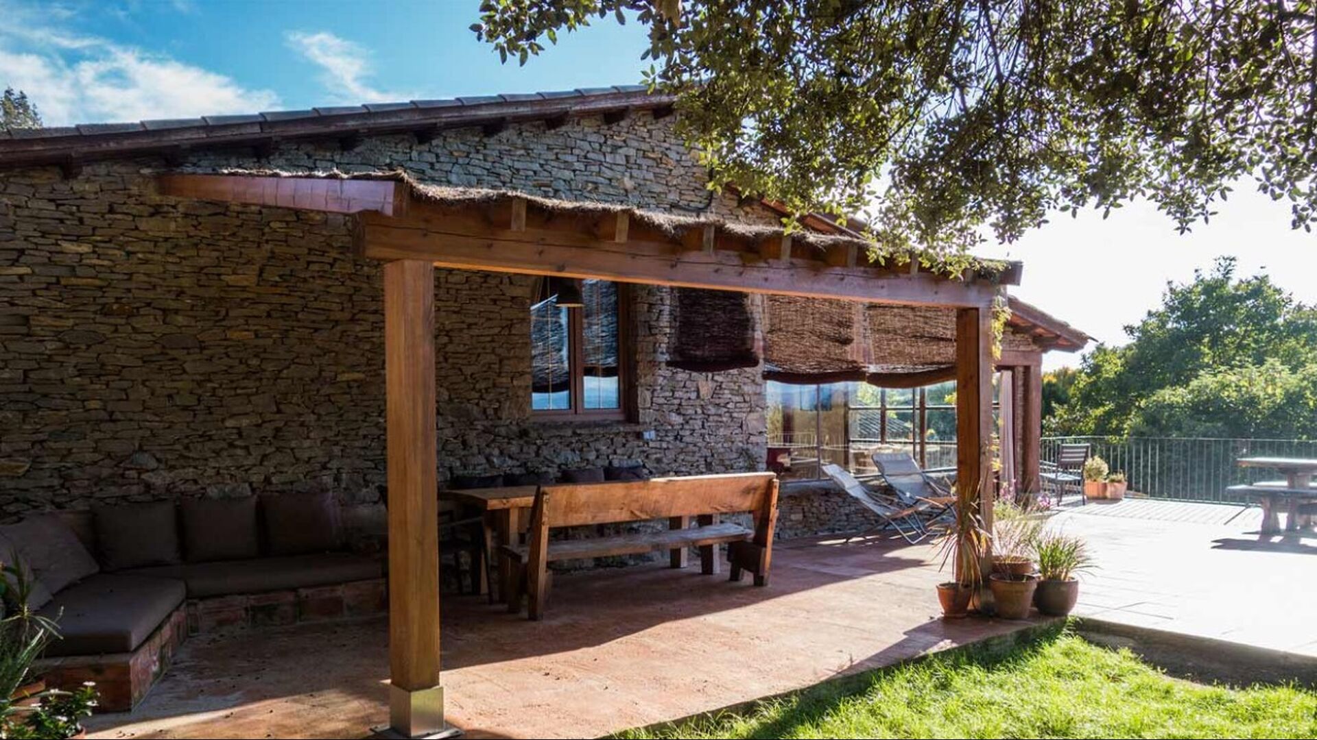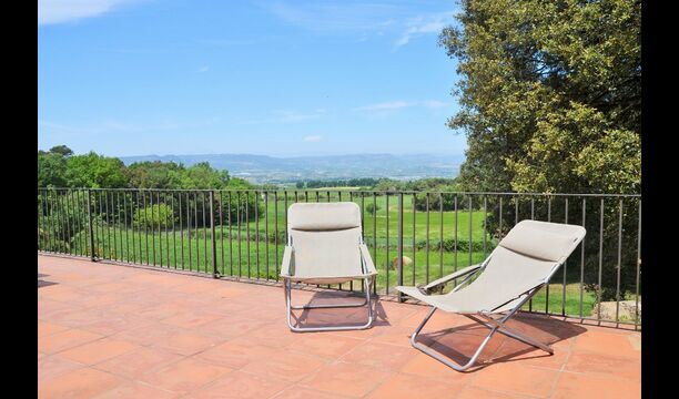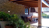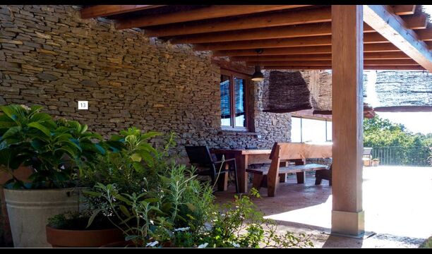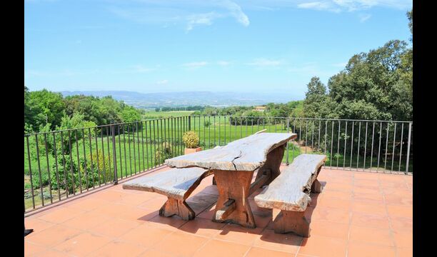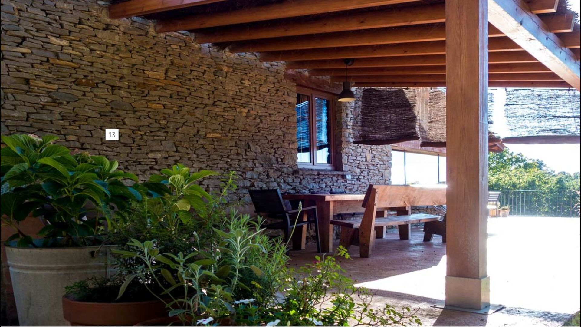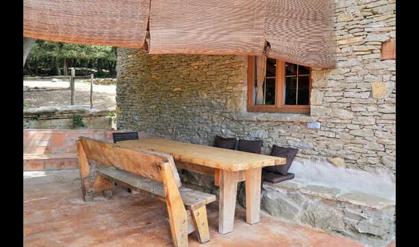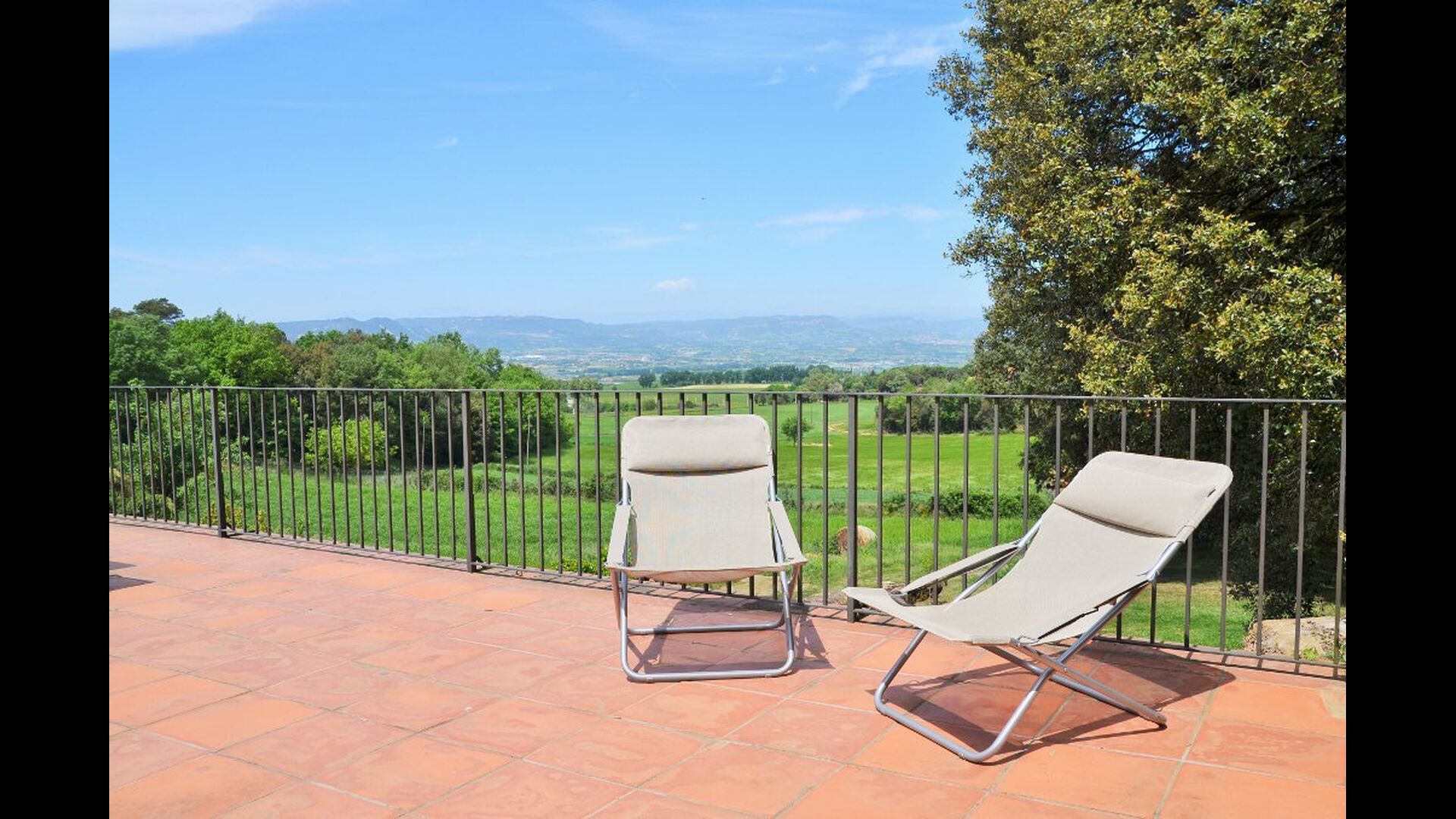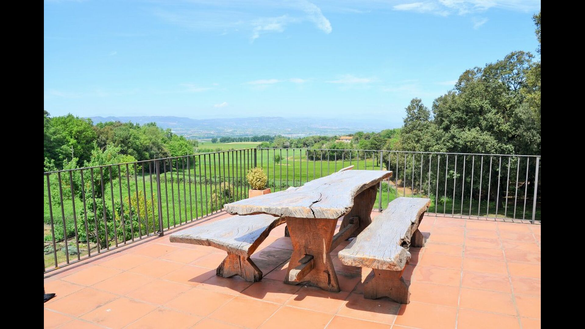 Det er meget nærliggende at bruge meget af tiden udendørs i dette feriehus. Der er først og fremmest en meget stor terrasse – herfra er der en vidunderlig udsigt ud over det omkringliggende landskab og næsten hele vejen til Vic. Et meget flot, hjemmelavet spisebord er placeret netop her, så man kan nyde de lange, lune catalanske aftener her. Der er også et overdækket område, så man kan søge skygge i dagstimerne, hvor solen står højest på himlen.