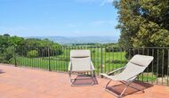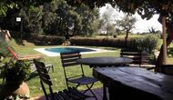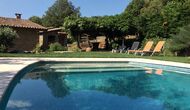 Oppe ved swimmingpoolen er der liggestole, så man kan nyde solen, mens børnene leger i det afkølende vand. Lige ved siden af er der ligeledes en flot terrasse, der er overdækket af planter.
