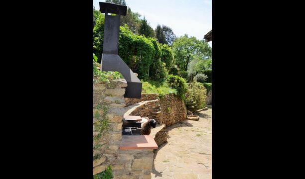 Ved indgangen til huset er der en flot, stor grill, lavet i sten.