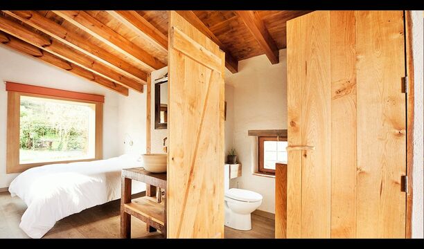 Der er i alt fire rummelige dobbeltværelser i huset. De to store masterbedrooms deler et badeværelse, mens de to andre soveværelser har deres eget en suite badeværelse. Soveværelserne er unikt møbleret – de fleste elementer håndlavet af snedkeren. Bl.a. er der en flot skulptur i det ene soveværelse, som også har udsigt til hestene, og i et andet er der en gammel snedkerbænk omdannet til et flot bord.