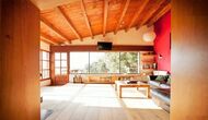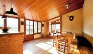 Huset har et hyggeligt, veludstyret køkken, der er åbent indrettet i forbindelse med et spiseområde. Herfra er der udgang til de to terrasser. Derudover er der en rummelig stue med TV, komfortable siddemøbler og store vinduer, som skaber en let og lys stemning. Der er endda også en god udsigt fra selve stuen.