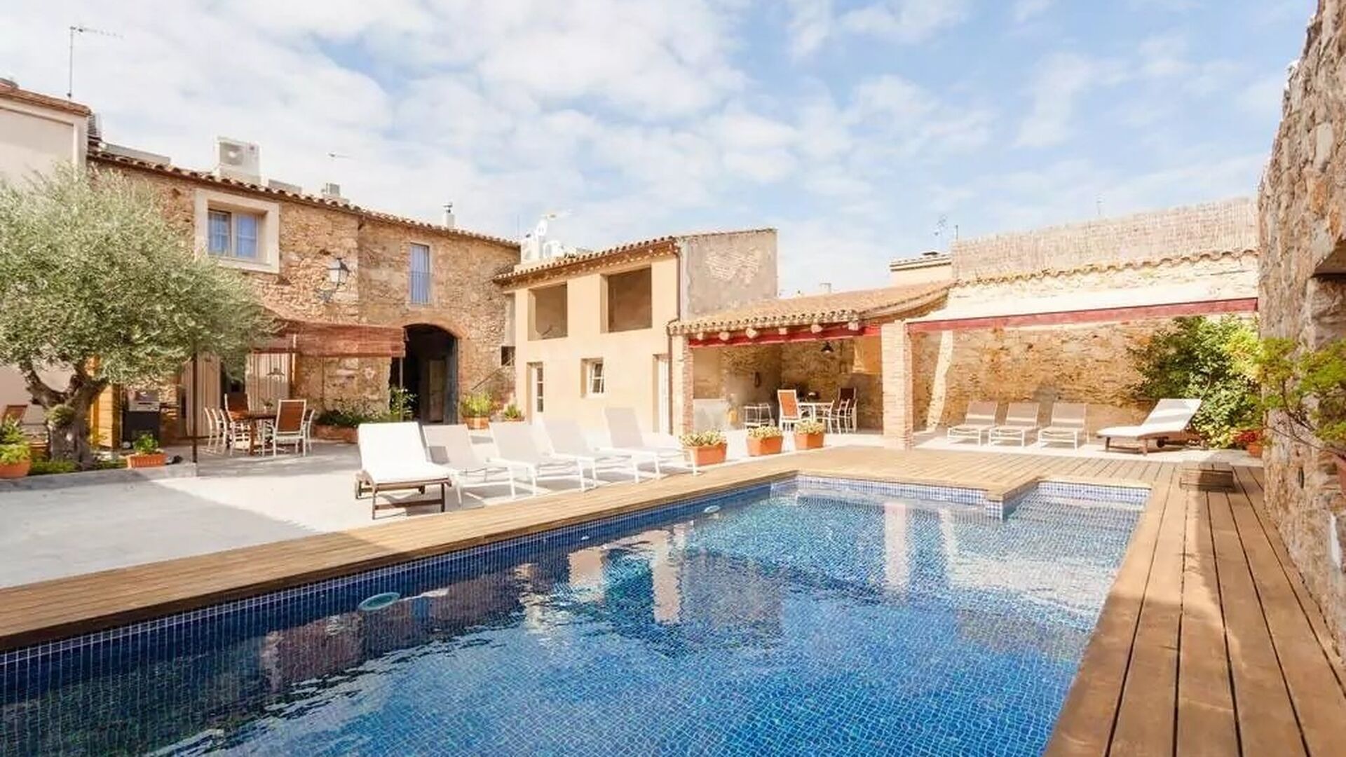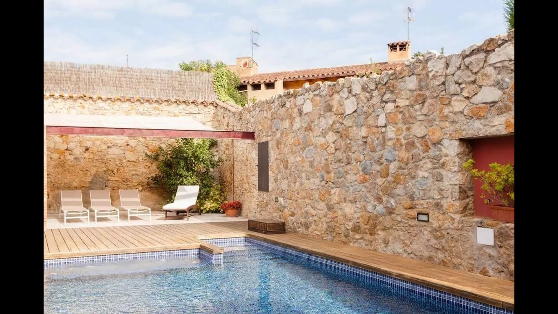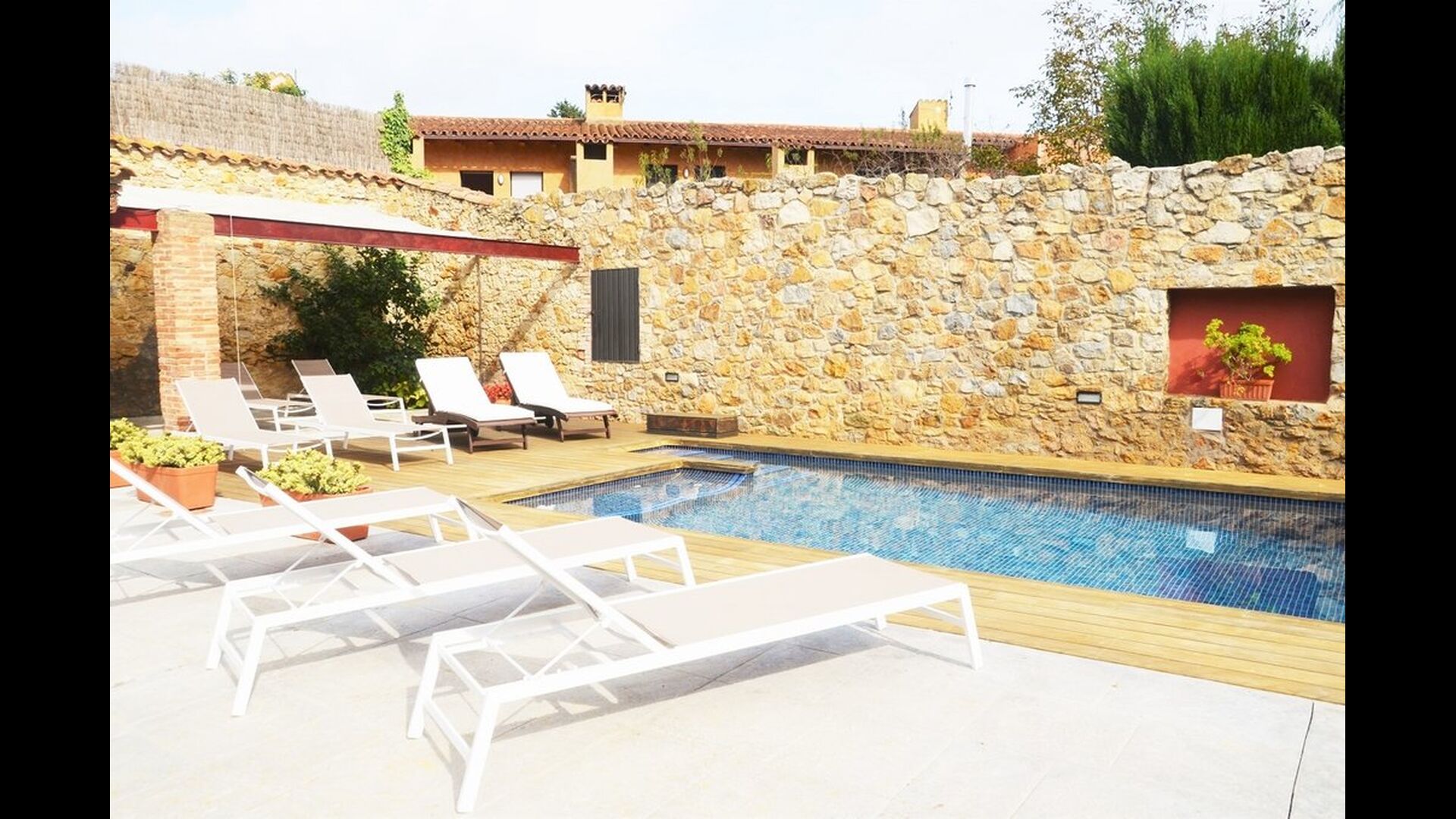 Normalt kan man ikke både have pool og bo i byen - dette er dog tilfældet i Samarit de Pals. Her får man en dejlig pool på 8x4 meter, med trapper og varierende dybder, så de mindre i feriegruppen også kan få fuld gavn af den. Poolområdet har diverse luksuriøsiteter, bl.a. liggestole, skyggeområder, bad, etc., så der er god mulighed for at finde sig til rette og slappe af ved poolen. Gården og poolen er delt med den anden lejlighed, men der er en privat terrasse med grill og spisebord som I har helt for jer selv.