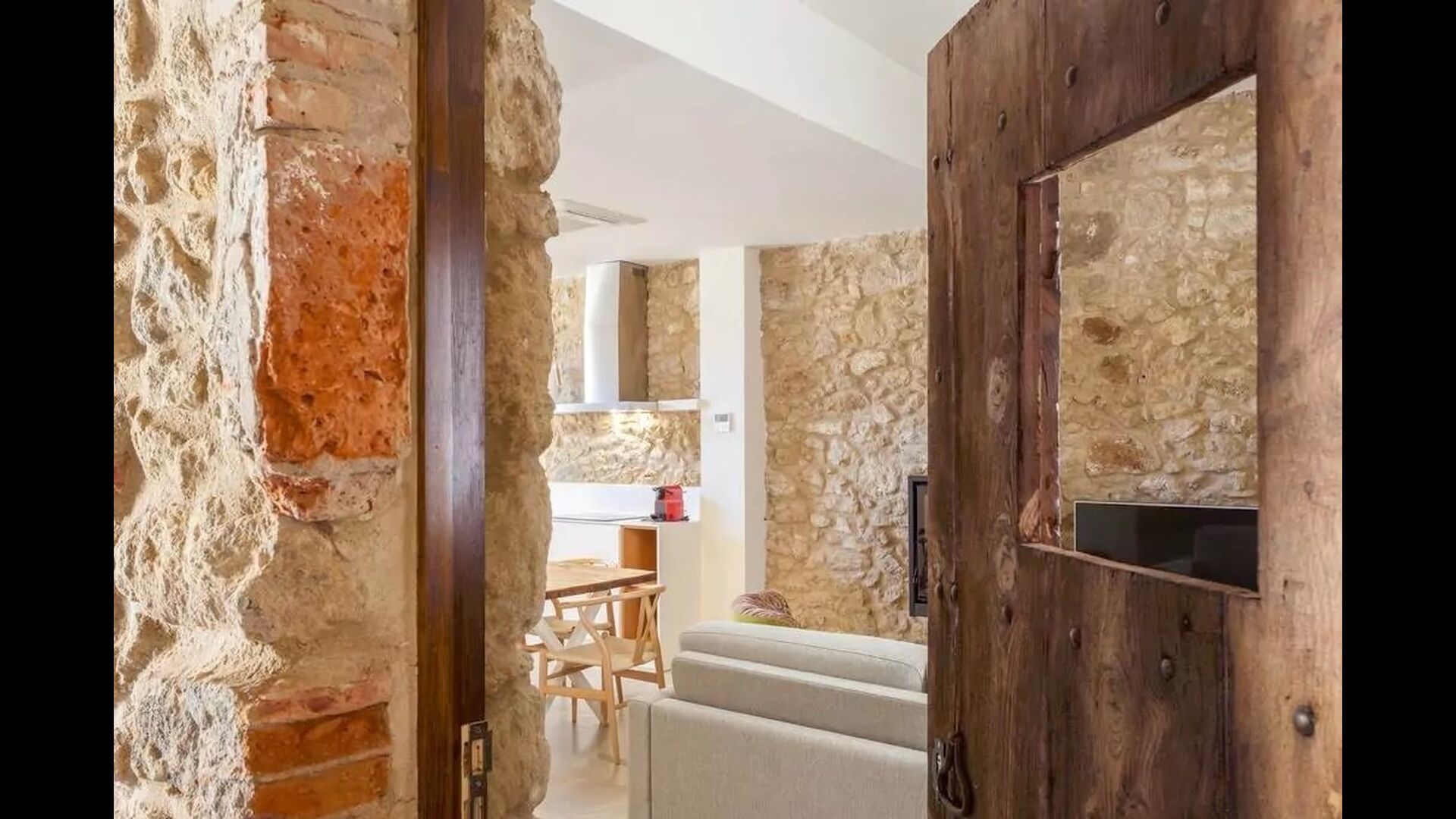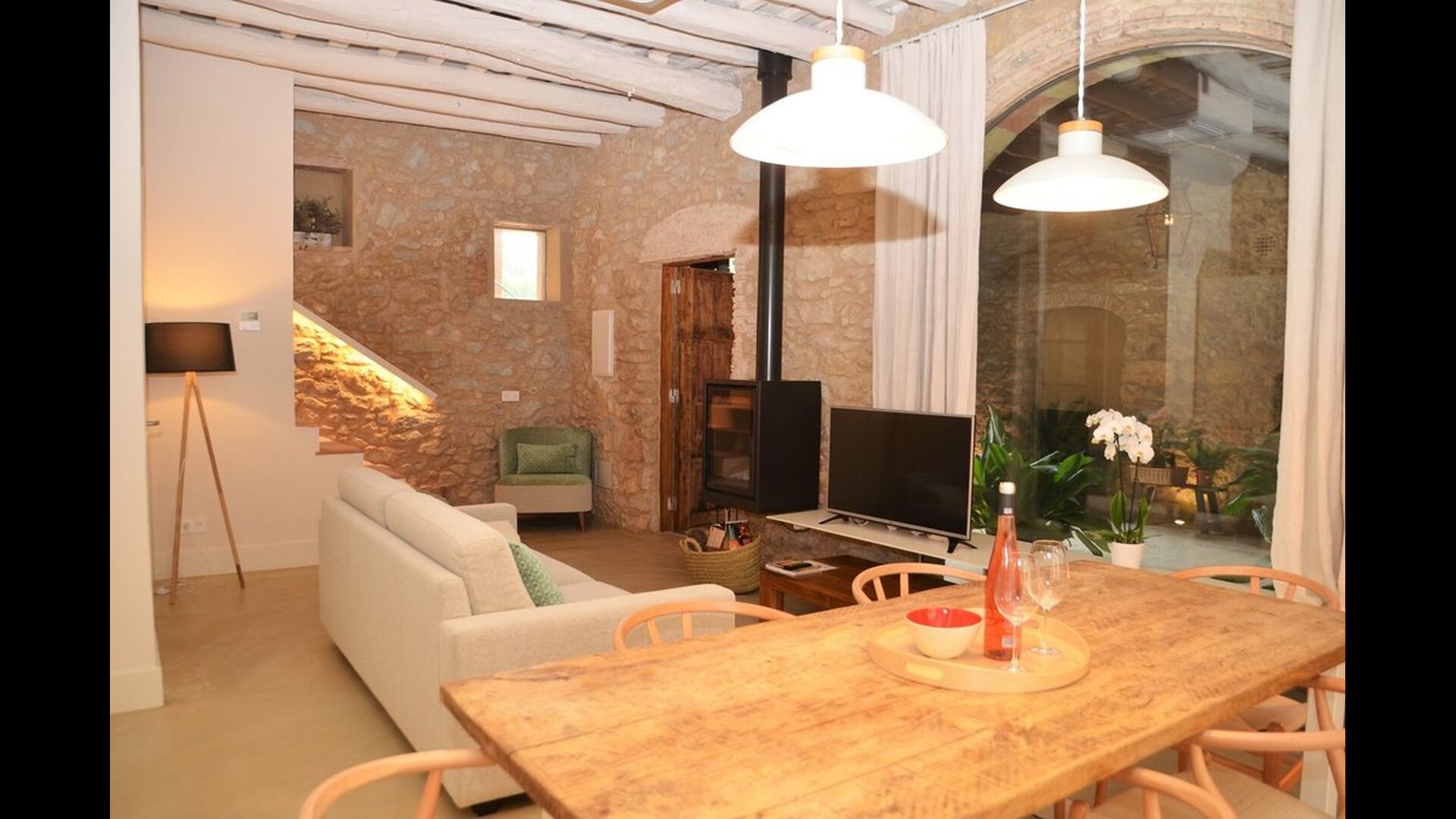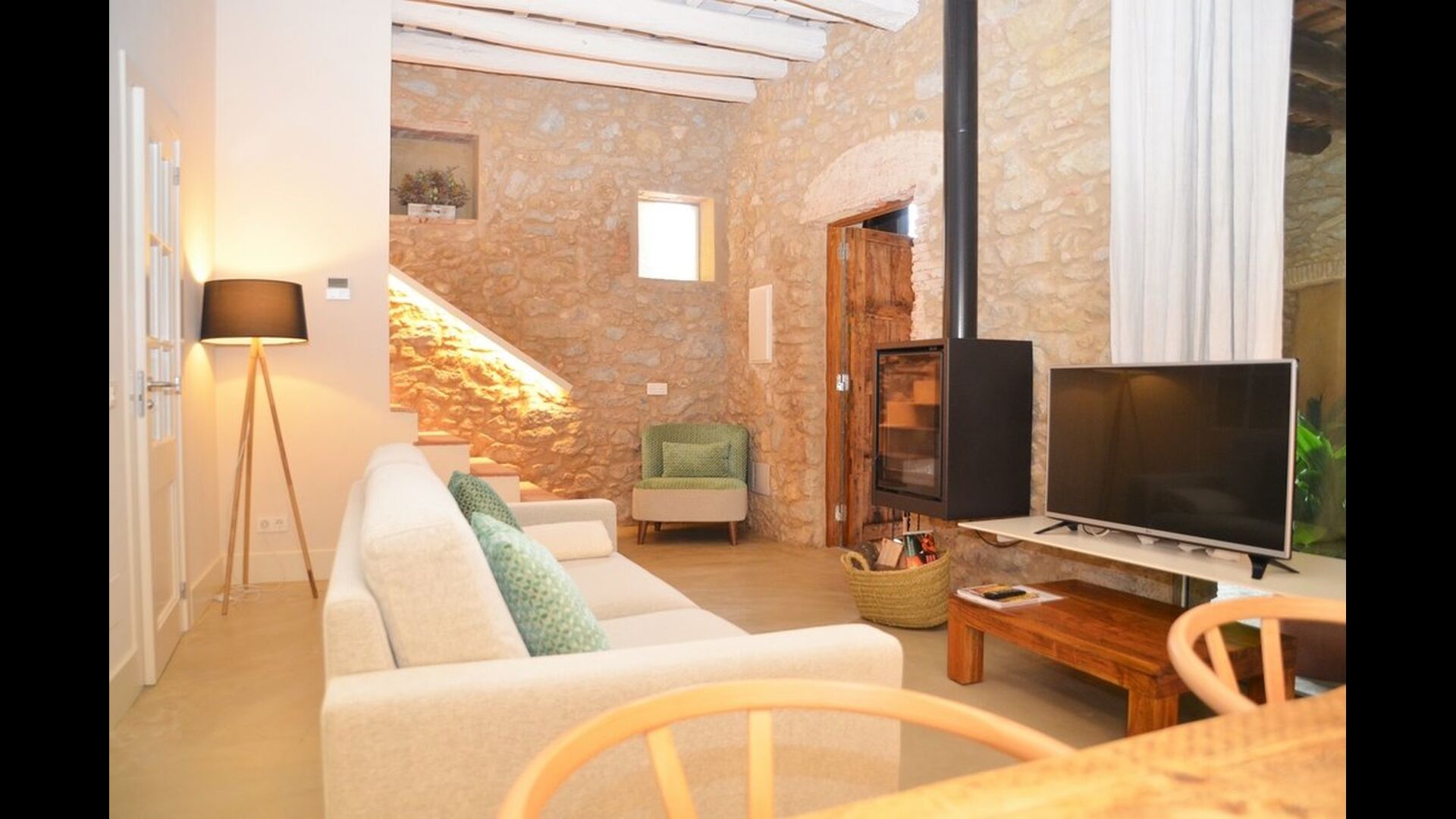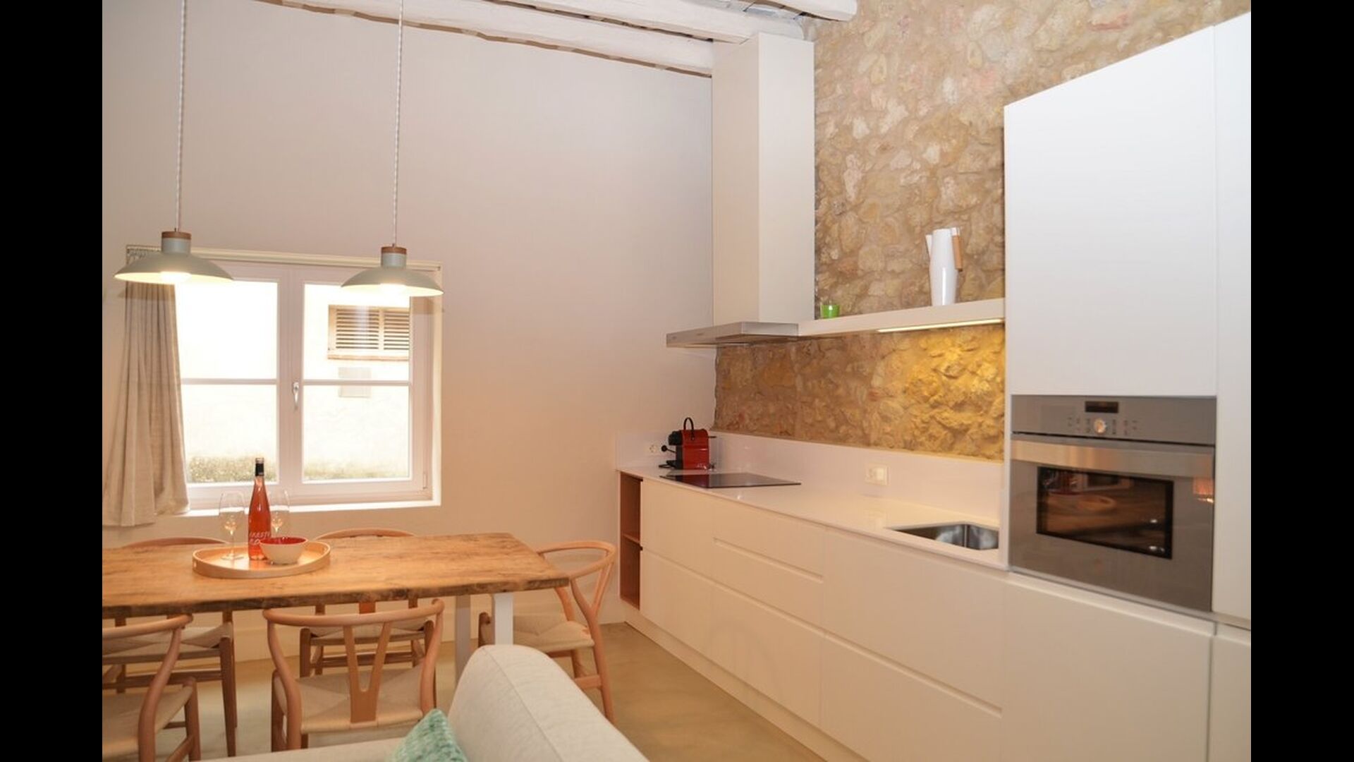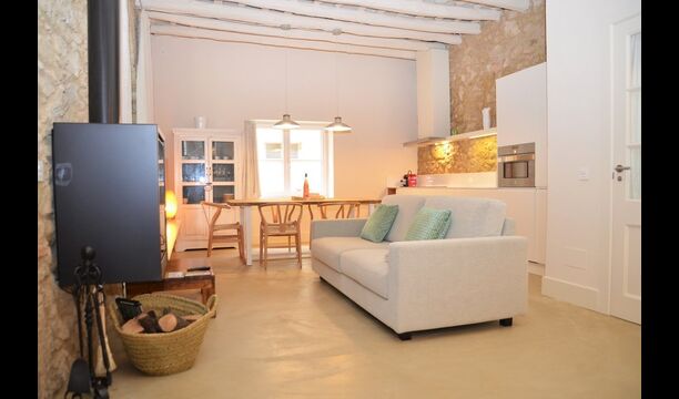 Lejligheden opnår en optimal kombination af det moderne og det autentiske. Huset, der oprindeligt er fra 1780, blander bl.a. traditionelle catalanske stenvægge og antikke borde med nye designermøbler og alverdens andre moderne faciliteter, så man får en ægte, autentisk oplevelse med alle nutidens komforter.