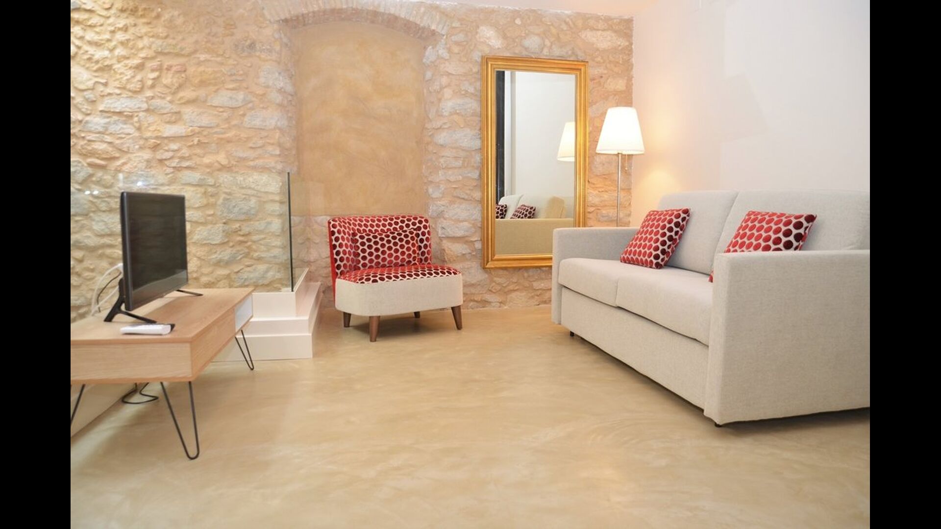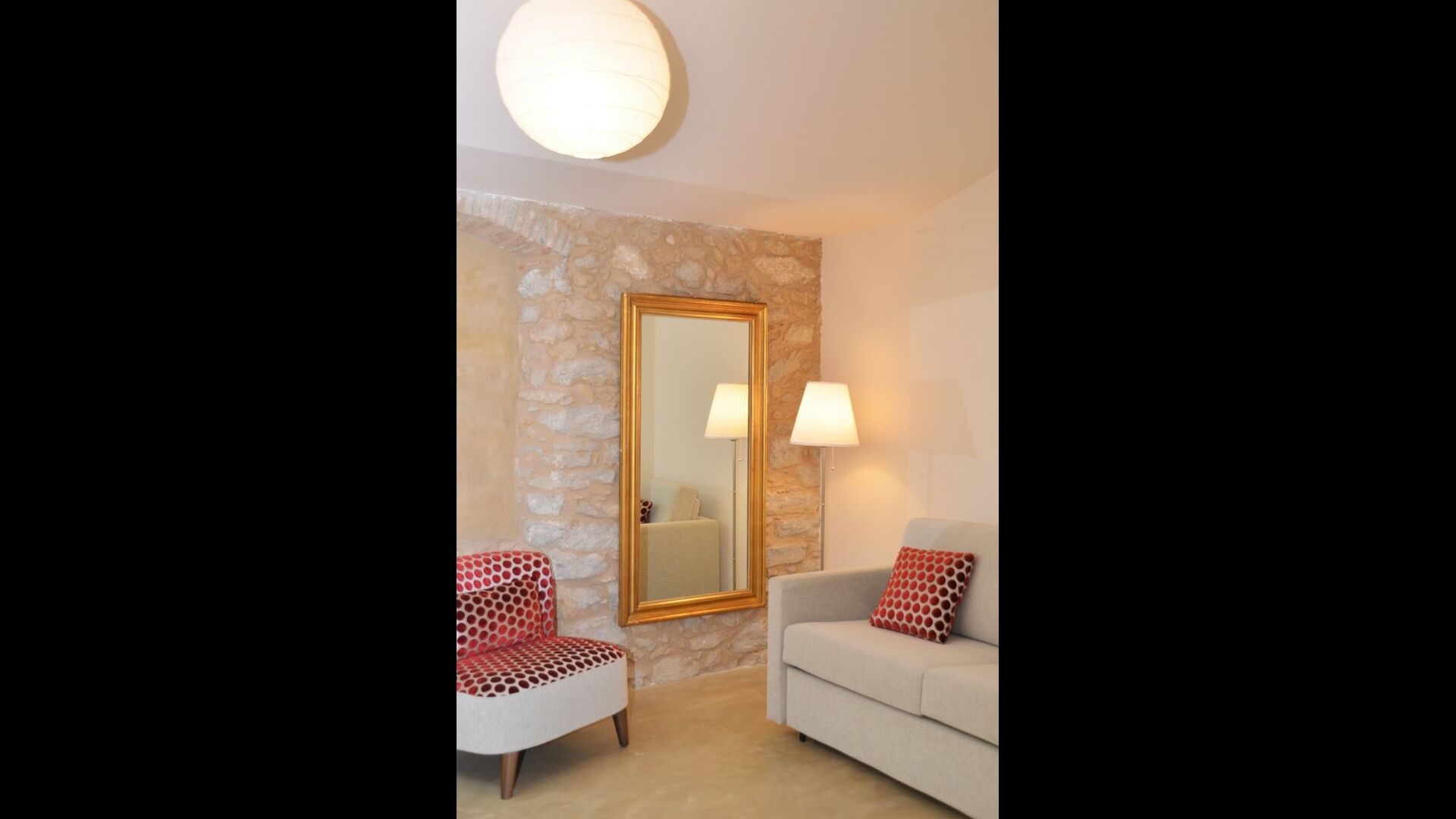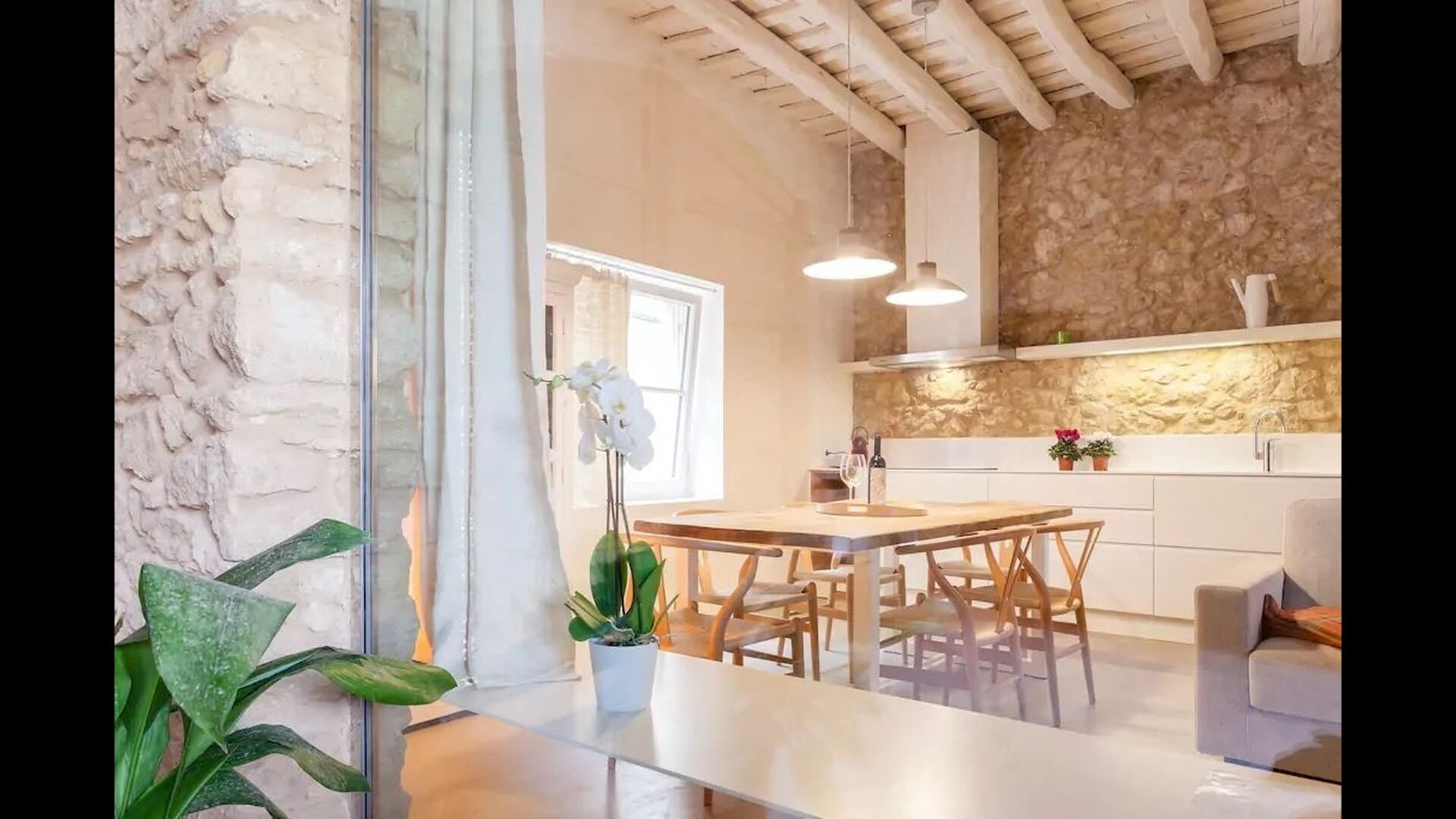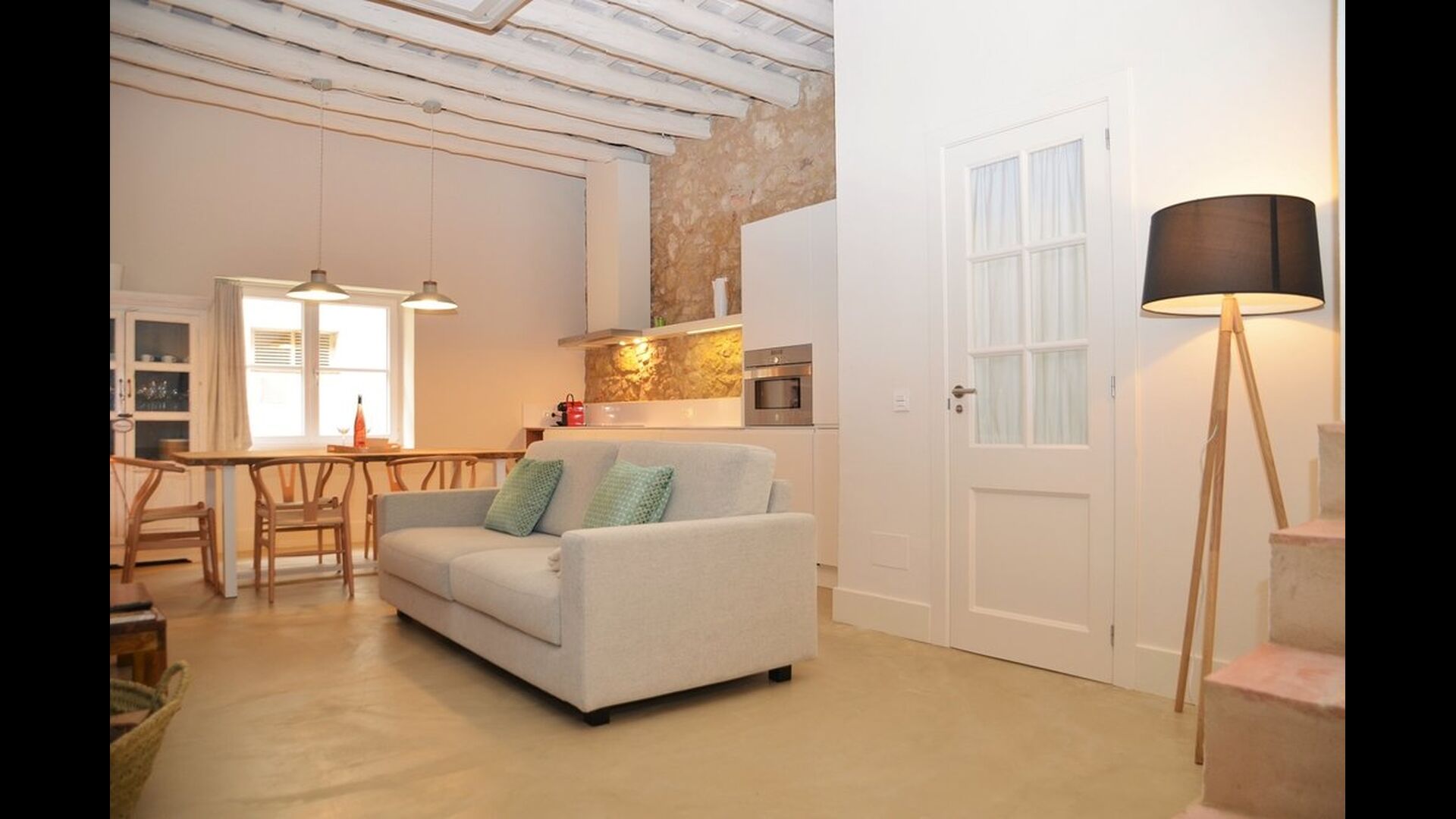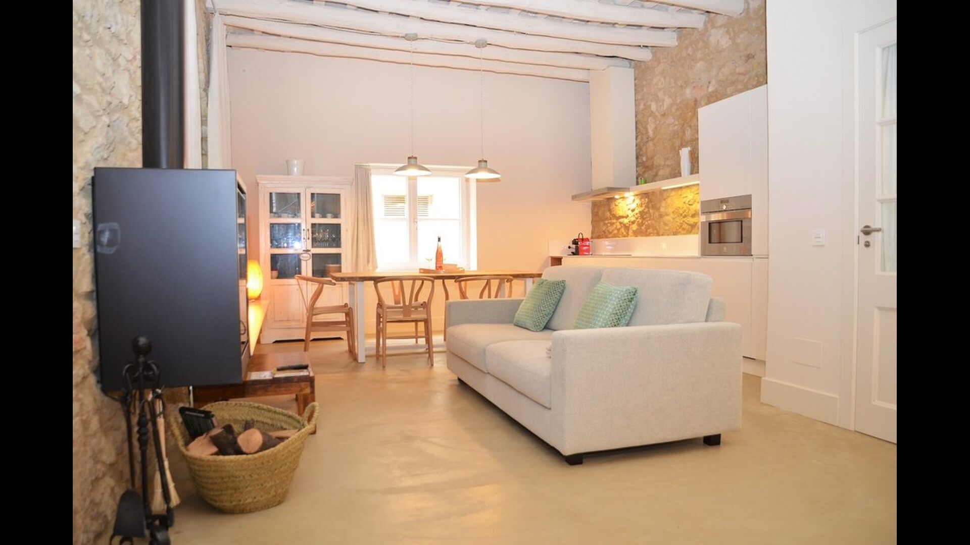 Lejligheden opnår en optimal kombination af det moderne og det autentiske. Huset, der oprindeligt er fra 1780, blander bl.a. traditionelle catalanske stenvægge og antikke borde med nye designermøbler og alverdens andre moderne faciliteter, så man får en ægte, autentisk oplevelse med alle nutidens komforter.