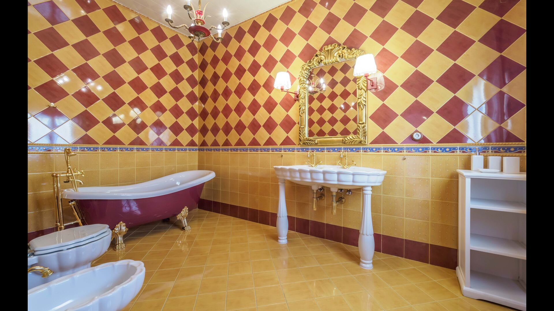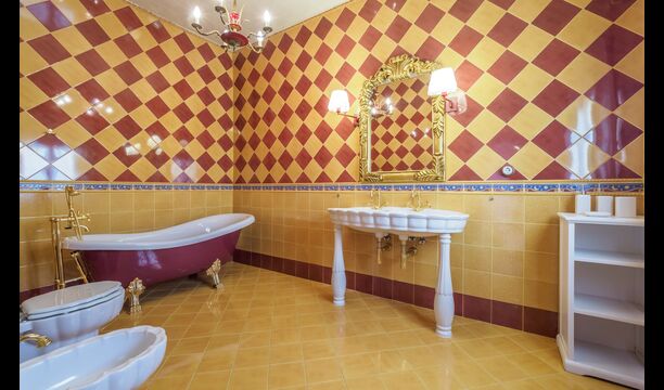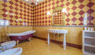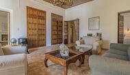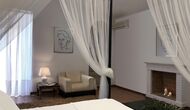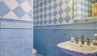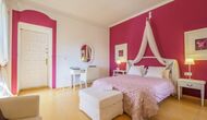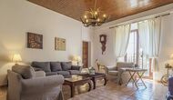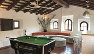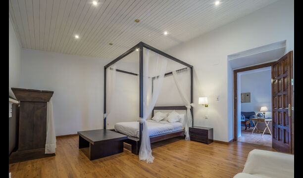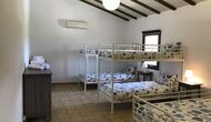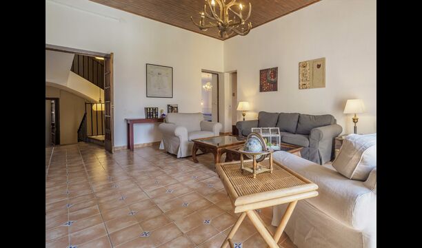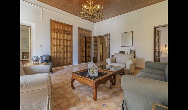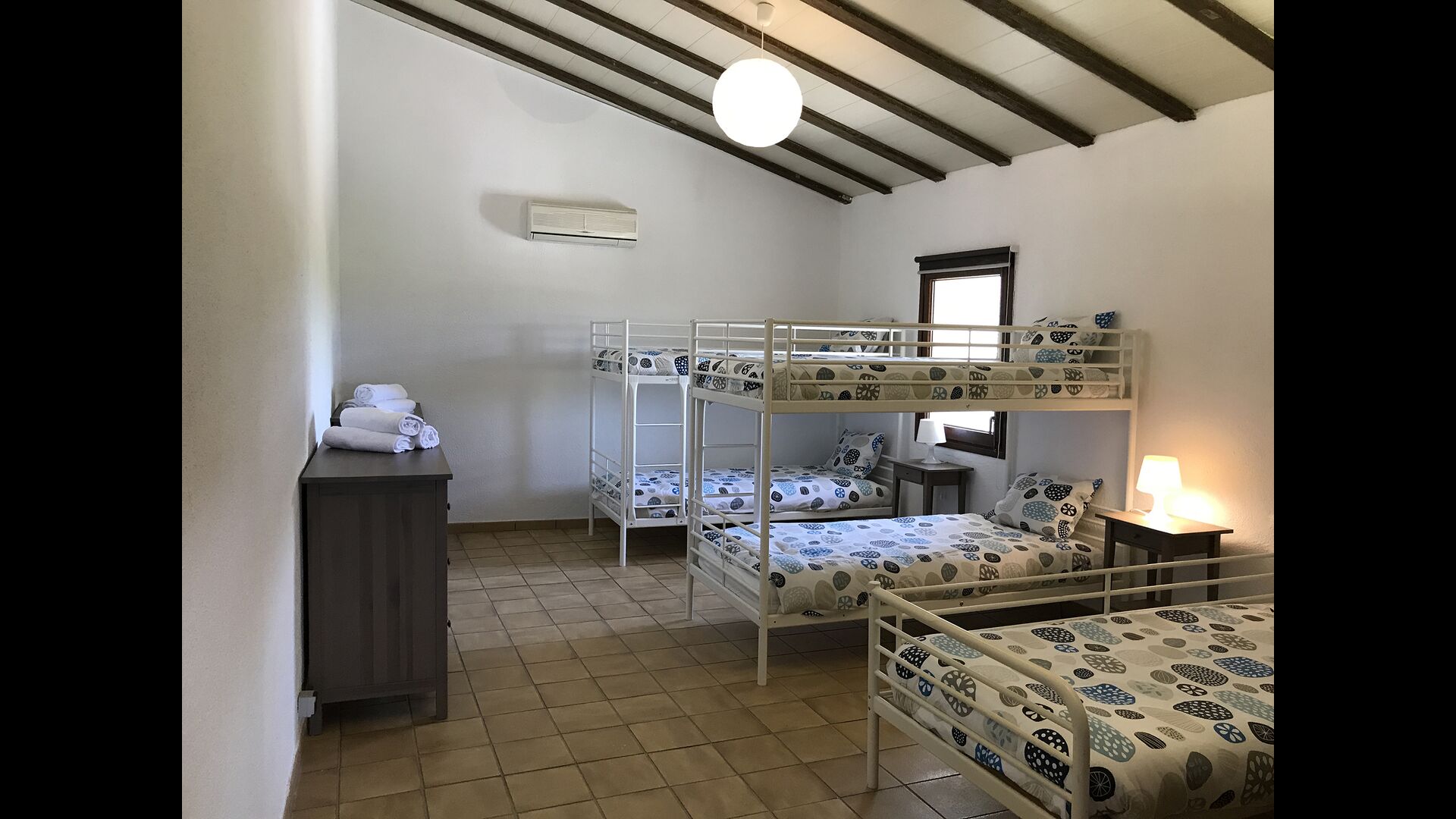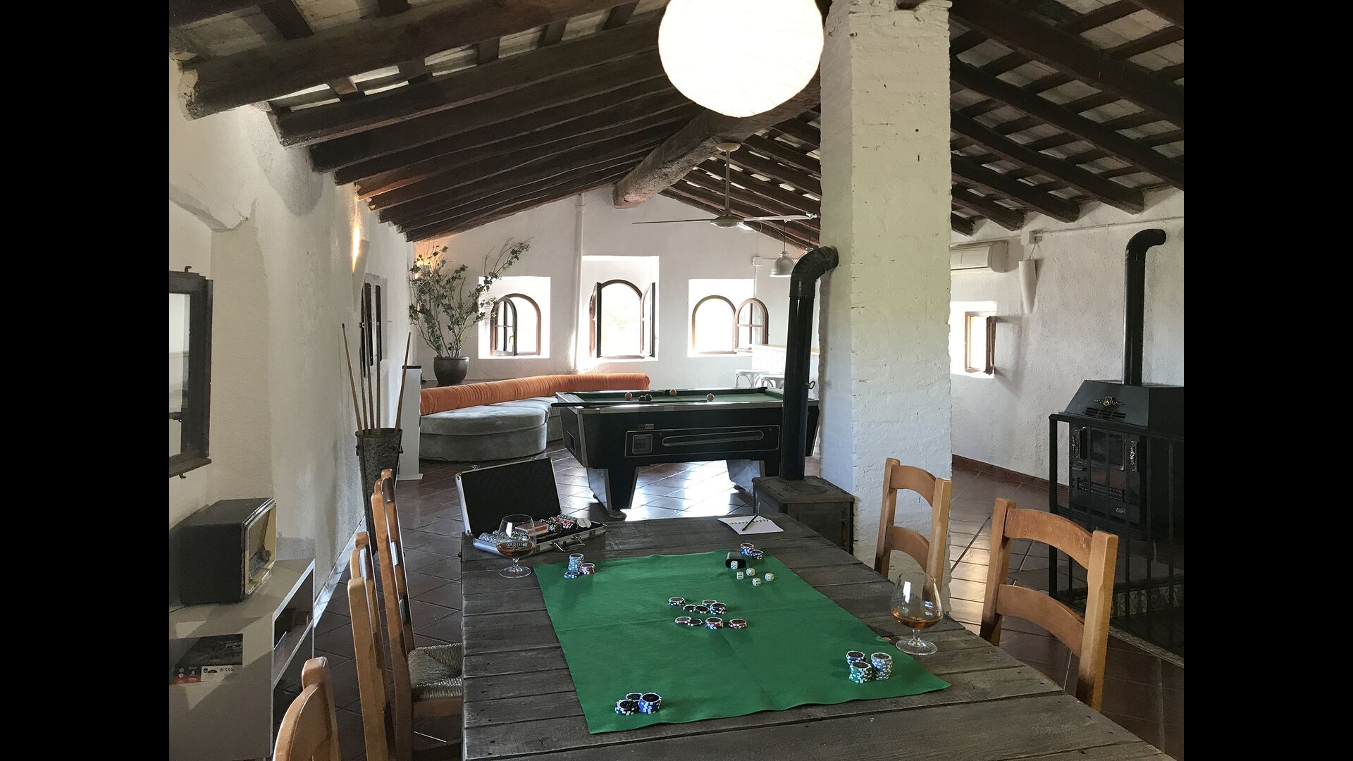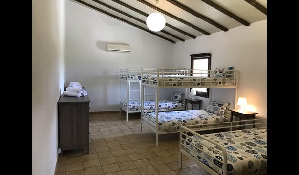 Huset har en charmerende stue med komfortable sofaer, et fjernsyn og endda en original pejs. Stuen er forbundet til spisestuen, som har et stort bord med plads til 26 personer. Der er et charmerende og fuldt udstyret køkken, endda med et ekstra køleskab og fryser til store grupper. Huset har i alt 9 soveværelser, hvoraf 8 af soveværelserne er dobbeltværelser og sidst men ikke mindst børnenes værelse beliggende på loftet. Dette soveværelse har 4 køjesenge og 2 enkeltsenge og er det perfekte værelse til børn. Lige uden for dette rum finder du det fantastiske spillerum, som er det perfekte sted at hænge ud og have det sjovt med familien. Værelset er indrettet til dart, pool, kort og brætspil.