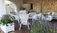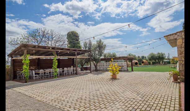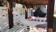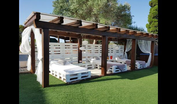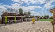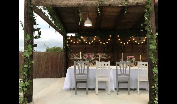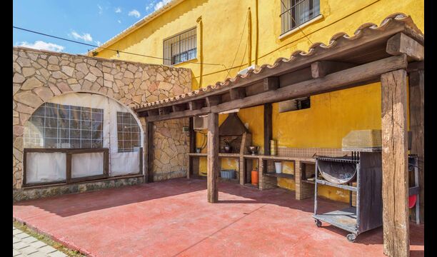 Der er også et stor BBQ område hvor man kan kokkererer i dejlige grønne omgivelser. Lige ved BBQ området er der en stor, overdækket udendørs terrasse med et langbord som har plads til alle 26 gæster - det perfekte sted at spise med hele gruppen. Der er endnu en overdækket terrase med masser af sofaer og lænestole.
