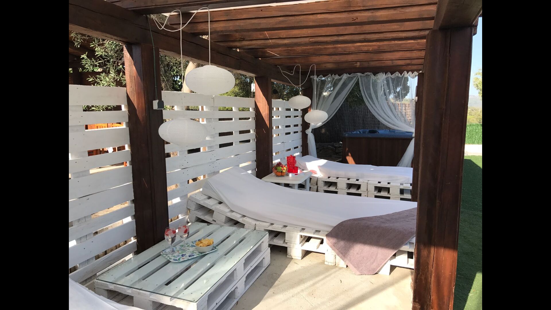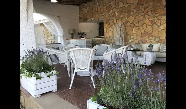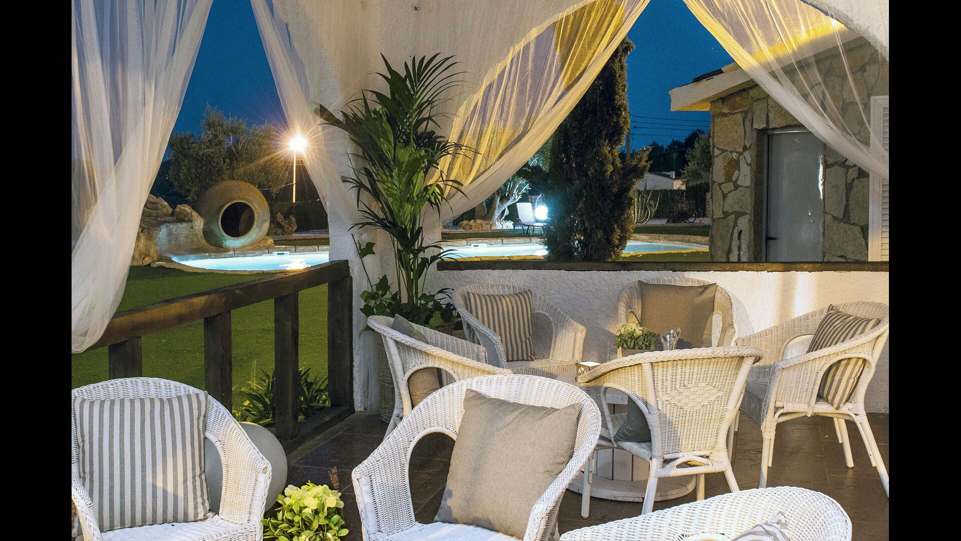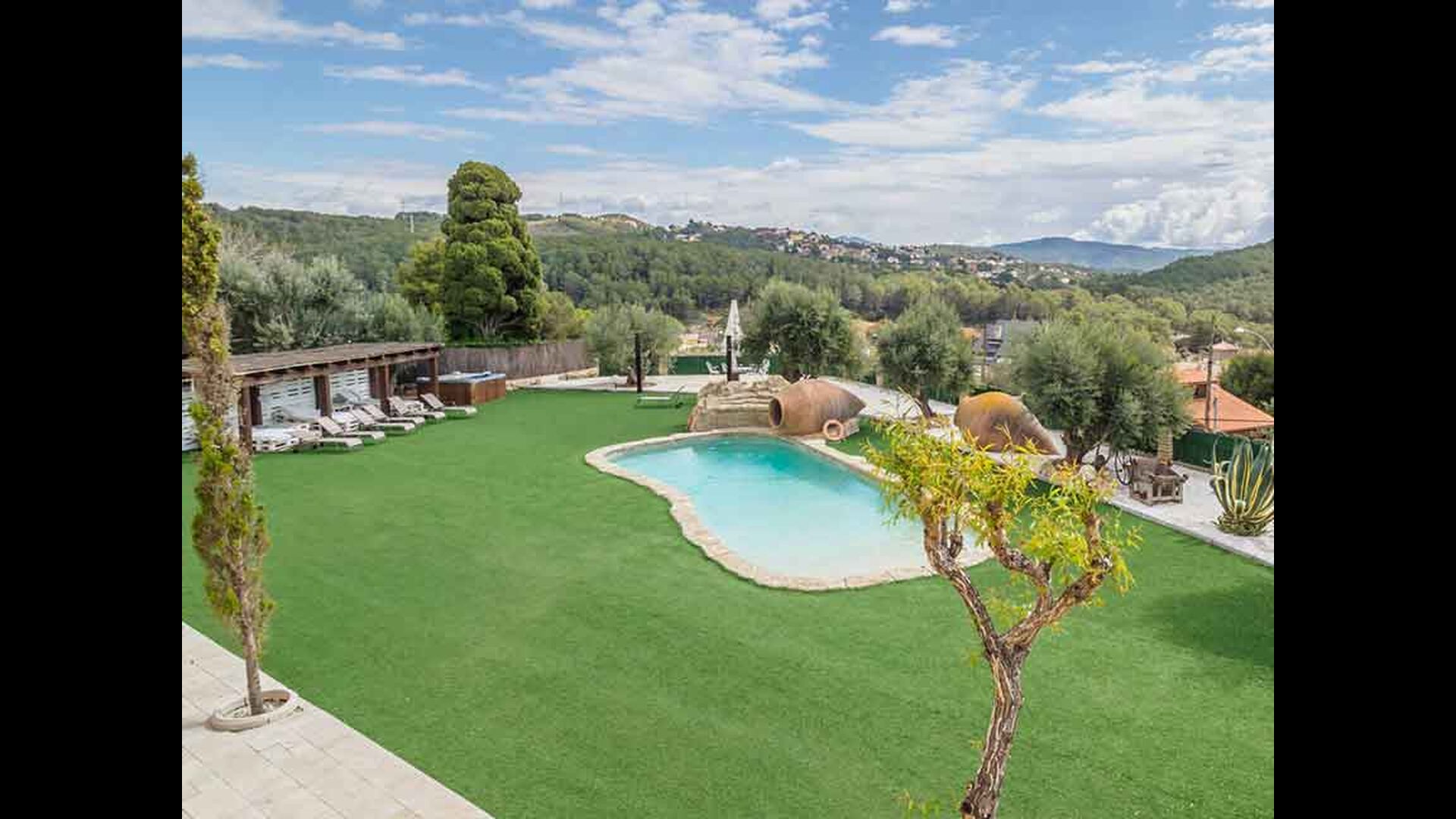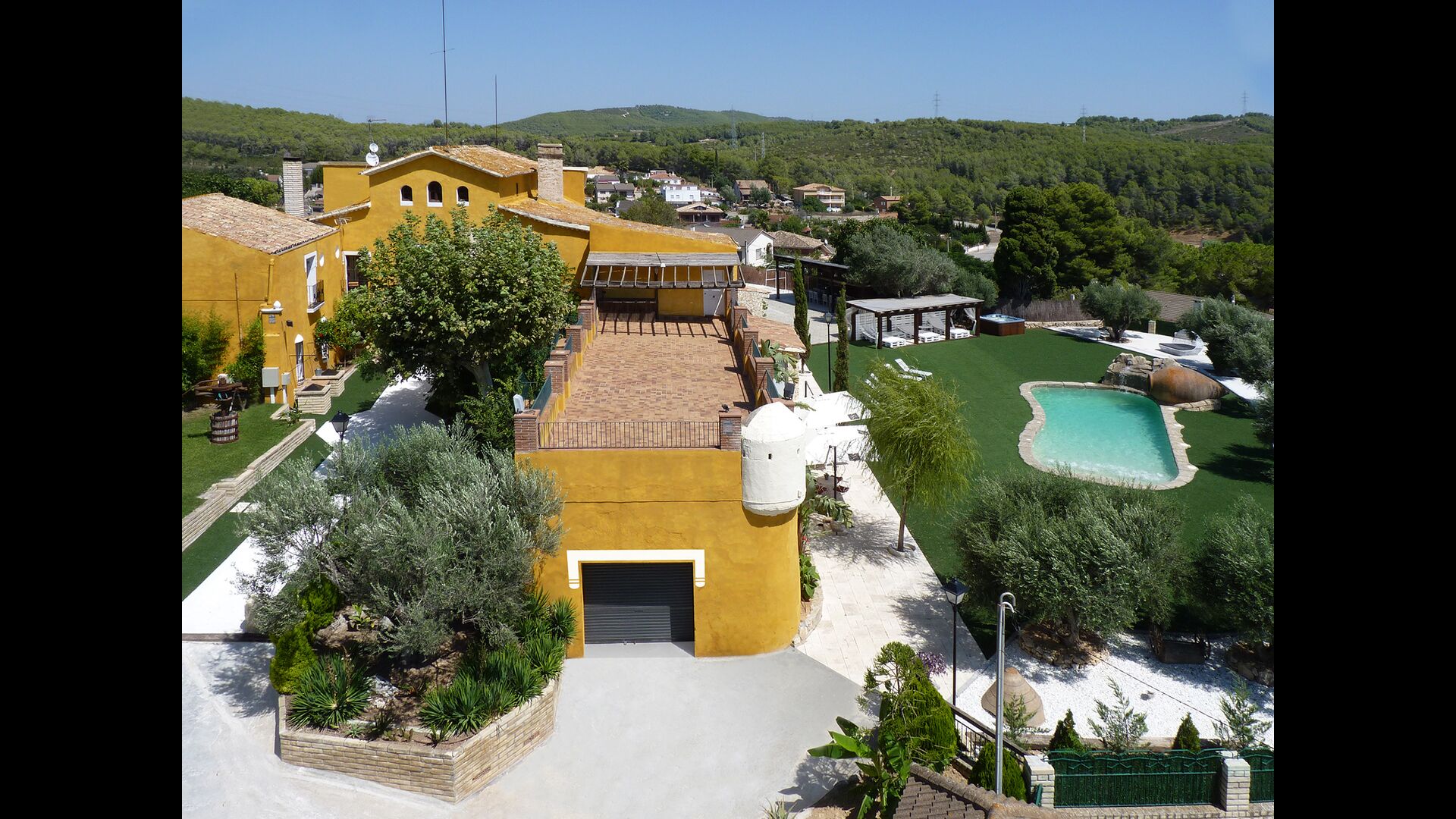 Feriehusets udendørs område består af mere end 4000 kvadratmeter deriblandt en kæmpe tagterrasse på 120 kvadratmeter. Tagterrassen har en fantastisk panoramaudsigt over området, hvor bjergkæden Garraf kan ses i den fjerne baggrund. Det er det perfekte sted til at nyde de varme sommer aftener med et glas vin fra den lokale vinmark. Der er også et skønt chill-out område lige ved siden af den fantastiske pool. Området har overdækket solsenge og borde, hvor man kan ligge og slappe af og nyede det varme vejr. Der er også veranda med en jacuzzi, som har plads til op til 4 voksne! Vi forestiller os, at du vil tilbringe masser af din tid her.