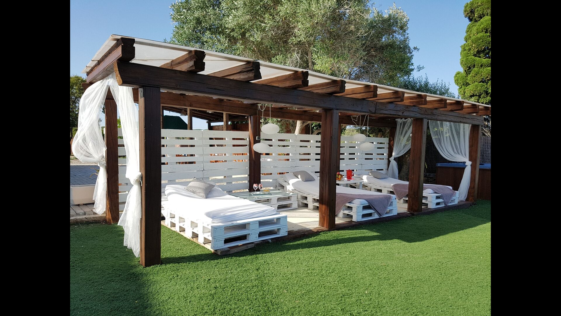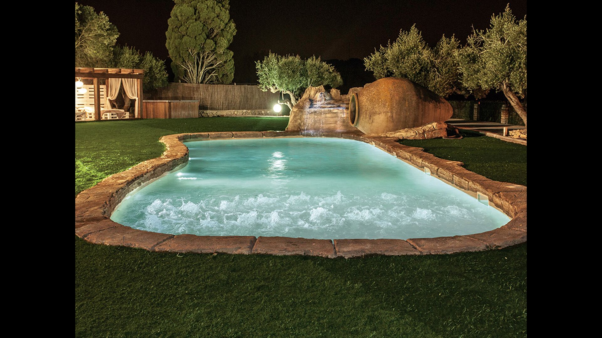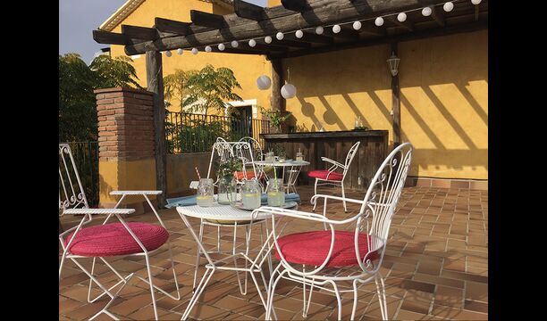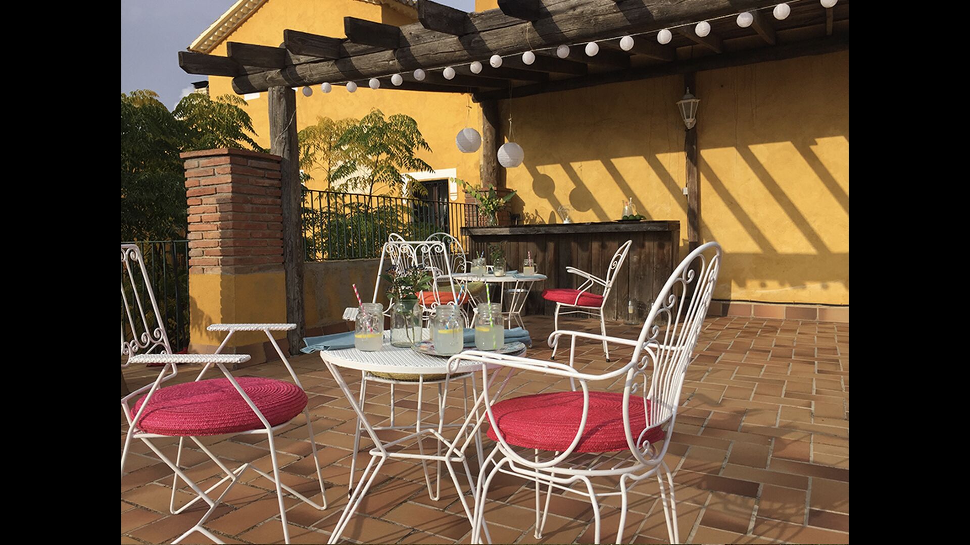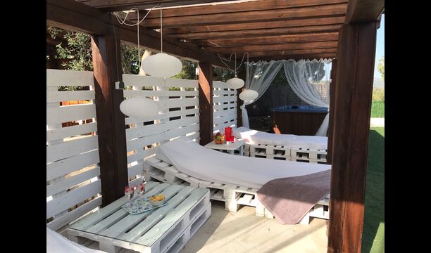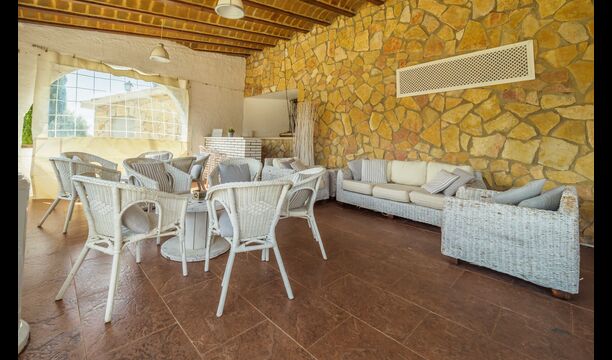 Feriehusets udendørs område består af mere end 4000 kvadratmeter deriblandt en kæmpe tagterrasse på 120 kvadratmeter. Tagterrassen har en fantastisk panoramaudsigt over området, hvor bjergkæden Garraf kan ses i den fjerne baggrund. Det er det perfekte sted til at nyde de varme sommer aftener med et glas vin fra den lokale vinmark. Der er også et skønt chill-out område lige ved siden af den fantastiske pool. Området har overdækket solsenge og borde, hvor man kan ligge og slappe af og nyede det varme vejr. Der er også veranda med en jacuzzi, som har plads til op til 4 voksne! Vi forestiller os, at du vil tilbringe masser af din tid her.