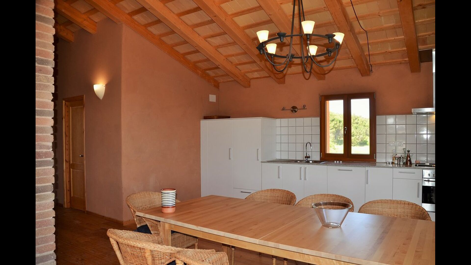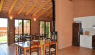 Det naturlige samlingspunkt for din ferie er det store fællesrum. Her kan der laves mad i det veludstyrede køkken, og der er spiseområde med stort spisebord, og direkte adgang til swimmingpoolen og den udendørs terrasse.