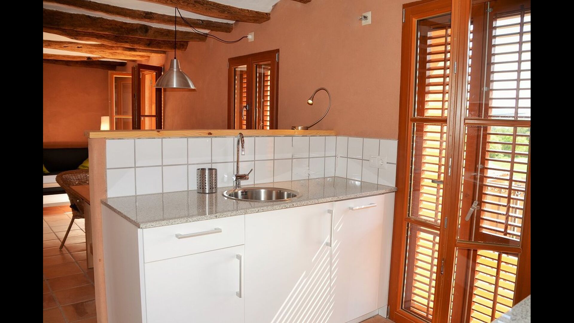 Feriehuset er for nylig blevet fuldstændig gennemrenoveret. Det er designet til at være så miljøvenligt som muligt. Der bruges solenergi, og vandet genbruges i et avanceret økosystem ved siden af ​​huset. Væggene er lavet af overskydende ler, fra dengang swimmingpoolen blev bygget. Der er et specielt varmesystem integreret i væggene (et af ​​de første huse i Catalonien til at anvende denne teknik). Der er altså nogle fremragende arkitektoniske løsninger og alle de moderne faciliteter, du har brug for.
