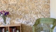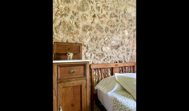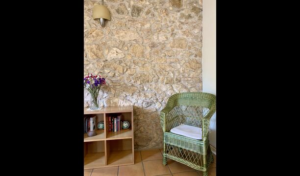 Inde i Casa Hellas bliver du mødt af en hyggelig, rummelig og funktionel atmosfære. Huset har to etager. Stueetagen består af et stort, åbent fællesrum, som omfatter et stort og veludstyret køkken, en spisestue og en sofa stue. Huset har aircondition så man kan let føle sig tilrette i de behagelige temperatuer. Der er også et fælles badeværelse i stueetagen tæt ved terrassen og swimmingpoolen. I midten af rummet er en smuk åben trappe, som lader lyset komme ind fra ovenlysvinduerne i taget. Ovenpå finder du de fire soveværelser, som alle har ensuite badeværelser. Soveværelserne er mere eller mindre af samme størelse, to af dem vender ud mod den lille gade, og de to andre ud mod haven. To af soveværelserne har to enkeltsenge, de andre to dobbeltsenge.