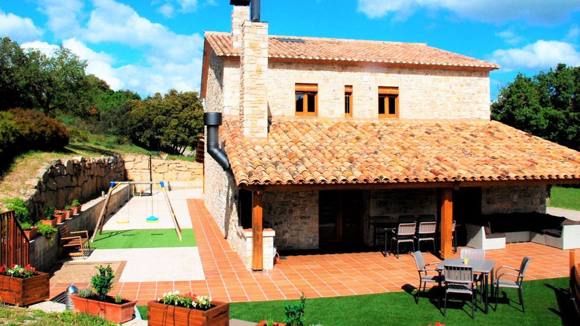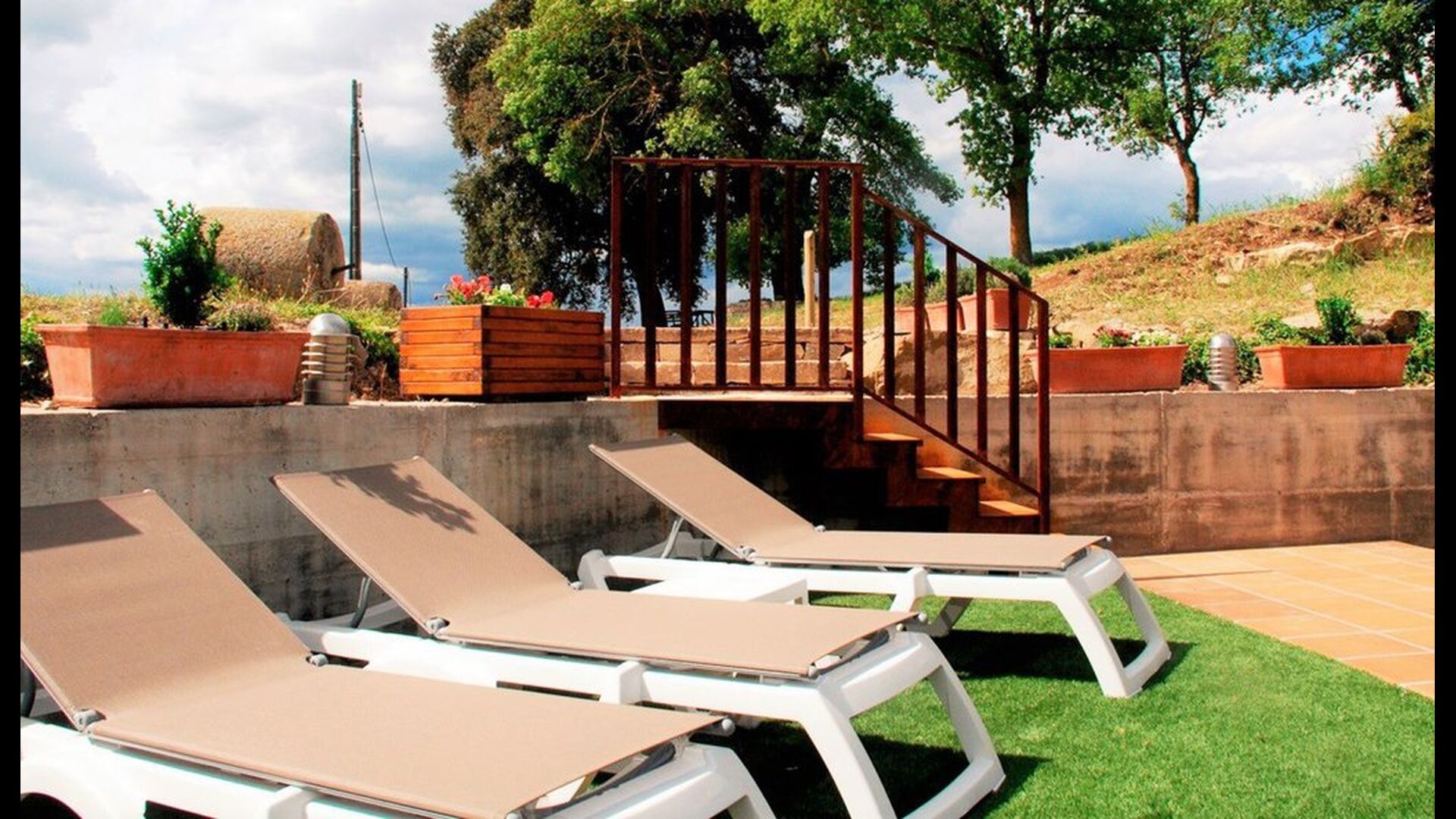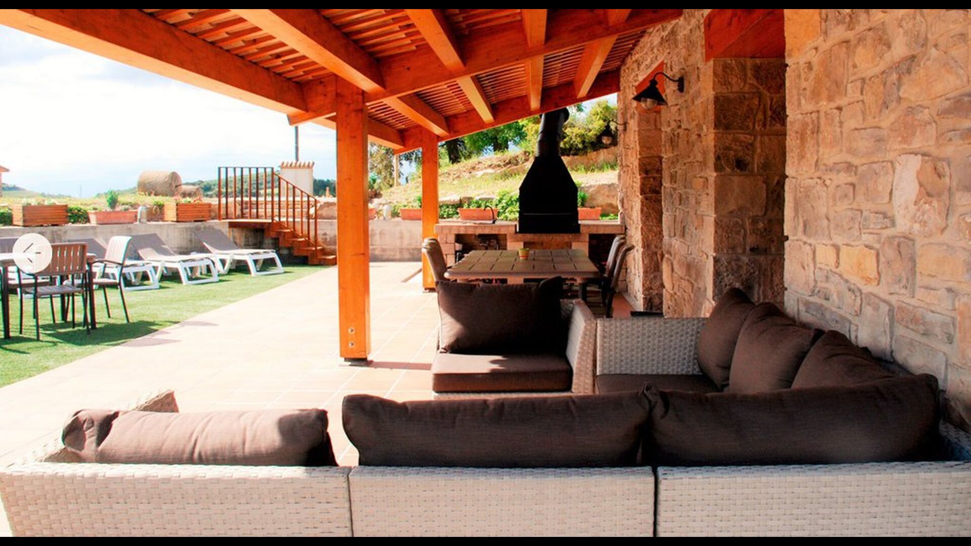 Det store udendørs areal har en særdeles høj grad af privatliv (ingen naboer) og den indhegnet swimmingpool er en behagelig faktor når og hvis man rejser med mindre børn. Afstanden til Metropolen Barcelona er 90 km. , hvilket kan være svært at tro når man er der, da roen og de omkringliggende bjerge (Pre-Pyranæerne), skaber en følelse af at befinde sig i det australske landskab.