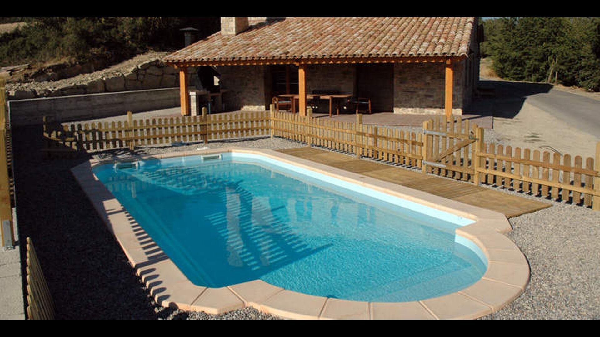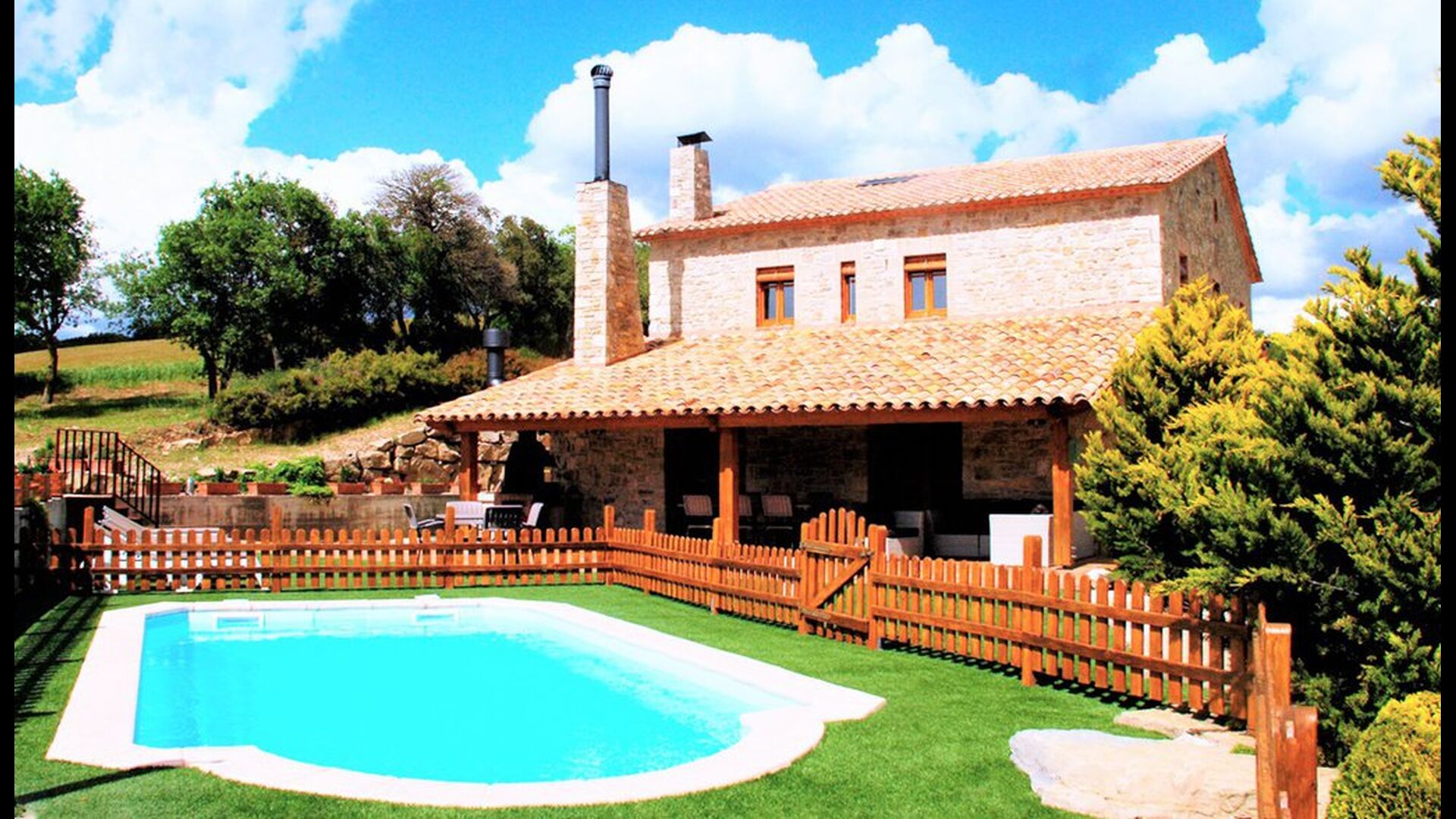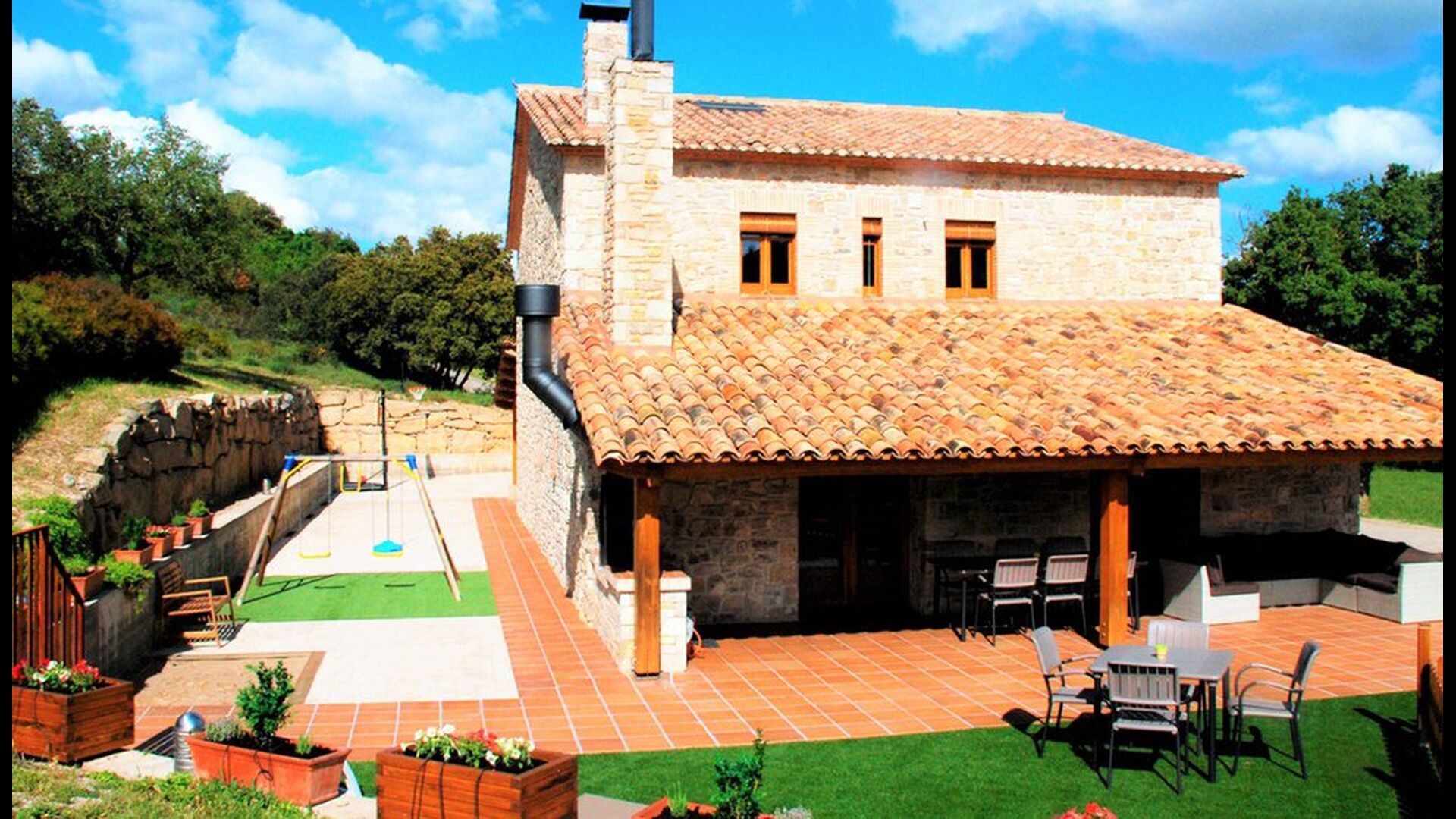 Det store udendørs areal har en særdeles høj grad af privatliv (ingen naboer) og den indhegnet swimmingpool er en behagelig faktor når og hvis man rejser med mindre børn. Afstanden til Metropolen Barcelona er 90 km. , hvilket kan være svært at tro når man er der, da roen og de omkringliggende bjerge (Pre-Pyranæerne), skaber en følelse af at befinde sig i det australske landskab.