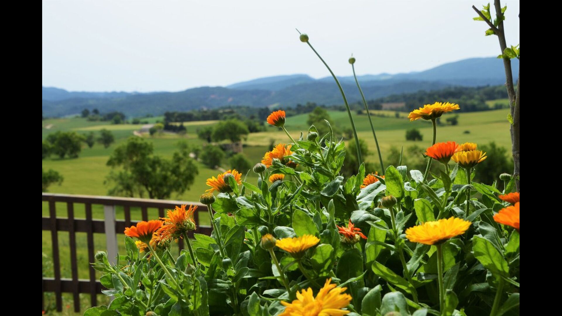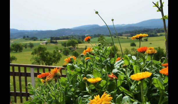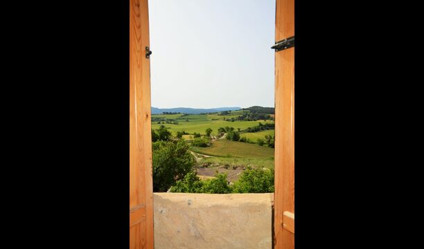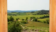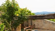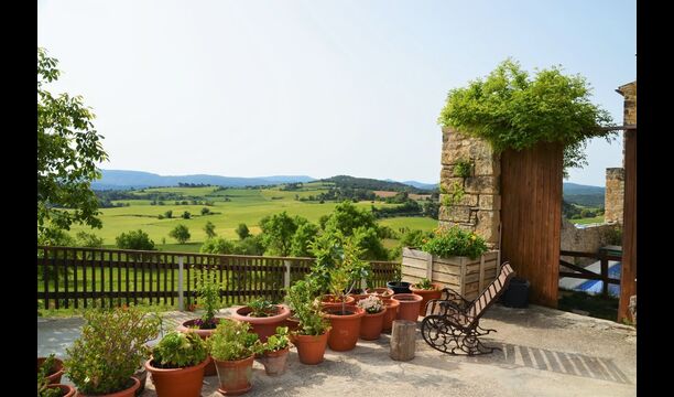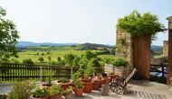 På en af de øvre etager er der ligeledes en åben terrasse med fantastisk udsigt ud over det omkringliggende landskab. Her er der også siddeområde og liggestole, så man kan nyde udsigten og solen fuldt ud.