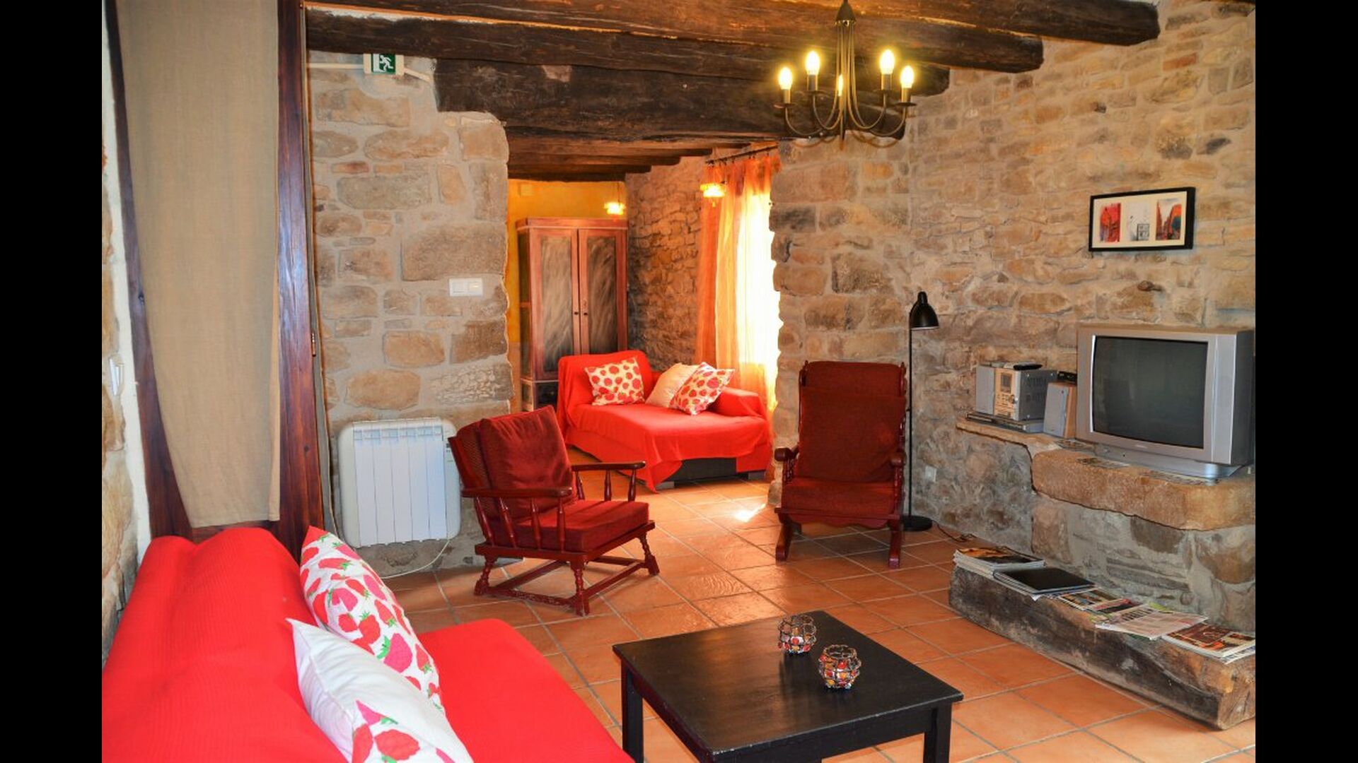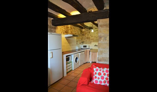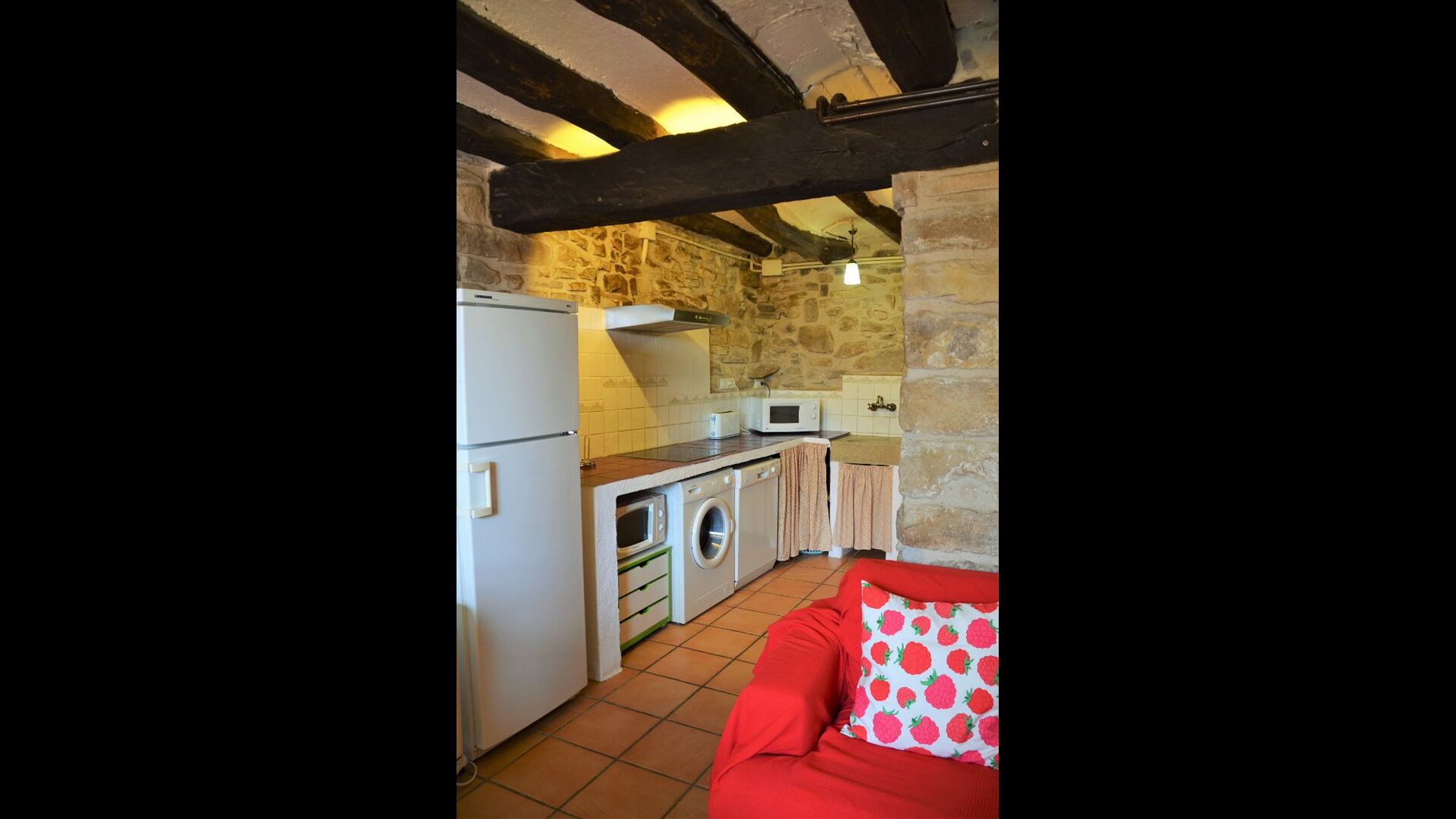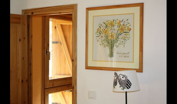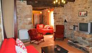 Centralt i ferieboligen er der er en stor, rummelig stue, hvor hele feriegruppen kan være sociale på samme tid. Her er der blandt andet et stort spisebord, sofaområde med TV og DVD og franske døre med udsigt til det smukke landskab. Derudover er der direkte adgang til en terrasse. Der er naturligvis et lille køkken med de nødvendige redskaber og faciliteter – inklusiv vaskemaskine.