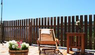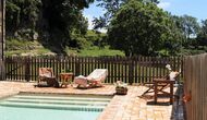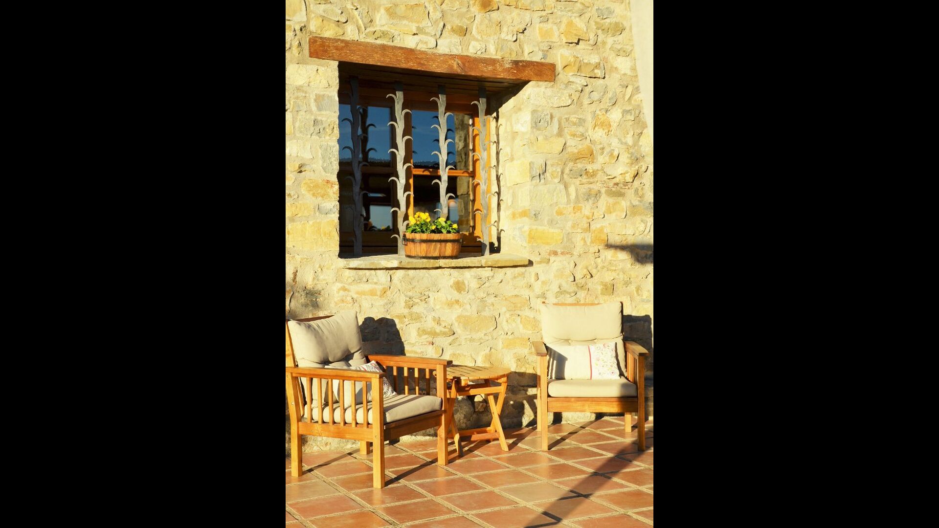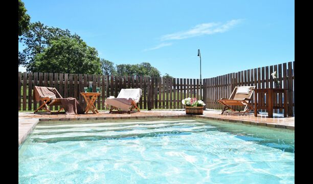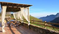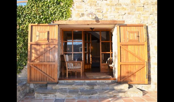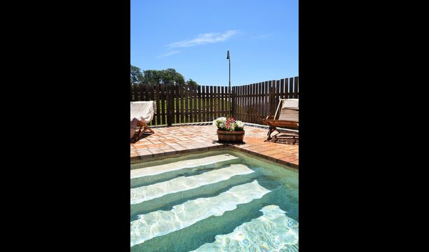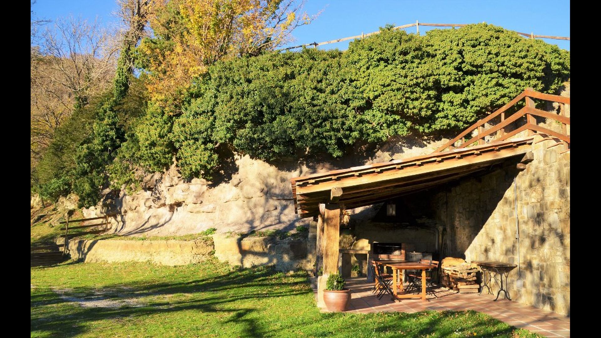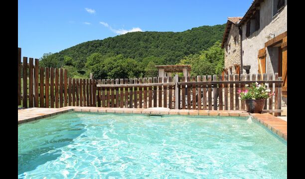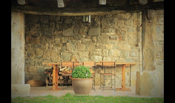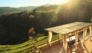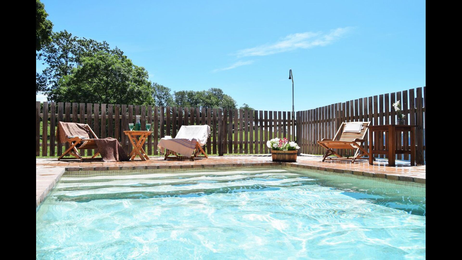 Feriehusets placering er som før nævnt helt unik. Man skal køre 20-25 minutter for at komme op til huset, hvilket betyder, at man bor helt alene i den flotte alpeagtige natur. De omkringliggende skråninger er beklædt med græs og træer, og da ferieboligen er placeret på toppen af en bakke, er der er en fantastisk udsigt ud over dalen. Denne udsigt kan nydes fra det store terrasseområde, hvor der er to overdækkede områder. Det ene er placeret med fantastisk udsigt over skråningen, mens den anden ligger inde i haven med spisebord og BBQ-grill. Der er også en swimmingpool, hvor der ligeledes er vidunderlig udsigt fra – denne kombinationen er ikke noget, alle feriehuse kan prale af! Swimmingpoolen er af sikkerhedsmæssige årsager indhegnet.