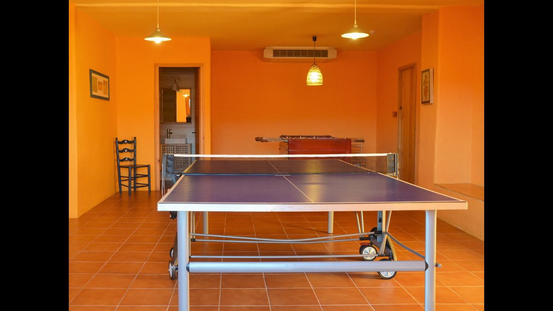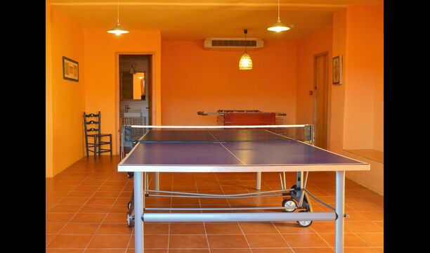Ferieboligen har en aktivitetssal med bordtennis, bordfodbold og spil.
