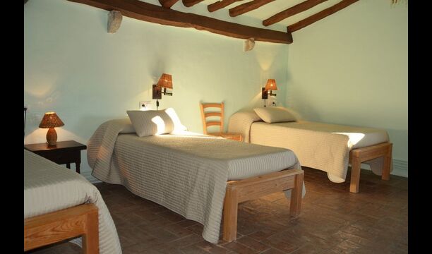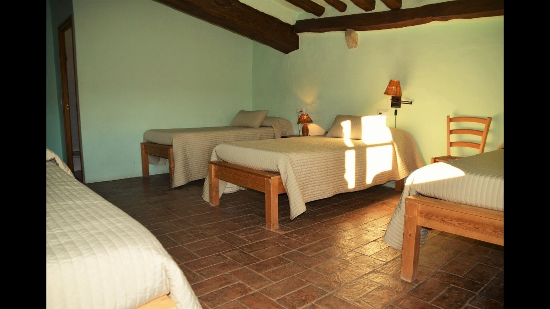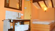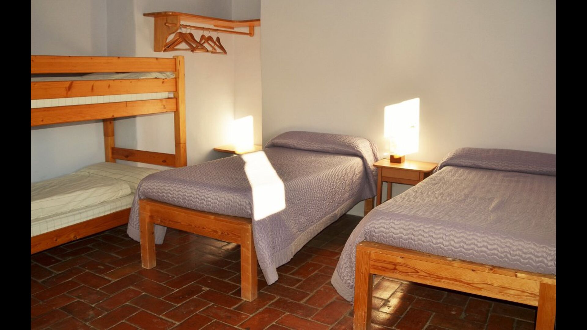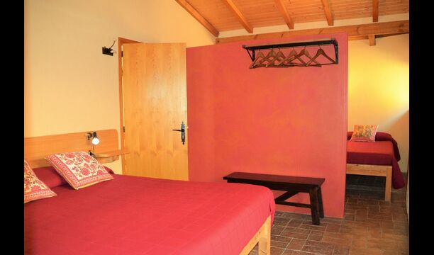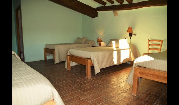 På første sal ligger soveværelserne. Her er der først og fremmest et soveværelse med to enkeltsenge (som kan rykkes sammen) og en køjeseng. Dernæst ligger der et værelse med fire enkeltsenge, som er perfekt til børnene i feriegruppen, og endelig et dobbeltværelse med en suite badeværelse og direkte udgang til en terrasse (med mulighed for ekstra senge). Der resterende to dobbeltværelser ligger i forlængelse af hinanden i et lille separat hus ude i haven. Her er der selvfølgelig badeværelse med brusebad.