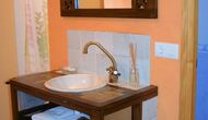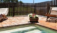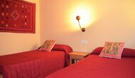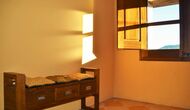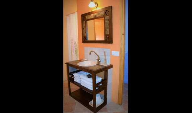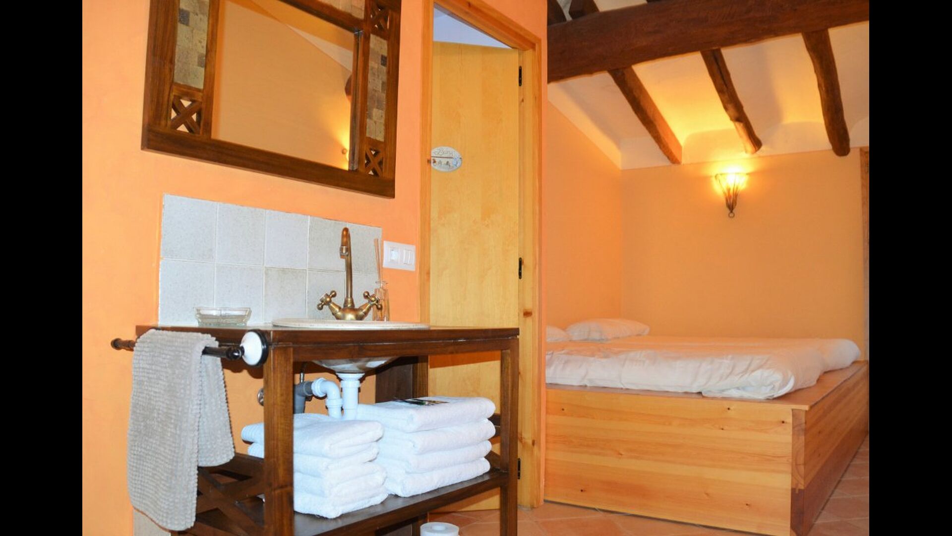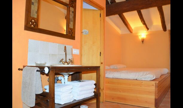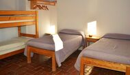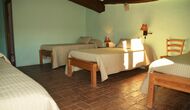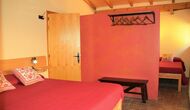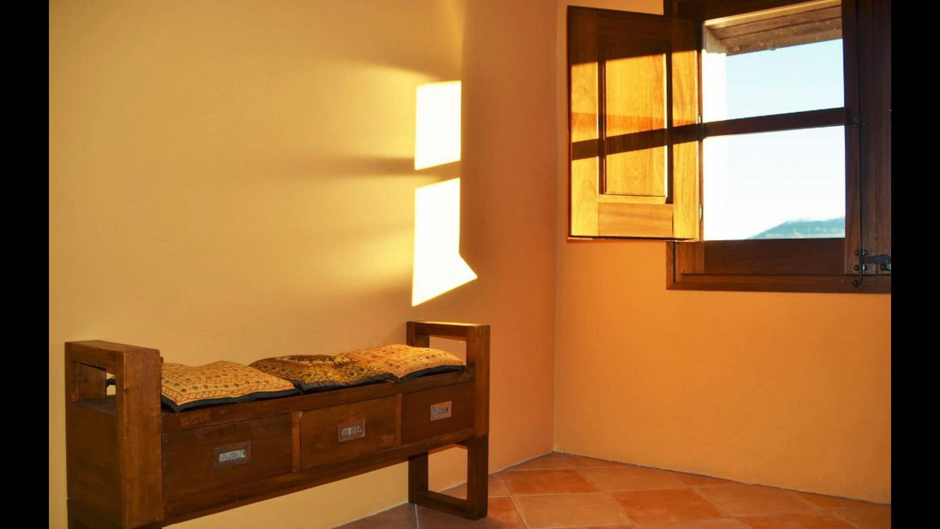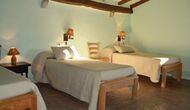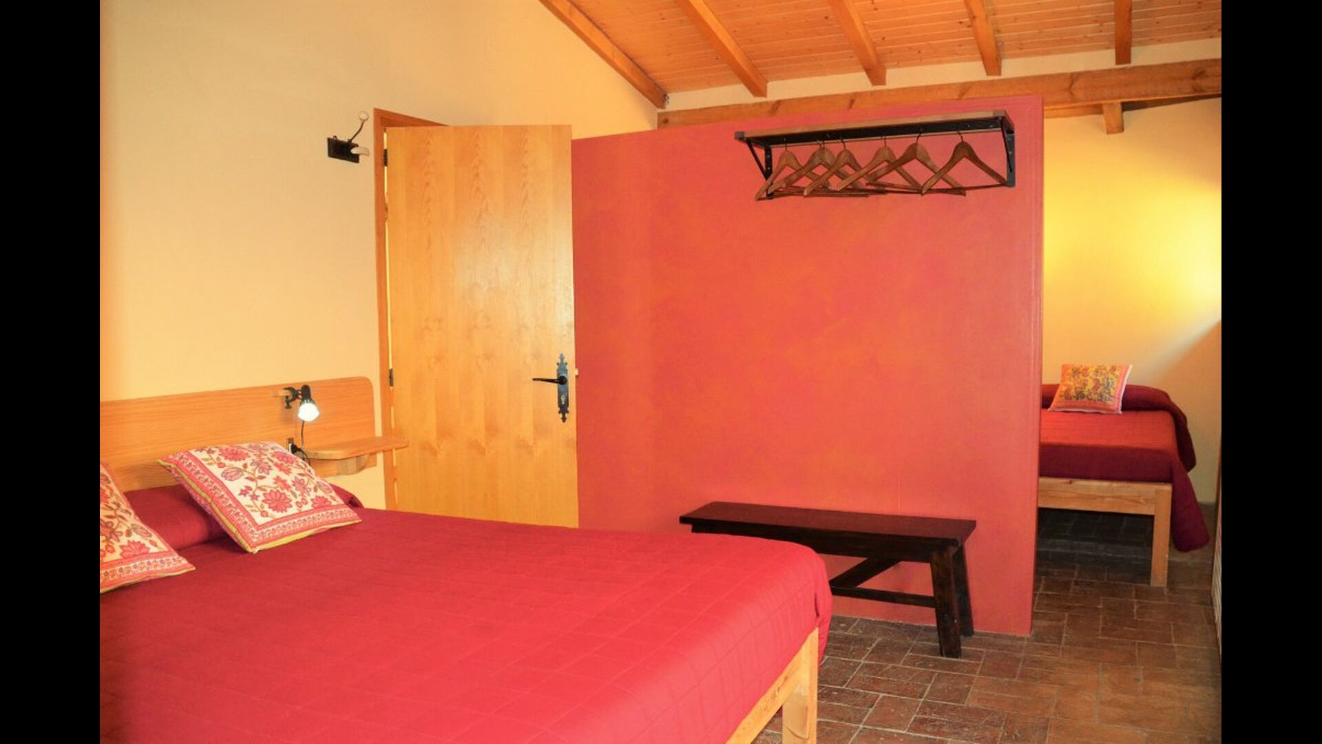 På første sal ligger soveværelserne. Her er der først og fremmest et soveværelse med to enkeltsenge (som kan rykkes sammen) og en køjeseng. Dernæst ligger der et værelse med fire enkeltsenge, som er perfekt til børnene i feriegruppen, og endelig et dobbeltværelse med en suite badeværelse og direkte udgang til en terrasse (med mulighed for ekstra senge). Der resterende to dobbeltværelser ligger i forlængelse af hinanden i et lille separat hus ude i haven. Her er der selvfølgelig badeværelse med brusebad.