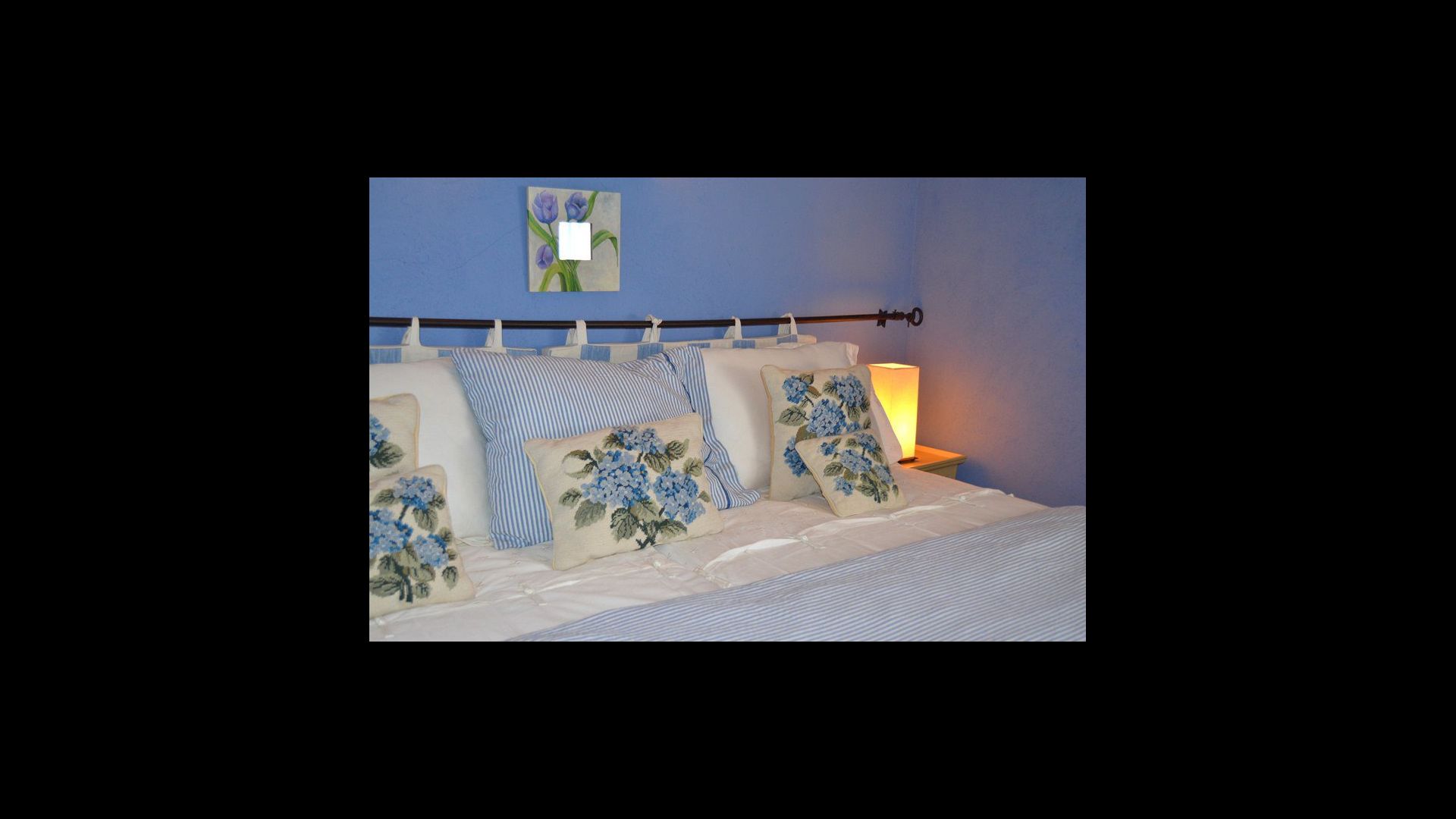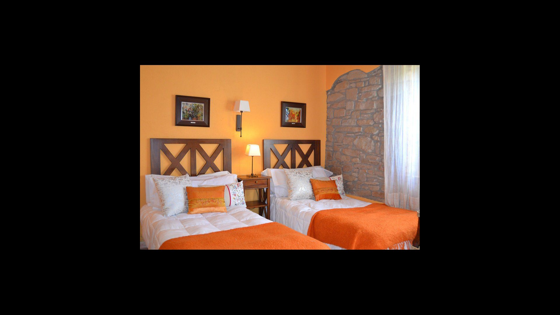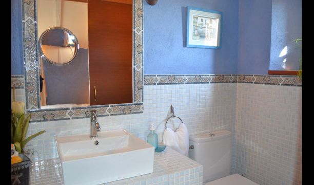 Selve ferieboligen er nænsomt indrettet og husets fem soveværelser er alle indrettet med ekstraordinære materialer og der er virkelig kræset om hyggen i værelserne. Samtlige 5 soveværelser har TV på værelset og der er desuden fem badeværelser i huset. Ét af soveværelserne er en meget hyggelig suite med en mindre tilhørende stue. Hvert værelse er desuden dekoreret i hver der farve, hvilket gør alle værelserne meget personlige og hvert rum har dets helt egen charme.