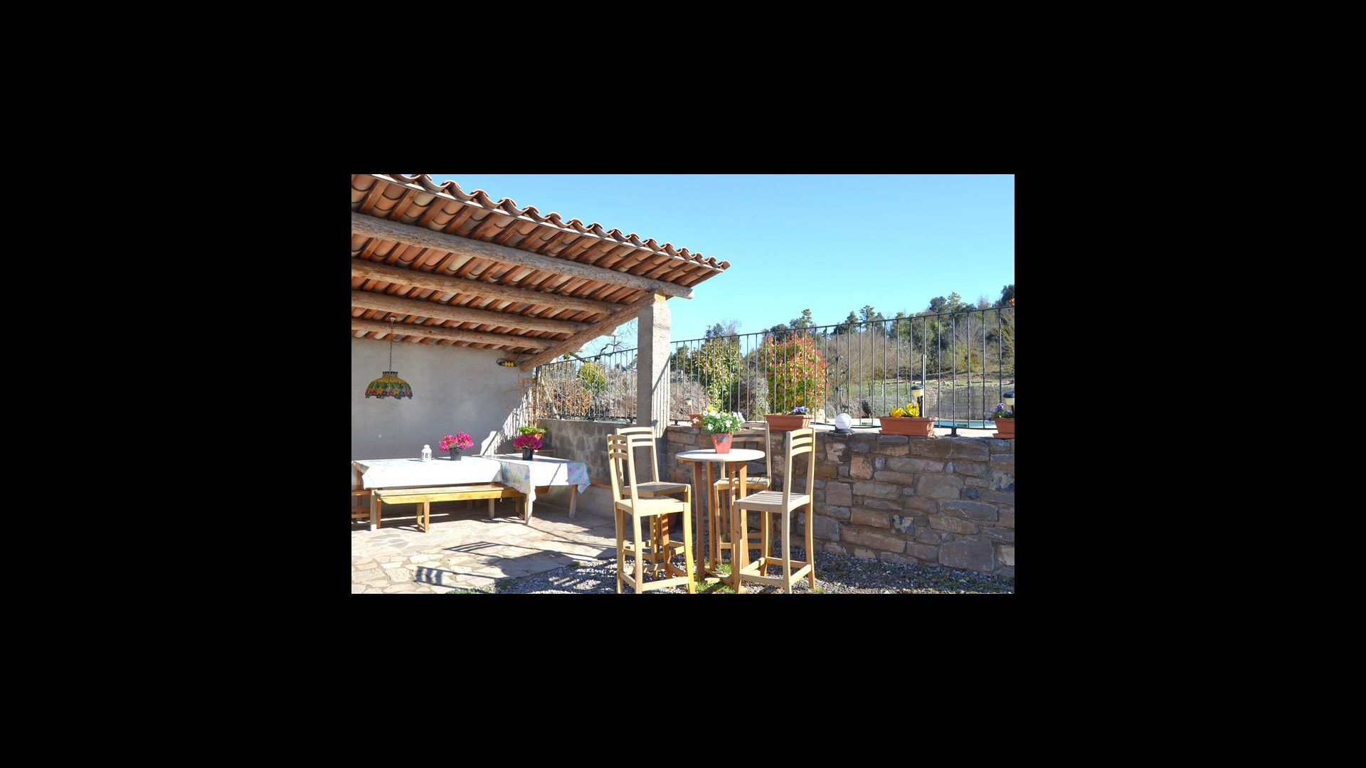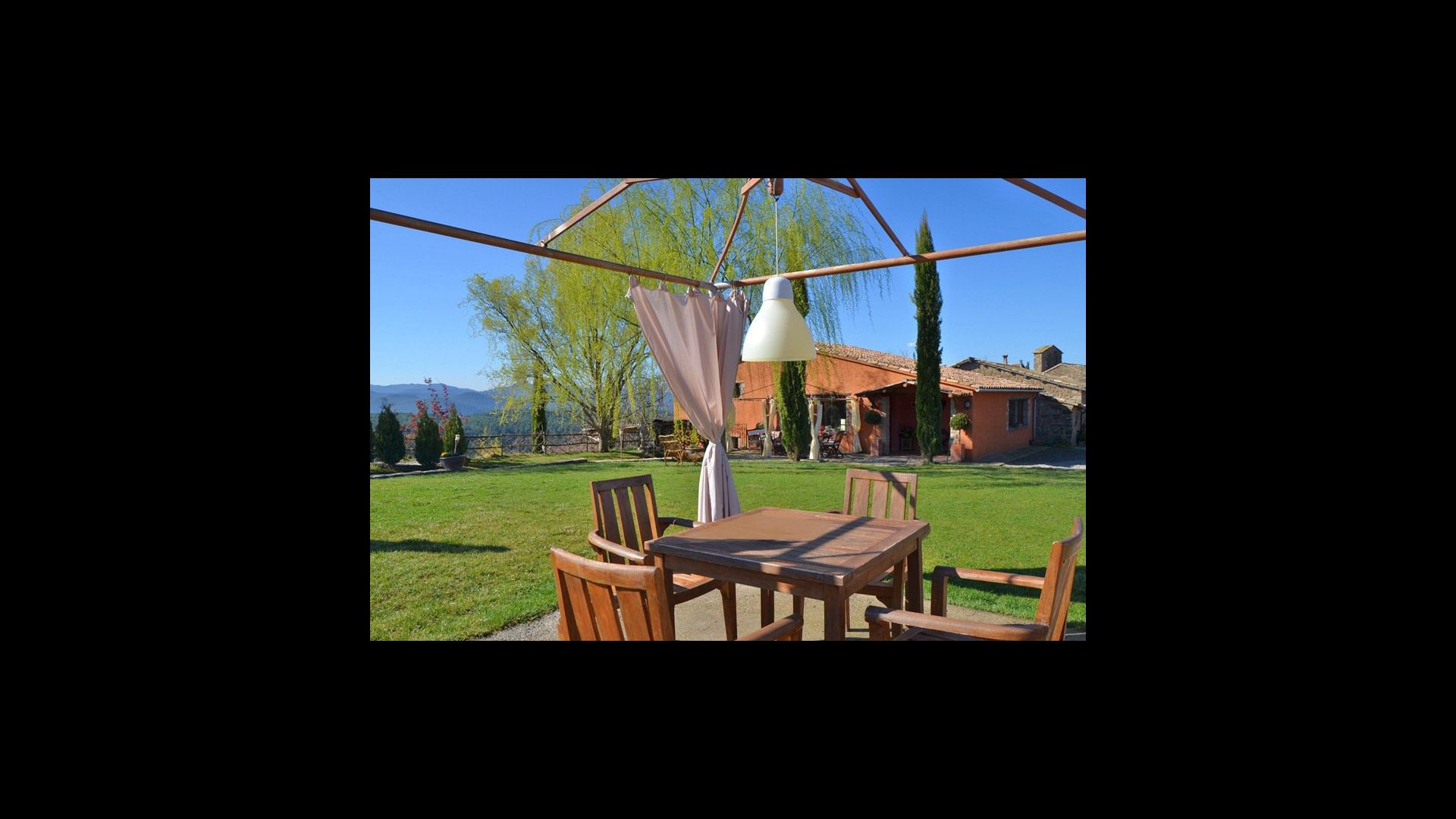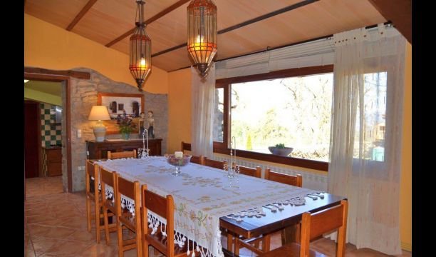 Can Salvatore – Vermela er et 250m2 stort feriehus, der er beliggende i smukke omgivelser på toppen af en bakketop. På grunden ligger to feriehuse, der hver har egen privat have, swimmingpool, terrasser og BBQ område. Det eneste de to feriehuse deler, er en legeplads, hvor der også er bordtennis. Huset beliggenhed er nærmest perfekt. Det ligger 4.km. fra landsbyen Olost, 15 km. til den smukke by Vic, der har et fabelagtigt marked tirsdag og lørdag og der er bare 75 km. til Barcelona og 100km. til Costa Brava.