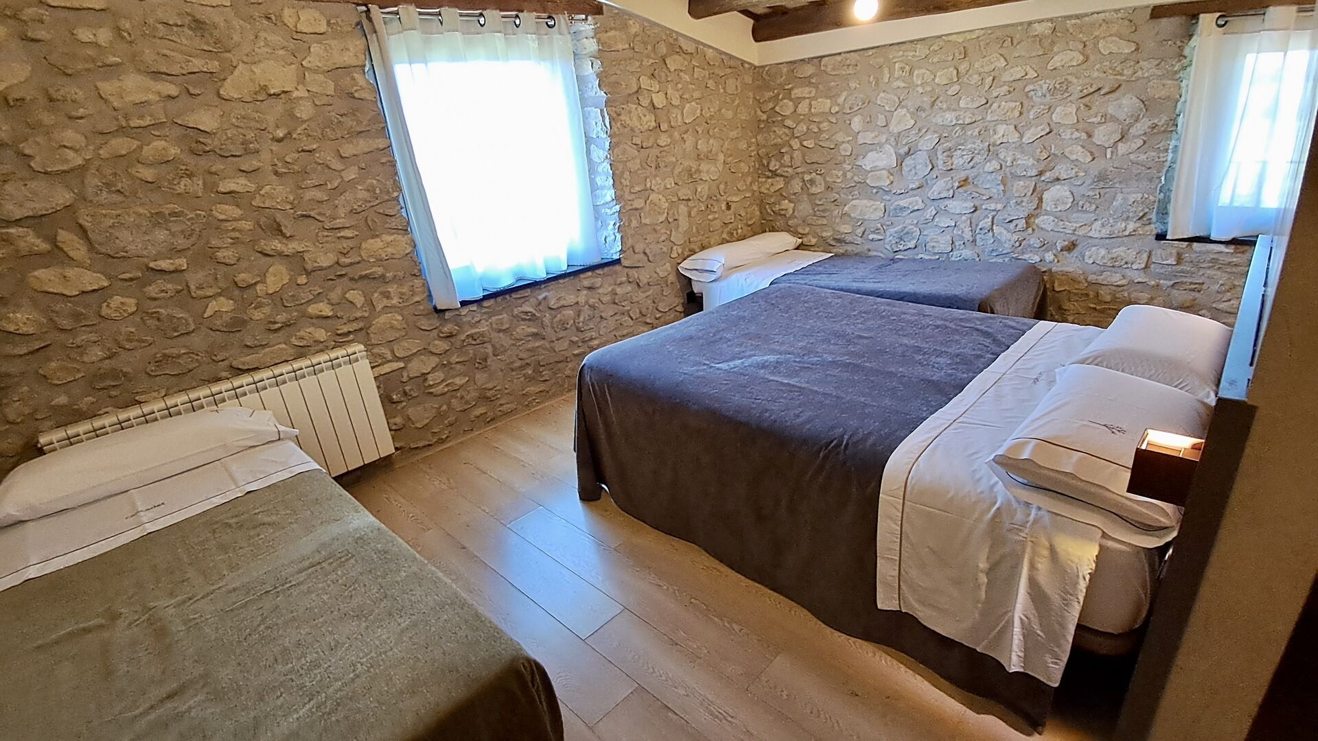 På husets første etage ligger 5 af husets 9 lækre soveværelser. Samtlige værelser har privat en suite badeværelse og på denne etage har ét af badeværelserne desuden badekar. På etagen er endvidere endnu en lækker stue med plasma TV, samt et super moderne rum med vaskemaskiner, tørretumbler, højskabe og strygegrej. På husets sidste og øverste etage ligger endnu 4 værelser samt husets indbydende spaområde med jacuzzi og liggestole. De 9 soveværelser er fordelt så der er 4 dobbeltværelser (alle med dobbeltseng), 3 triple værelser og 2 ekstra store værelser med 4 senge, der er oplagt som familierum eller som værelse til gruppens børn eller teenagers.