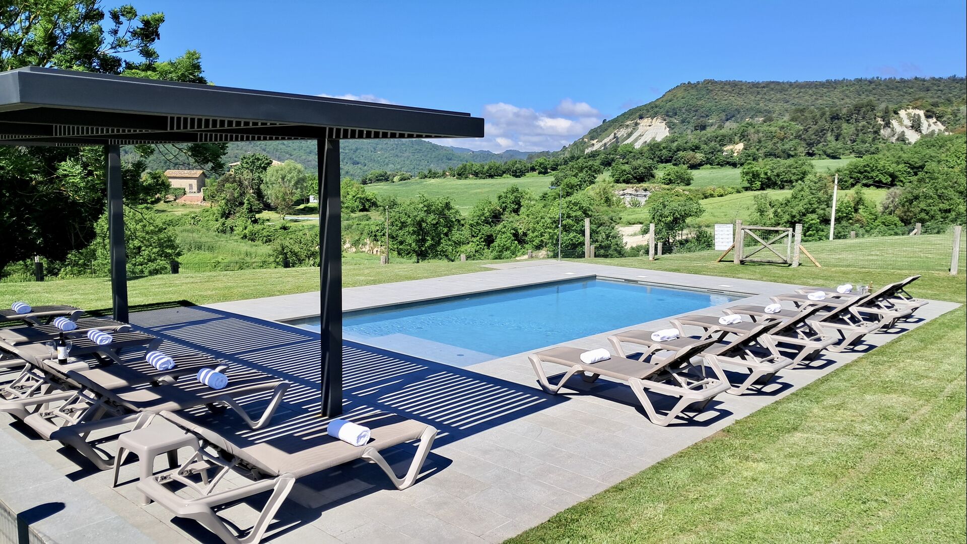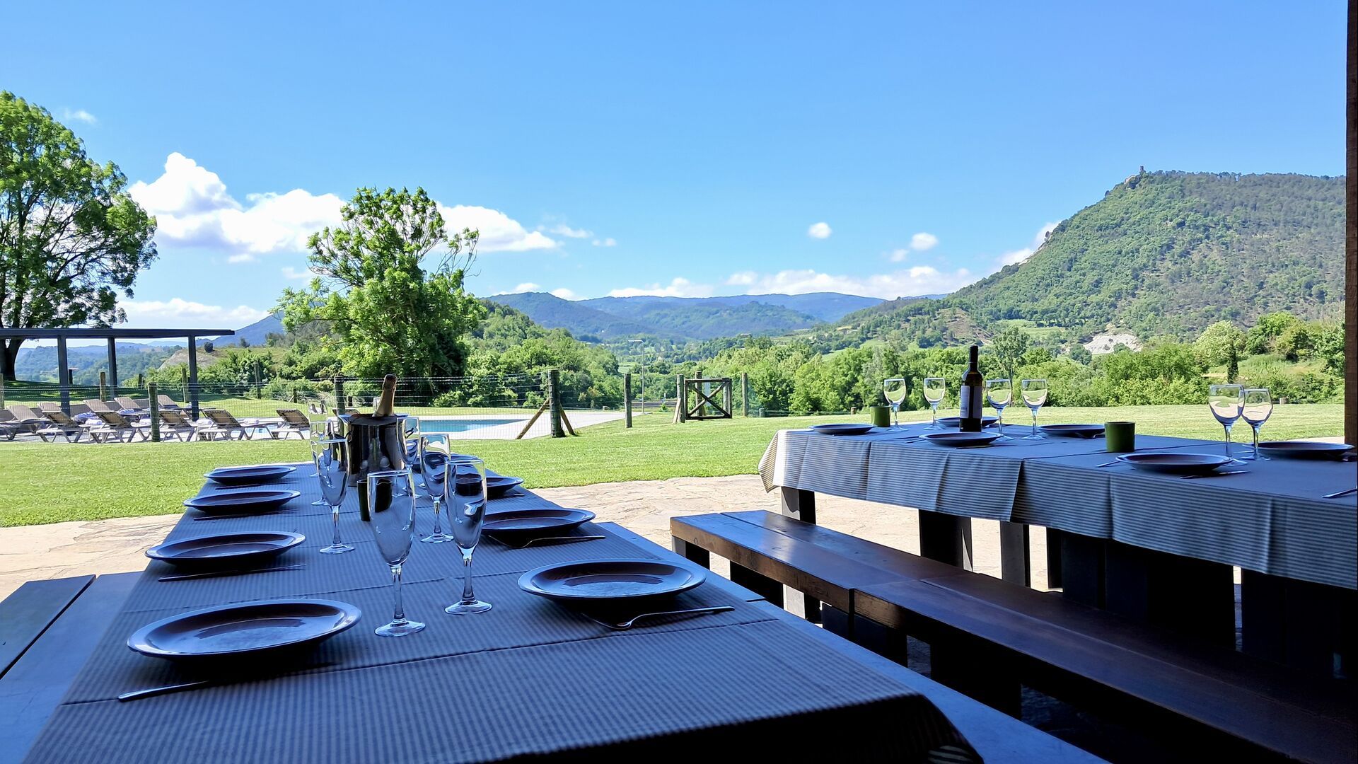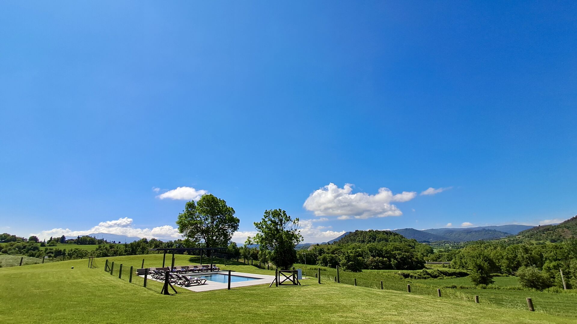 Den 2000 m2 store have har en fabelagtig udsigt og der er desuden privat swimmingpool med liggestole og en overdækket terrasse med BBQ, håndvask og vand, hvor I rigtig kan nyde de lange varme aftner. På bagsiden af huset er der anlagt parkeringsområde og der er beplantet så I kan plukke friske krydderurter.