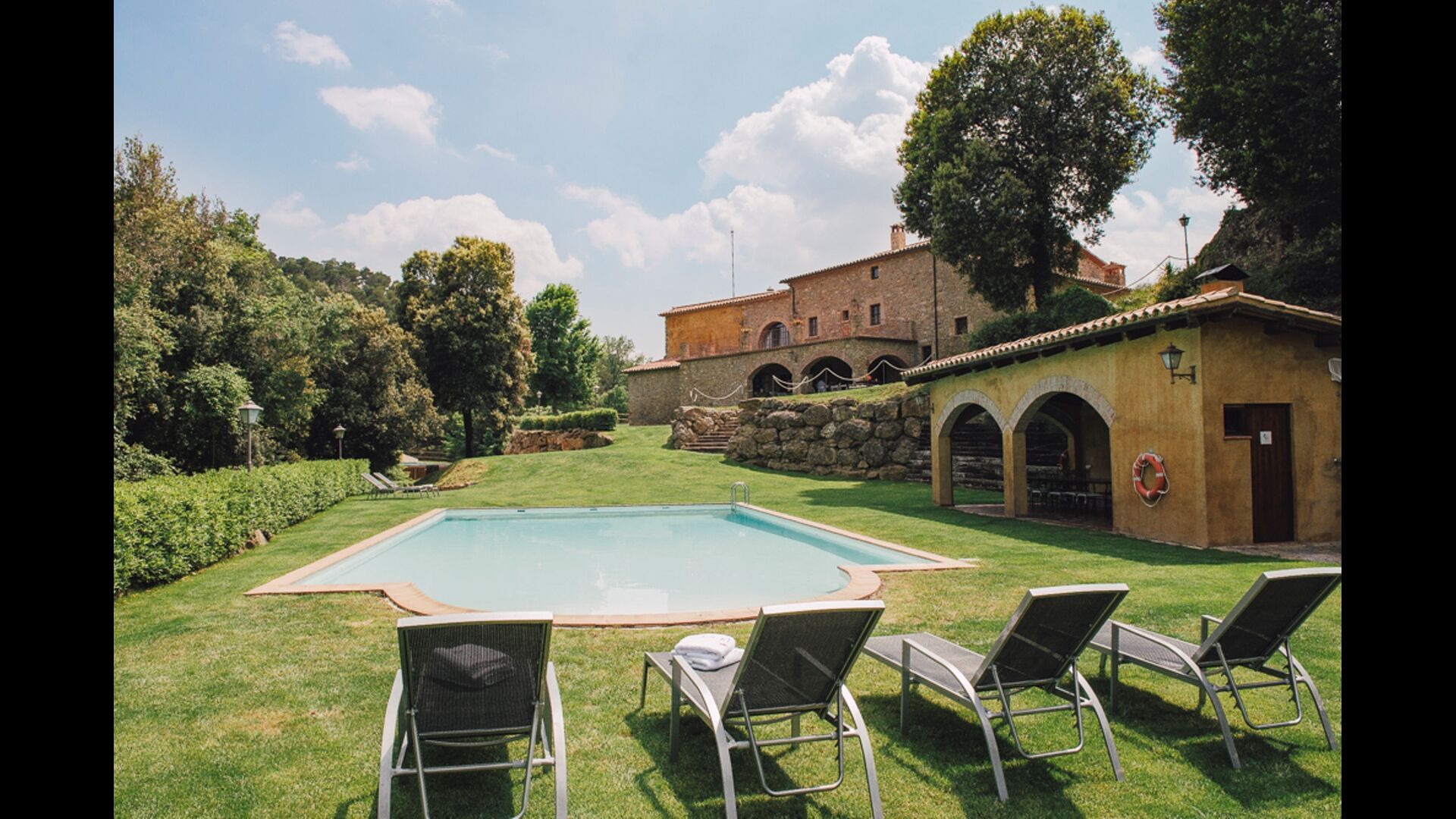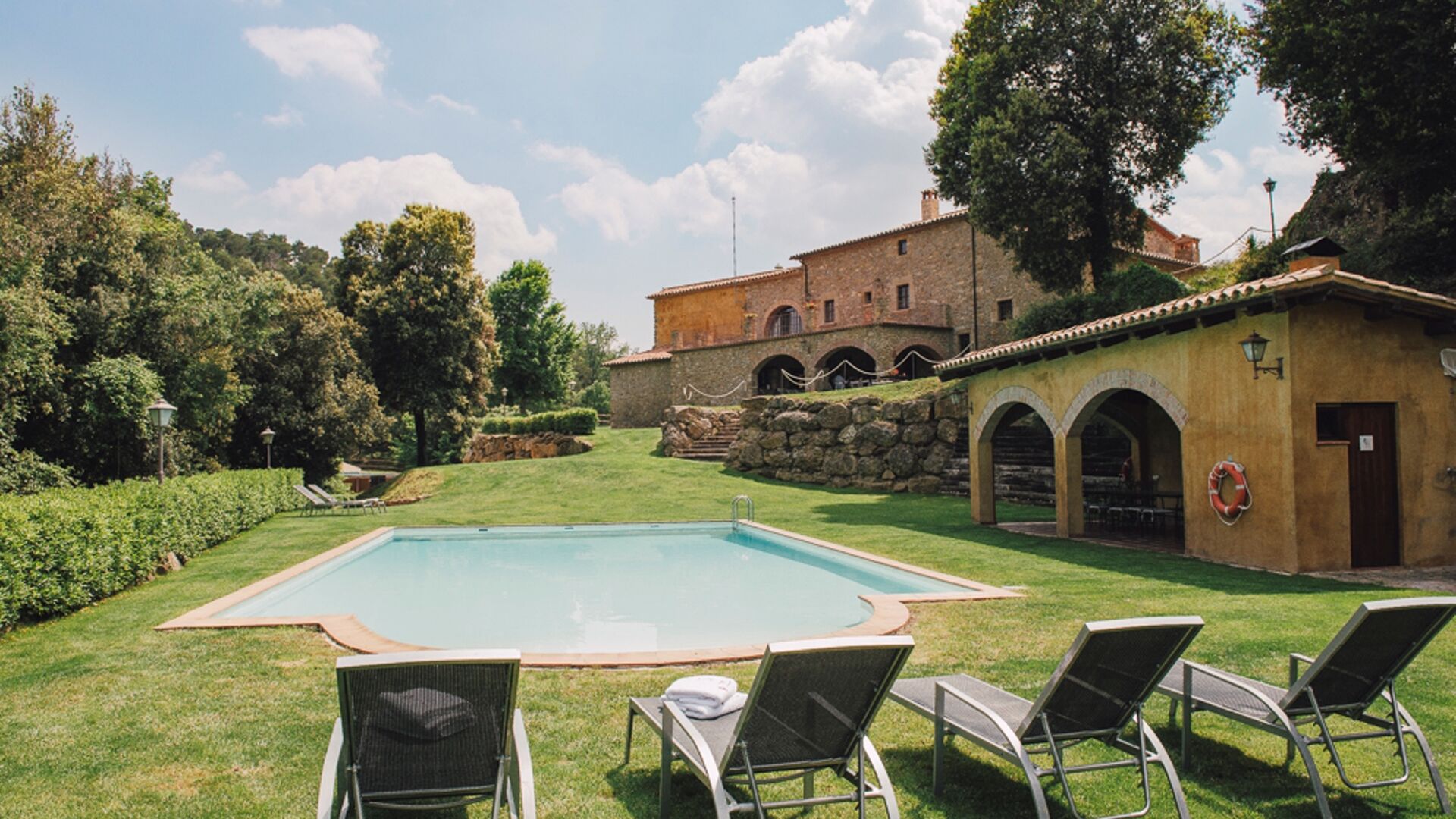 Casa El Mond er 700m2 super luksus beliggende i det bakkede landskab mellem Barcelona og Vic. Det er et landsted, som nu er ombygget med sans for hver en detalje.