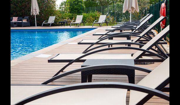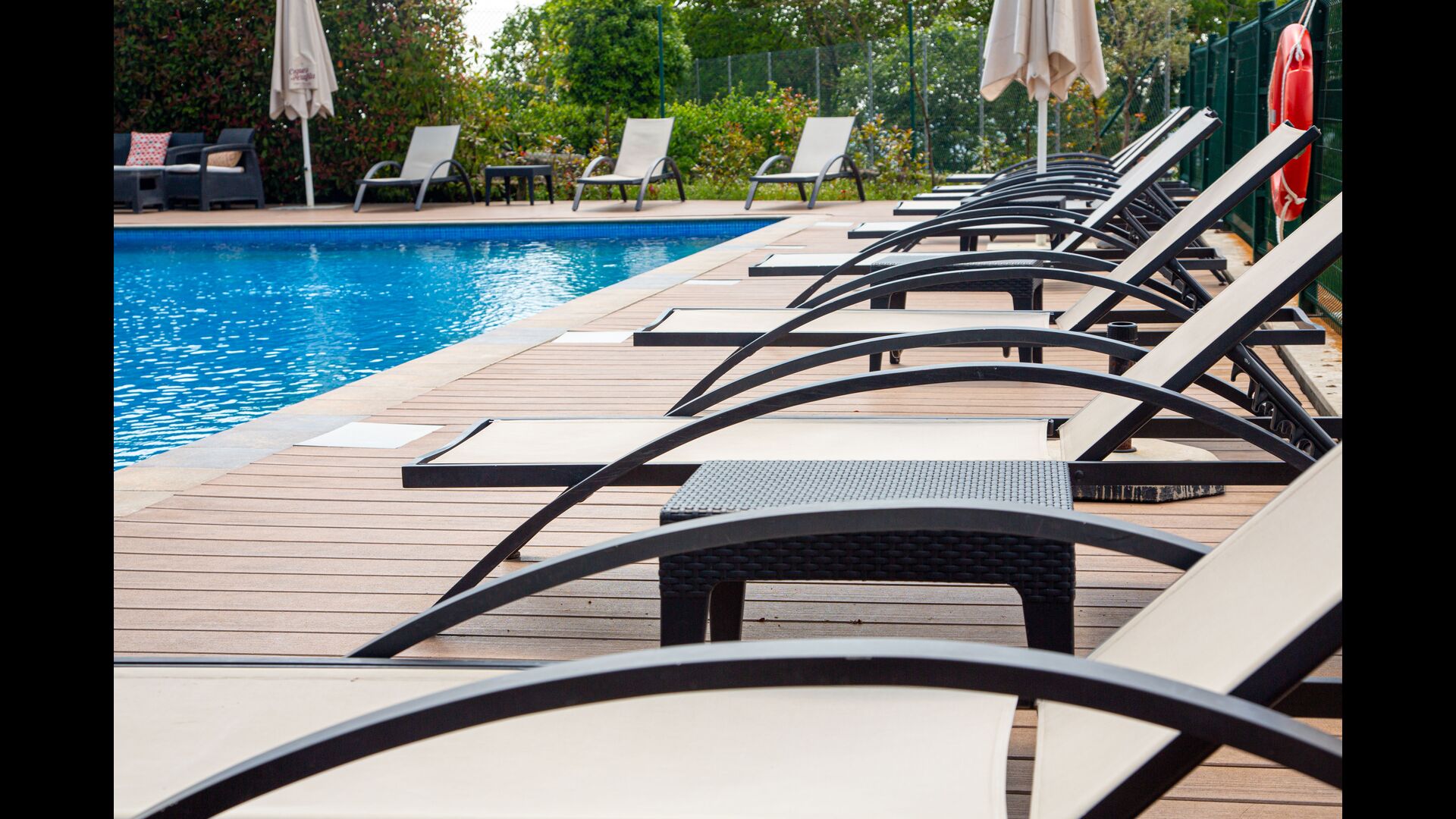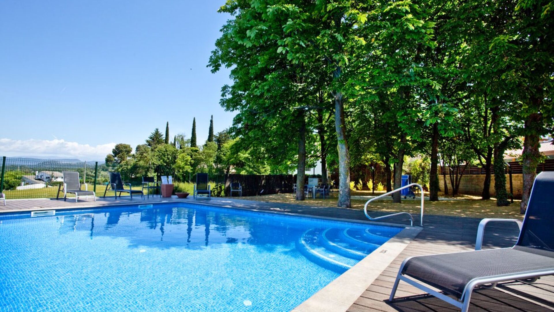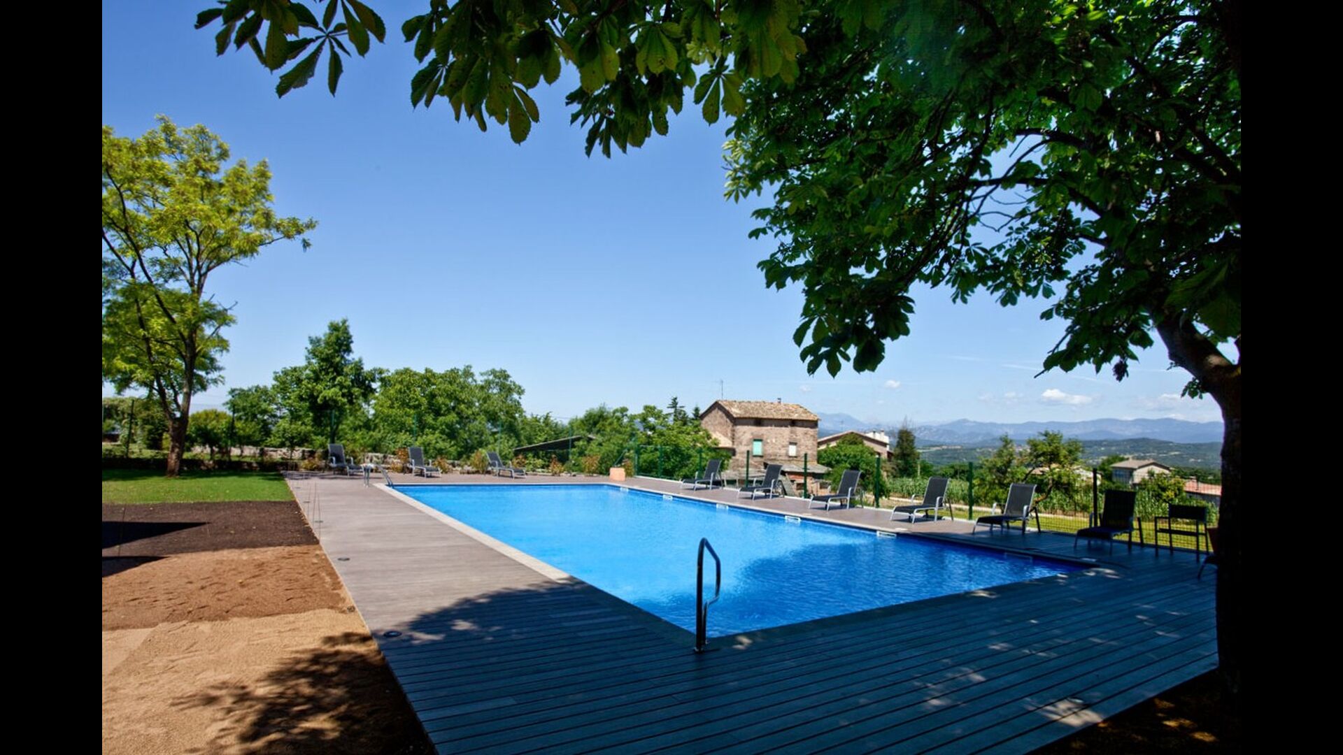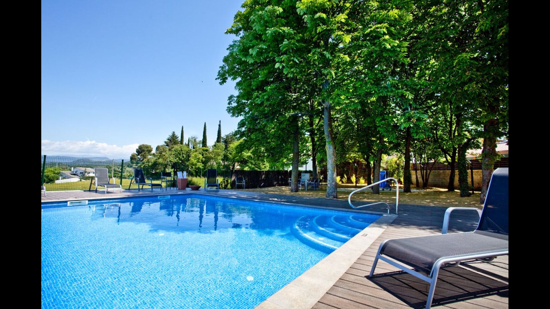 Derudover blev husets bagside forvandlet til det fantastiske swimmingpoolområde med den store swimmingpool (17 x 5 meter), café borde,toiletter og omklædningsrum og skyggefulde hjørner og solrige steder. Udsigten er fantastisk, direkte til Pyrenæerne.