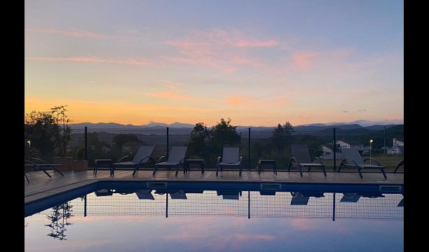 Derudover blev husets bagside forvandlet til det fantastiske swimmingpoolområde med den store swimmingpool (17 x 5 meter), café borde,toiletter og omklædningsrum og skyggefulde hjørner og solrige steder. Udsigten er fantastisk, direkte til Pyrenæerne.