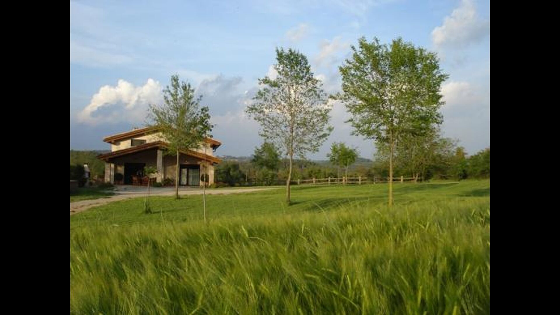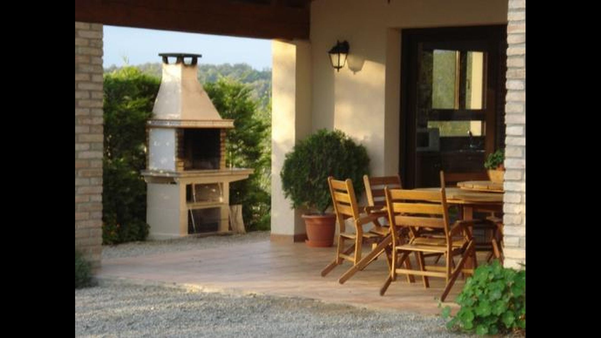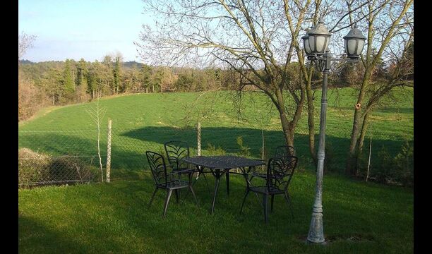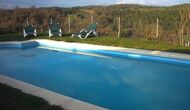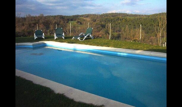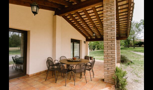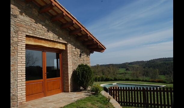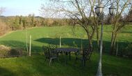 Nedenfor huset er der en indhegnet have med swimmingpool og udsigt ned over markerne og med Pyrenæerne i horisonten. Huset ligger omgivet af naturen og med lang distance til nærmeste nabo. Have og pool-område deles som udgangspunkt med den anden feriebolig.