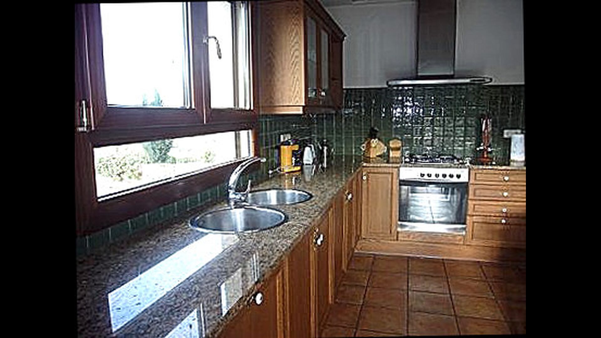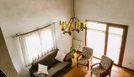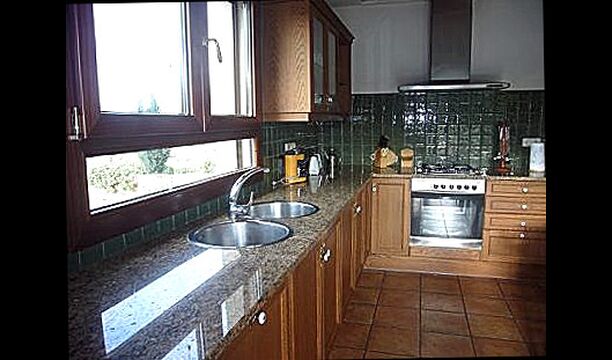Huset er skræddersyet til grupper på 8-10 personer (eller hvis I er flere, kan det andet hus lejes som supplement), med fem dobbeltværelser og to badeværelser fordelt på 1. sal og stueetagen. I stueetagen er der desuden sofahjørne med tv, spisebord samt køkken med adgang til stuen samt direkte udgang til den dejlige, solrige terrasse med stole og spisebord af mørkt træ.