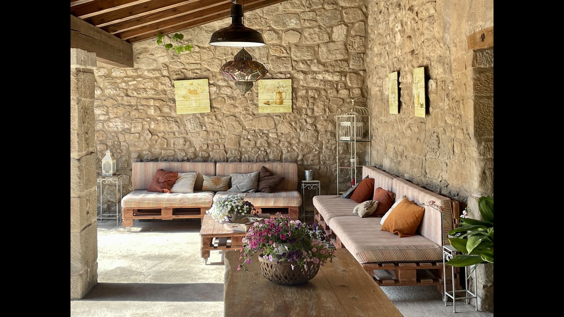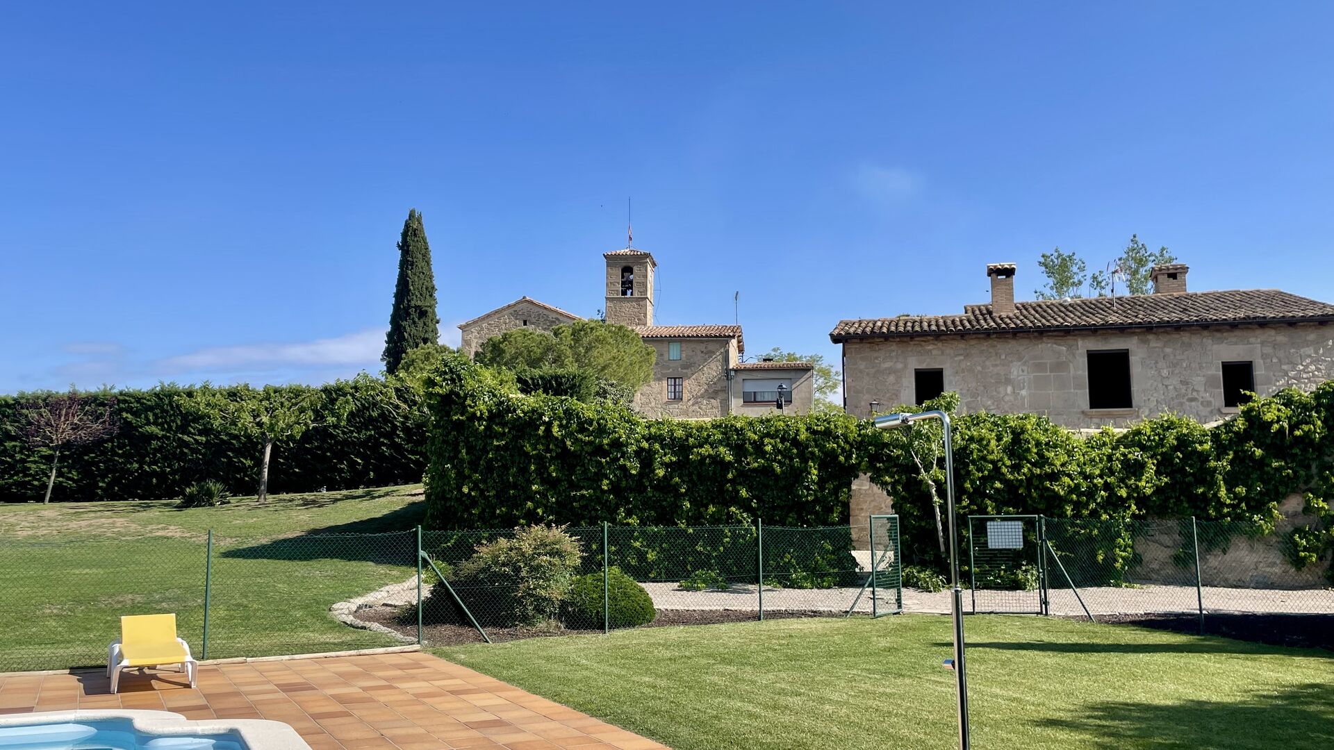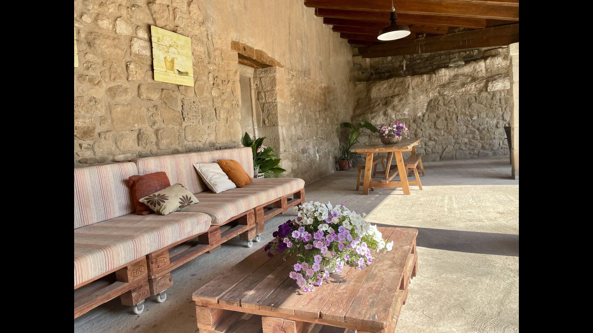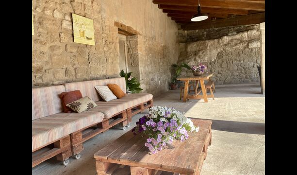 Med de blomstrende marker og Pyrenæerne i det fjerne som eneste nabo, føler du dig så afslappet, og stadig, kun 750 meter væk, i den anden ende af den lille landsby, finder du en livlig catalansk restaurant i landlig stil, hvor landmænd, arbejdere og forbipasserende mennesker nyder en billig frokostmenu med et udvalg af typiske catalanske retter, som ikke efterlader nogen sultne.