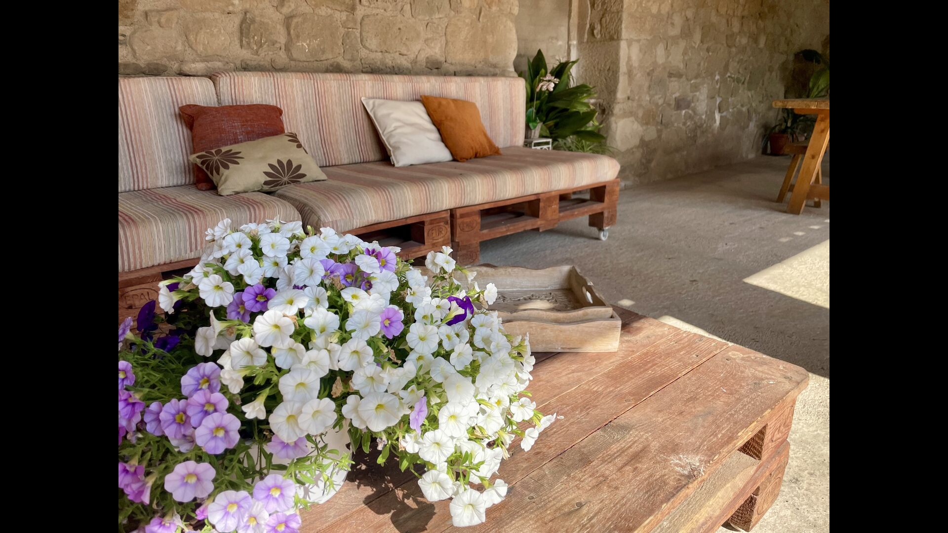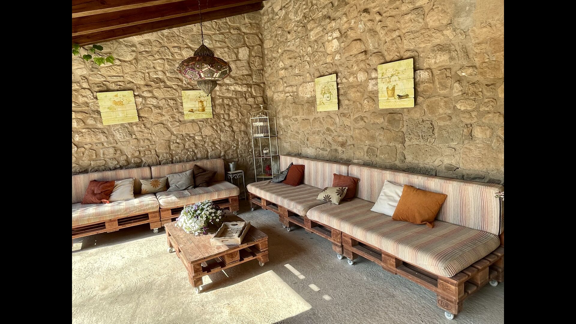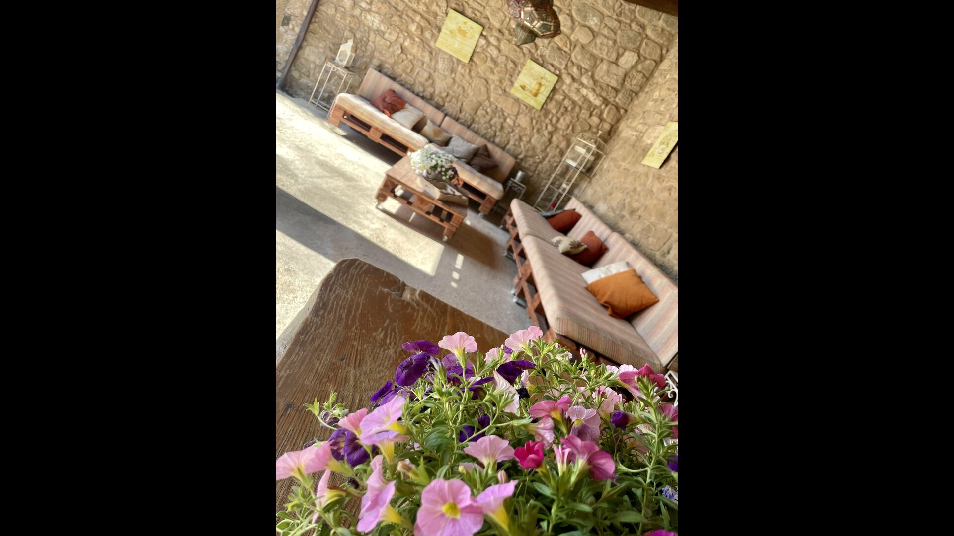 Med de blomstrende marker og Pyrenæerne i det fjerne som eneste nabo, føler du dig så afslappet, og stadig, kun 750 meter væk, i den anden ende af den lille landsby, finder du en livlig catalansk restaurant i landlig stil, hvor landmænd, arbejdere og forbipasserende mennesker nyder en billig frokostmenu med et udvalg af typiske catalanske retter, som ikke efterlader nogen sultne.