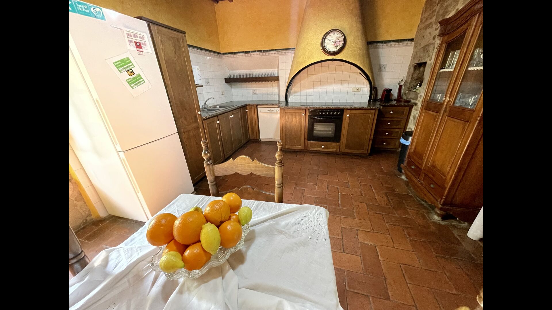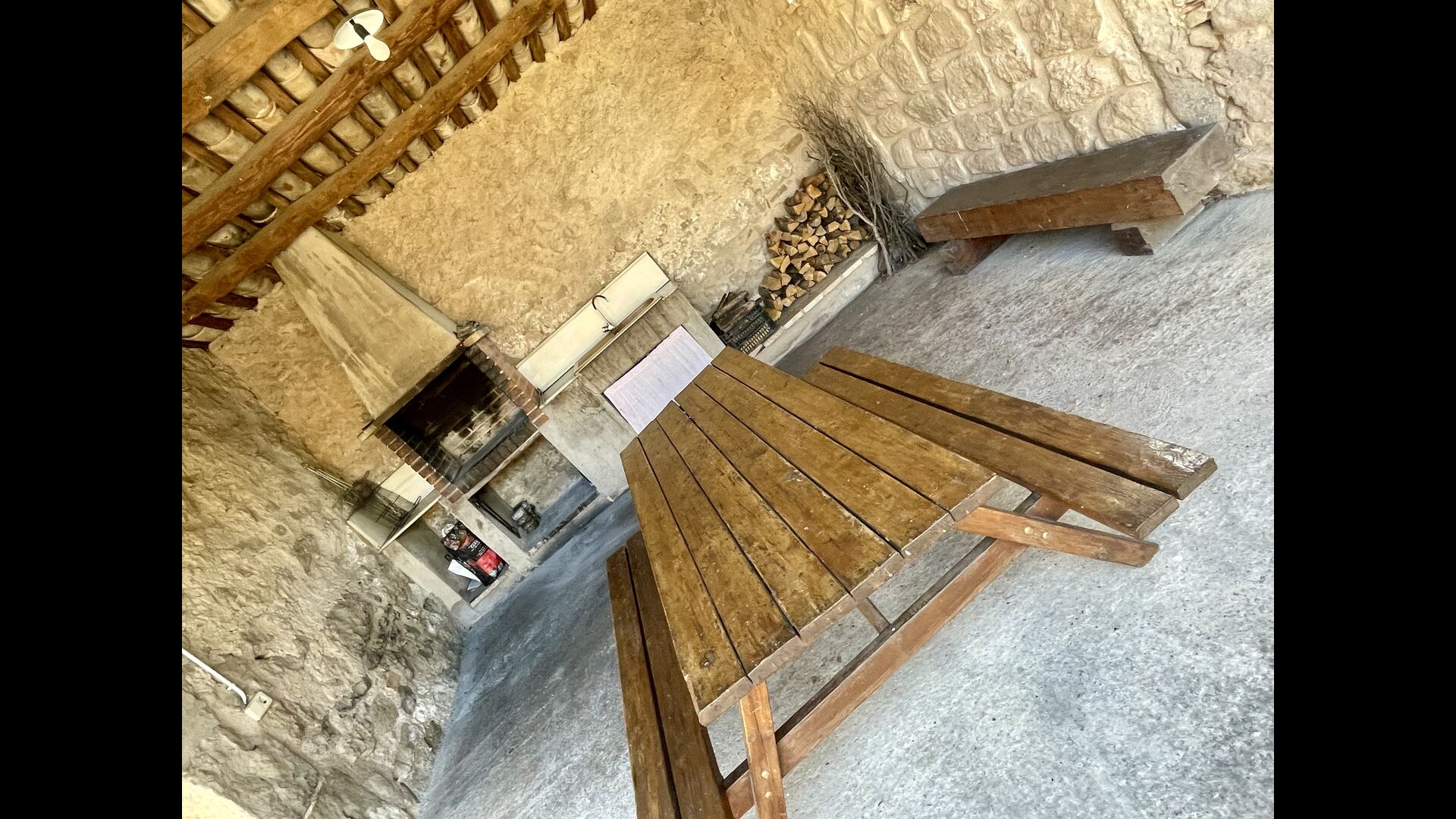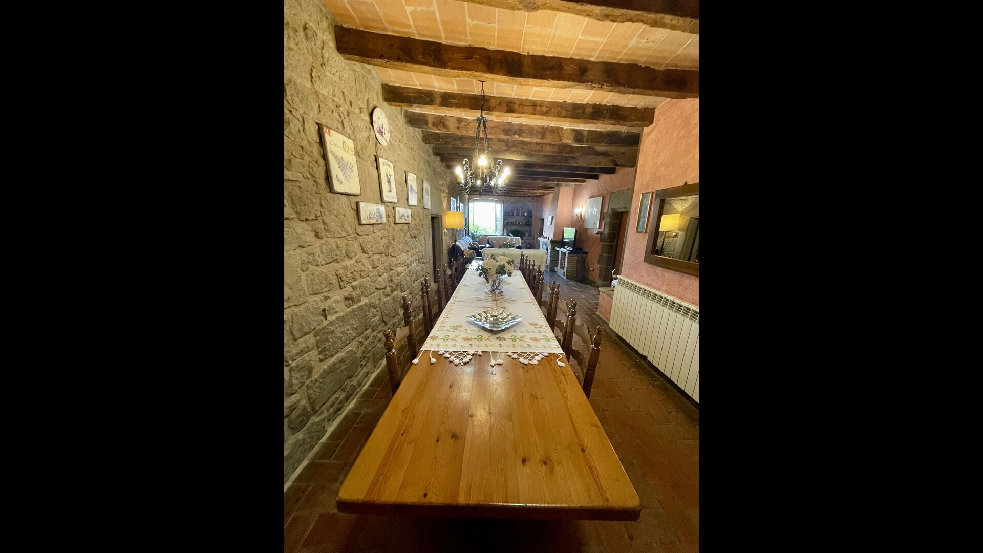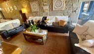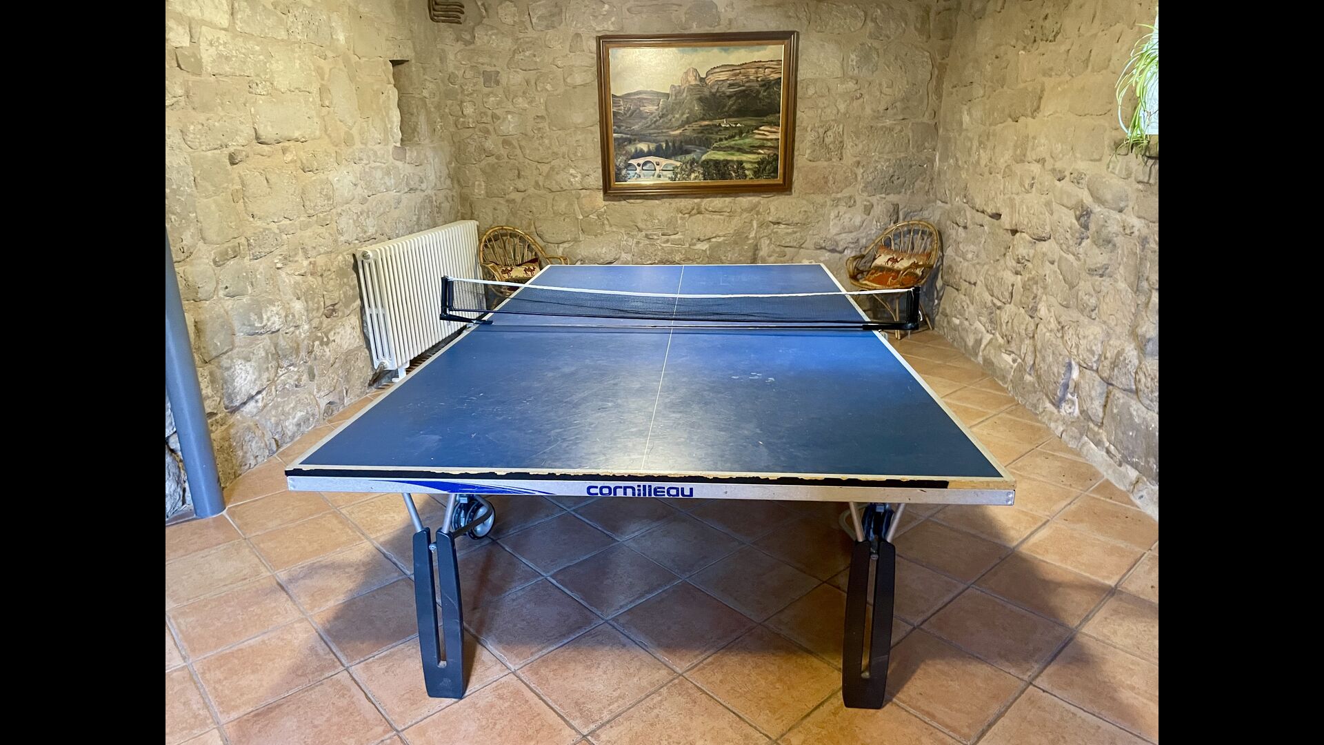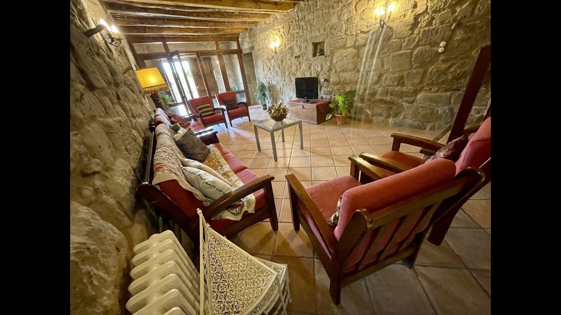I dag er huset blevet fuldstændigt restaureret med bevarelse af sin oprindelige struktur. Bygget på en glidende sten, vil indgangen fra parkeringspladsen faktisk bringe dig direkte ind på første sal. Her er der et køkken med alle redskaber (komfur, mikroovn, opvaskemaskine, køkkenredskaber osv.), en meget stor stue/spisestue med et enormt spisebord i træ og fungerer også som fordelingsrum for alle. soveværelserne. Huset har i alt 6 soveværelser, hvoraf 2 er med tre senge. Hvert af soveværelserne har deres eget badeværelse. Derudover er der et toilet nedenunder, nyttigt når man opholder sig udenfor. Huset har også tv, dvd og WIFI-internet.