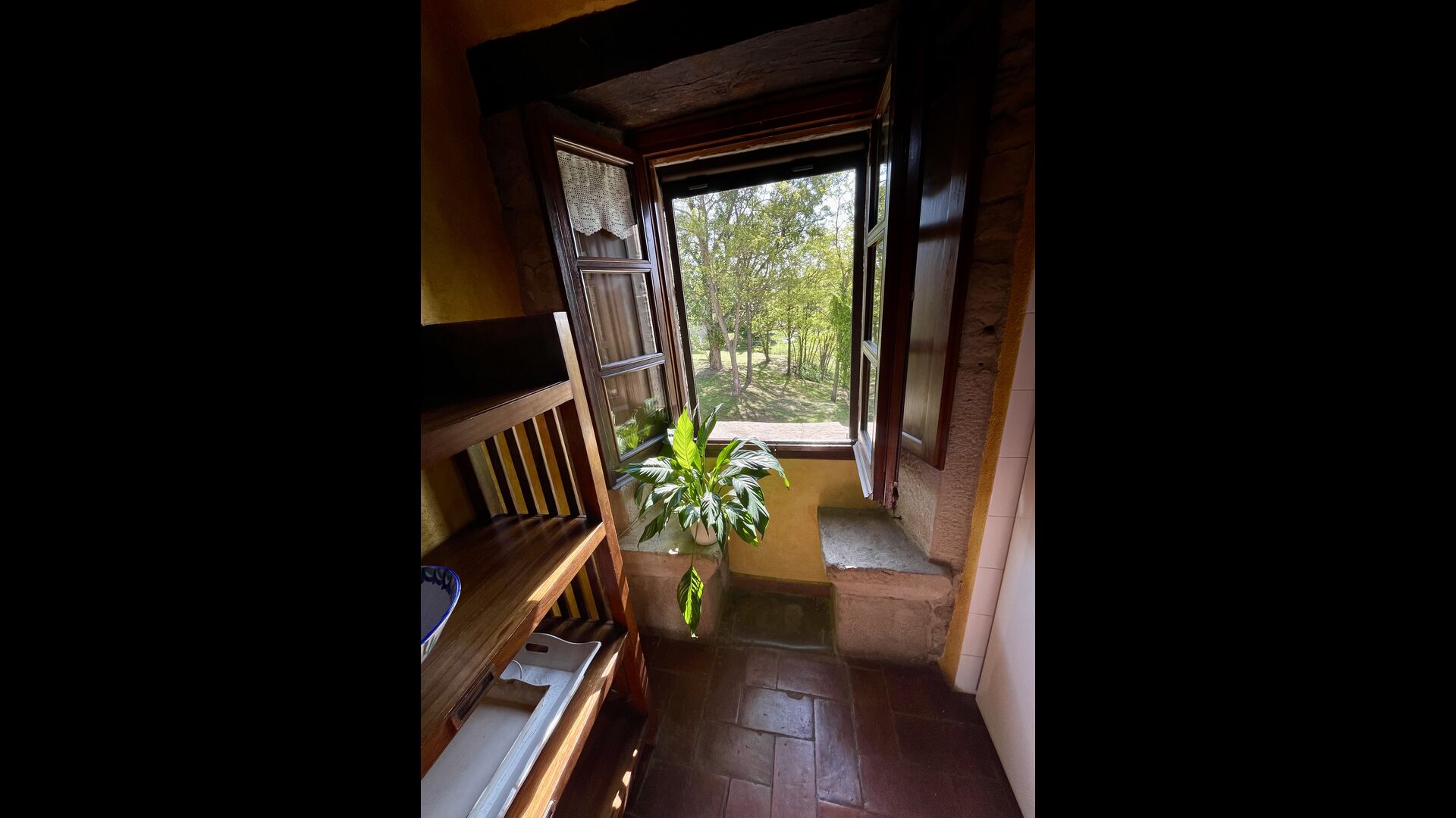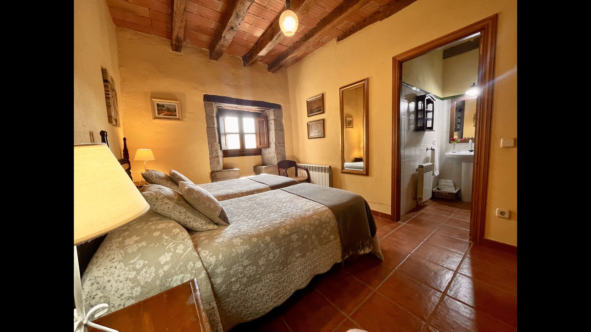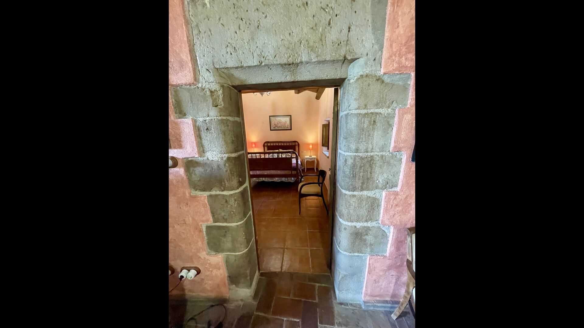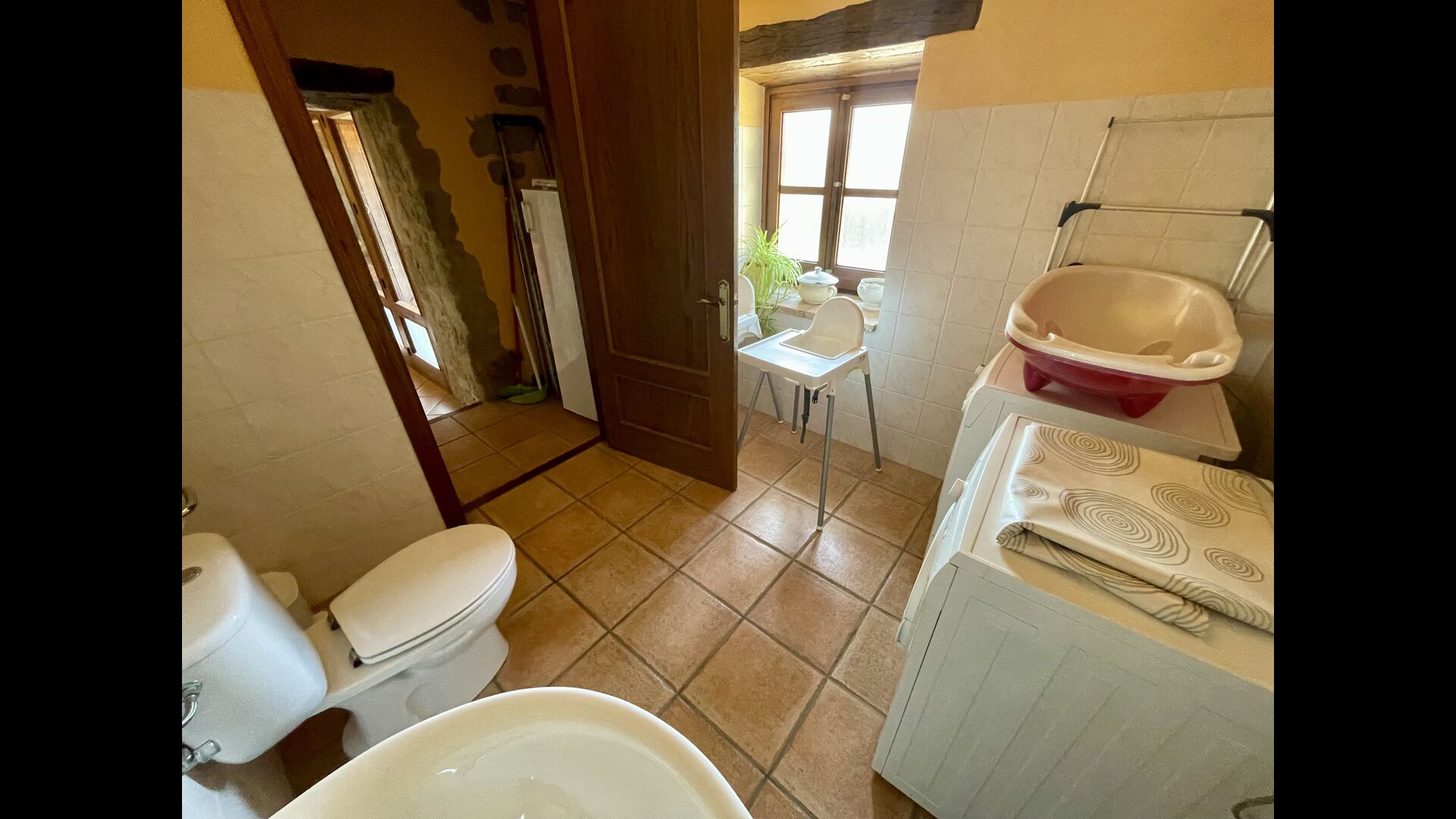 I dag er huset blevet fuldstændigt restaureret med bevarelse af sin oprindelige struktur. Bygget på en glidende sten, vil indgangen fra parkeringspladsen faktisk bringe dig direkte ind på første sal. Her er der et køkken med alle redskaber (komfur, mikroovn, opvaskemaskine, køkkenredskaber osv.), en meget stor stue/spisestue med et enormt spisebord i træ og fungerer også som fordelingsrum for alle. soveværelserne. Huset har i alt 6 soveværelser, hvoraf 2 er med tre senge. Hvert af soveværelserne har deres eget badeværelse. Derudover er der et toilet nedenunder, nyttigt når man opholder sig udenfor. Huset har også tv, dvd og WIFI-internet.