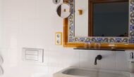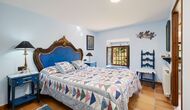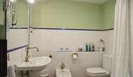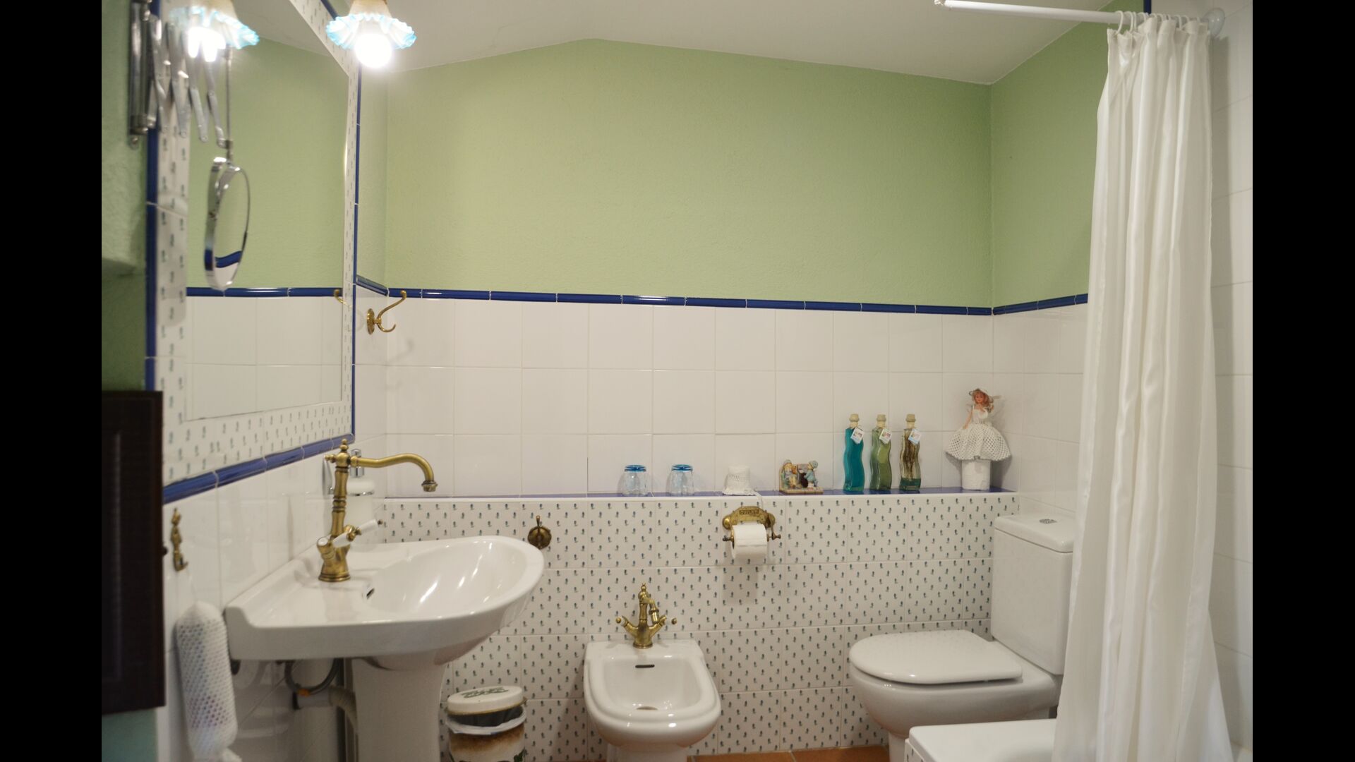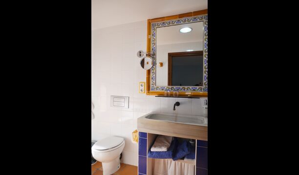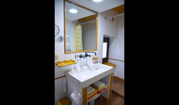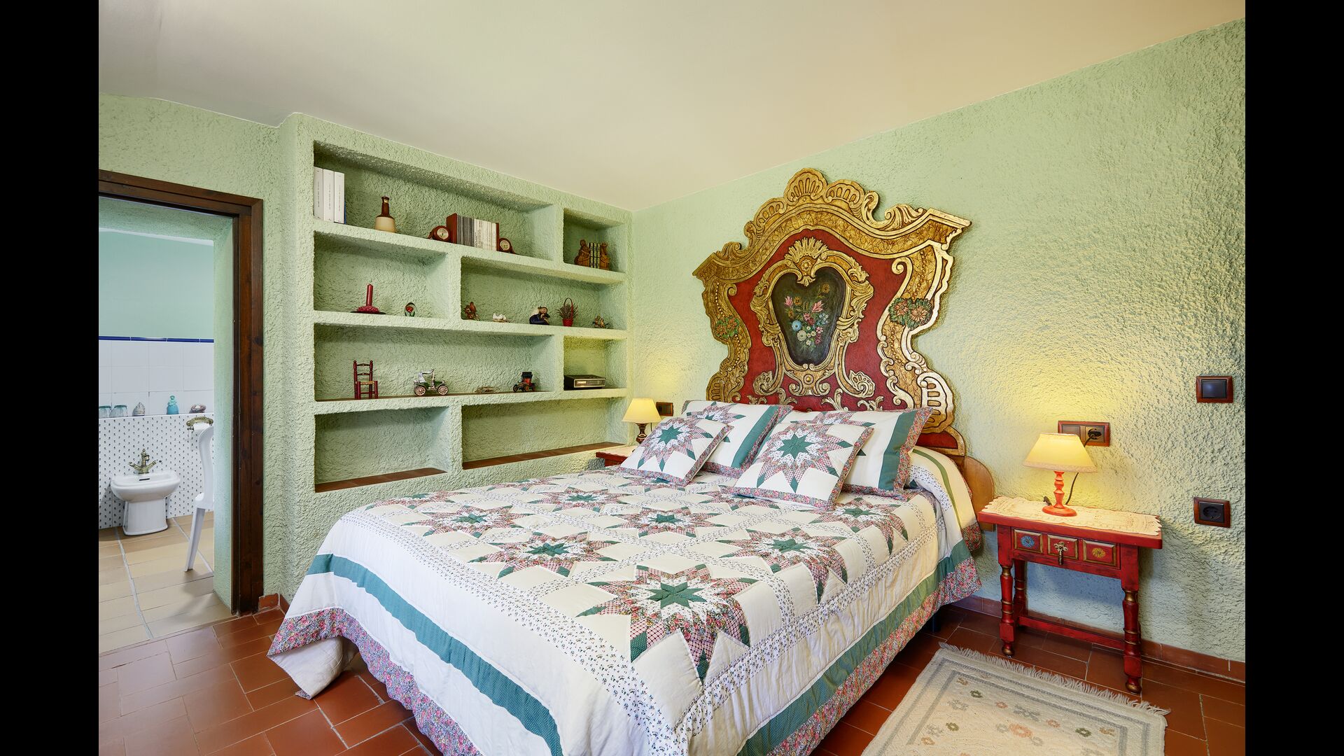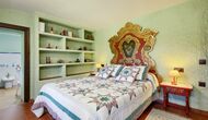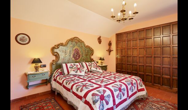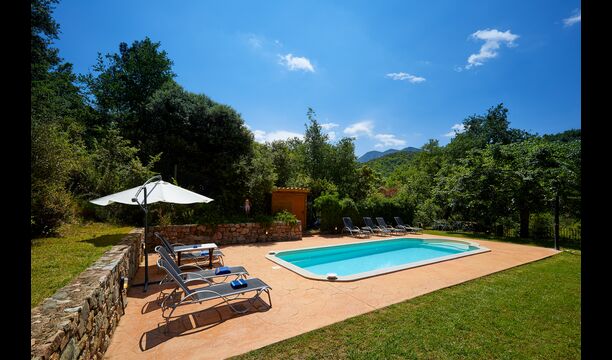 På første sal finder du de 5 soveværelser. Tre af dem har dobbeltsenge, et af dem har to enkeltsenge, som også kan arrangeres som dobbeltseng. Endelig er der et værelse med tre senge. Der er fire fuldt udstyrede badeværelser til deling. Også ovenpå, har du adgang til en terrasse med en smuk udsigt. Det er muligt at lukke den med glasskydedøre, hvis du bor i huset i efteråret eller om vinteren.