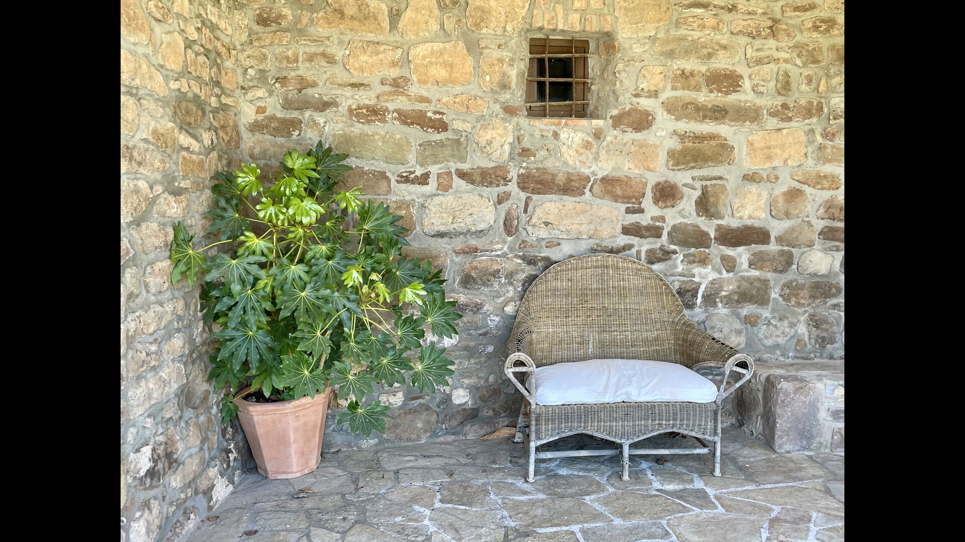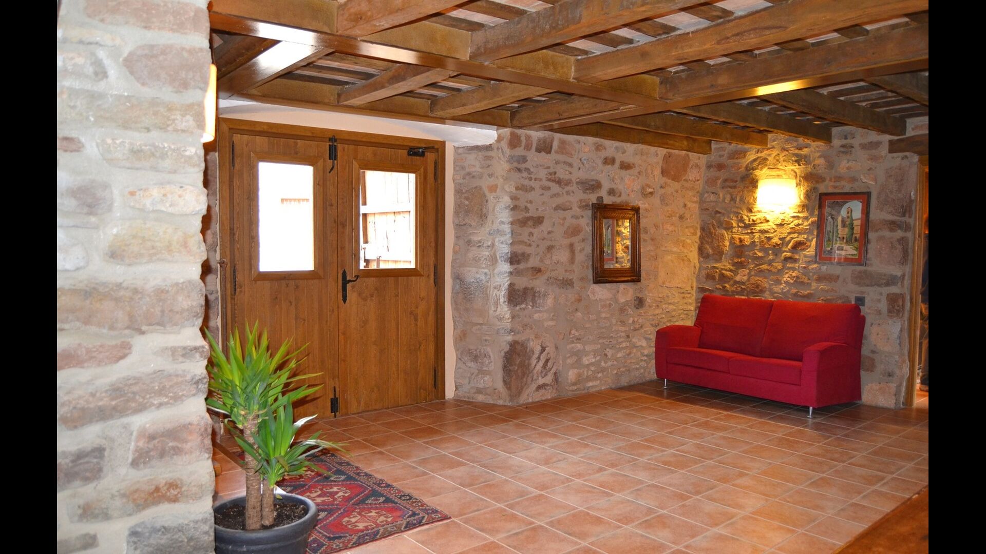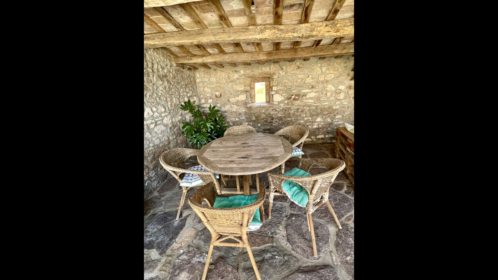 Husene ligger i smukke omgivelser og i forskellige planer. Der er områder til afslapning og barbecue og den overdækkede terrasse, beliggende tværs over den indre gård fra køkkenet, er særdeles velegnet til måltider i det fri og det oplagte sted at tilbringe de varme sommeraftener.