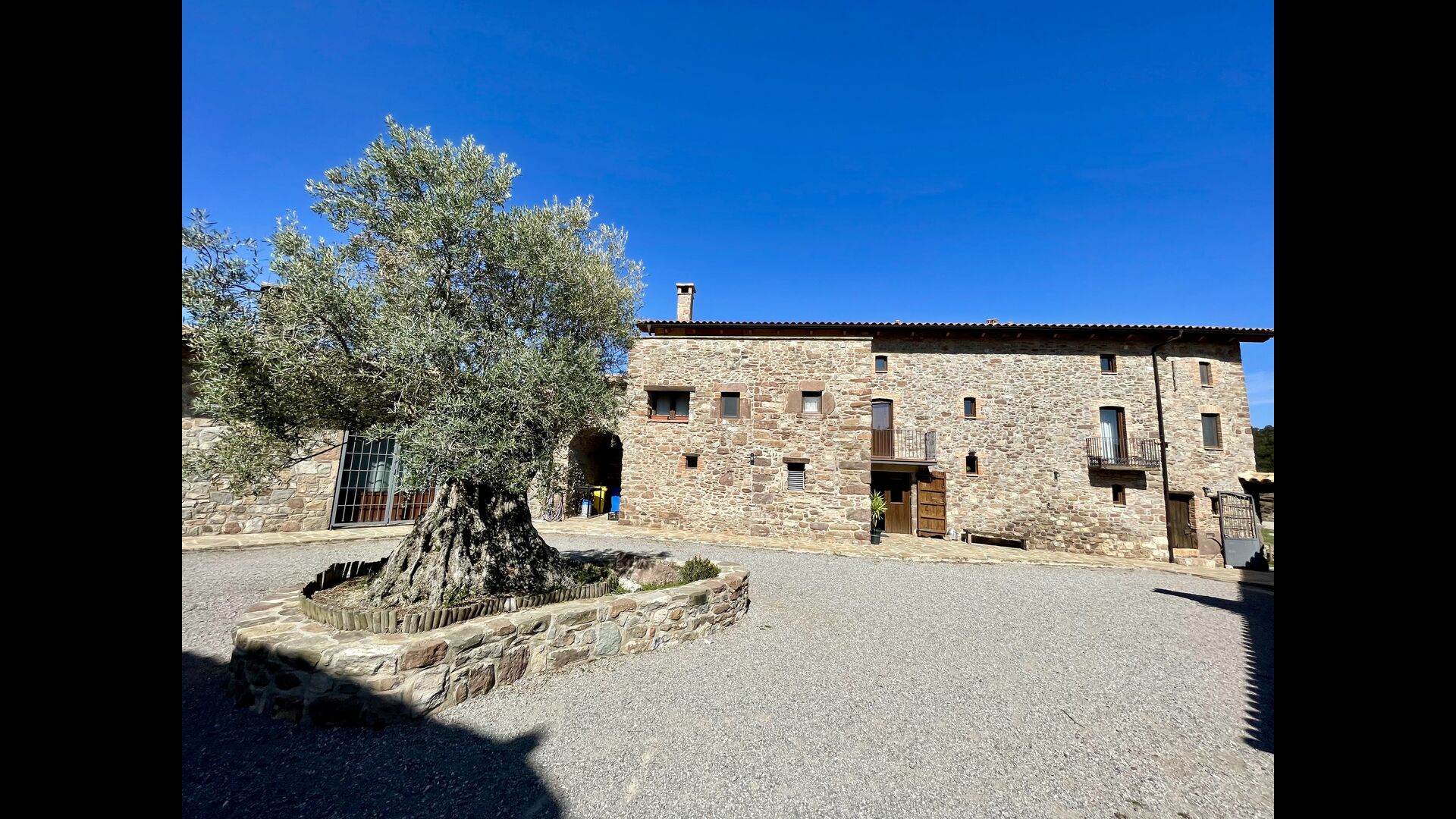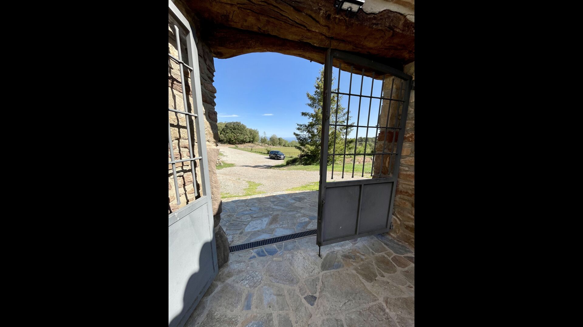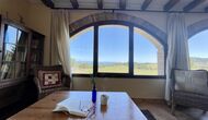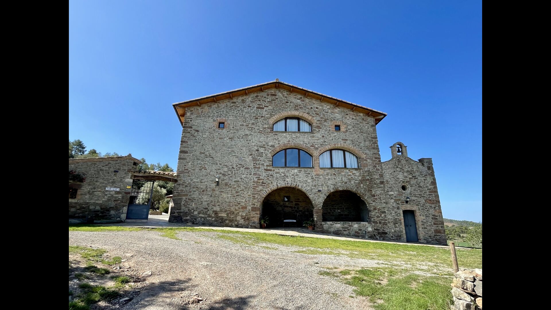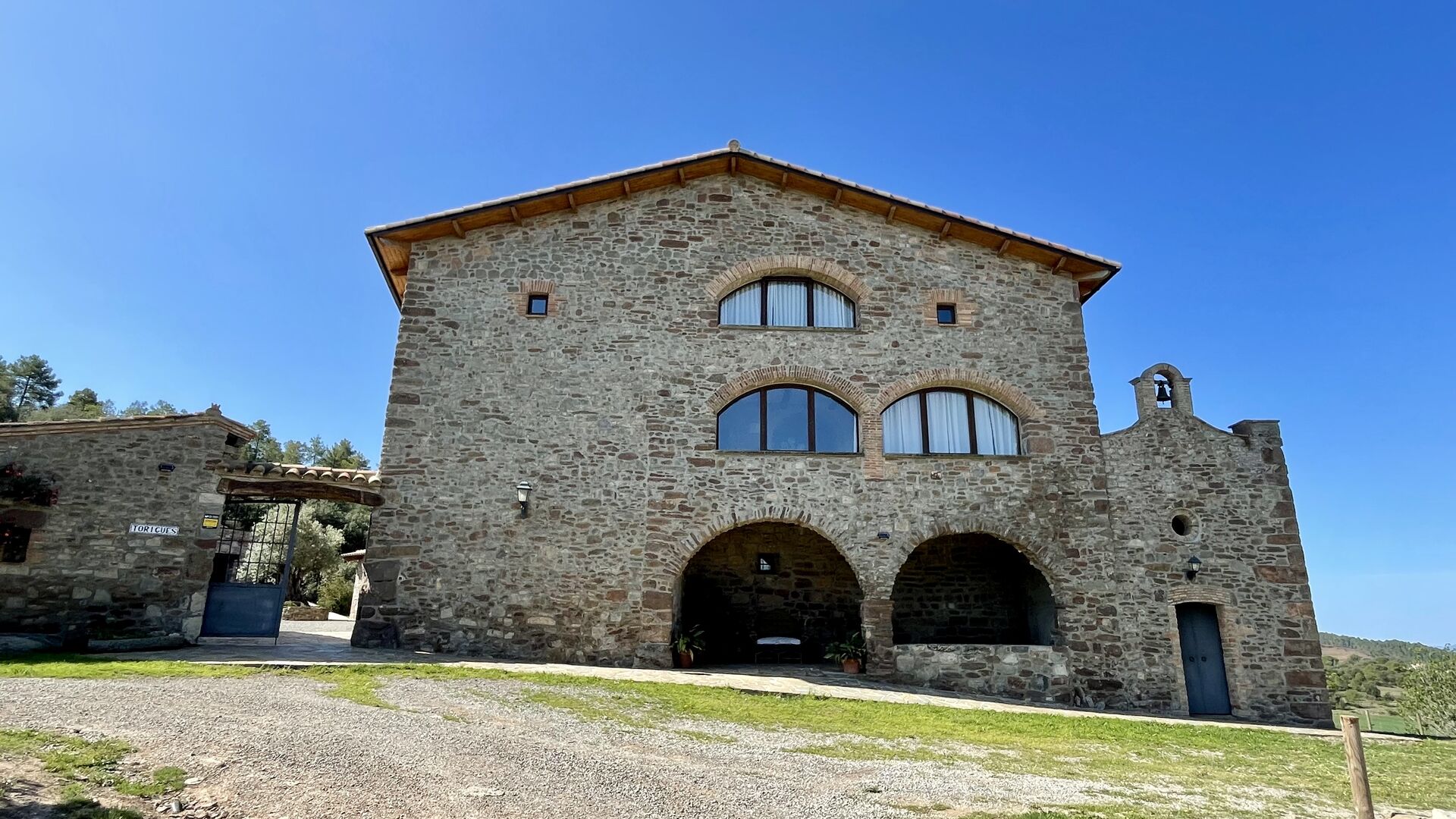 Man ankommer til huset, først gennem en smuk port og videre ad en grusvej til toppen af bakken, hvor Masia torretés ligger med fremragende udsigt over skove og marker.