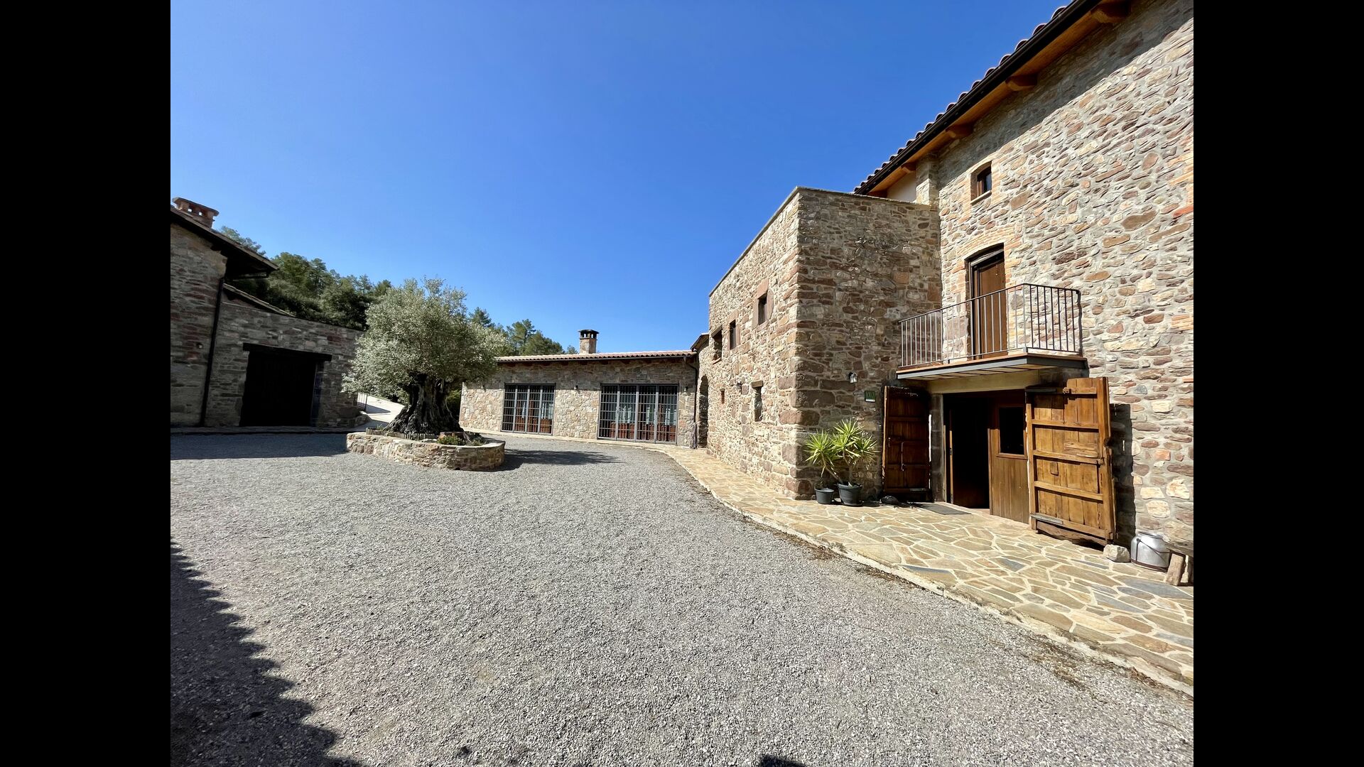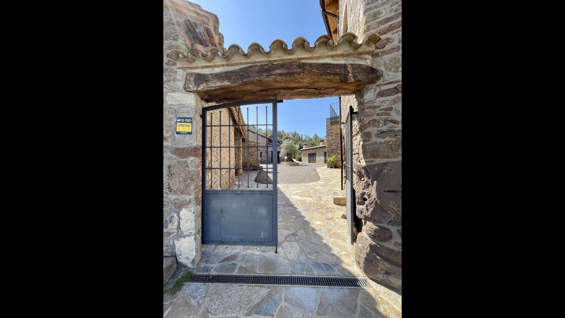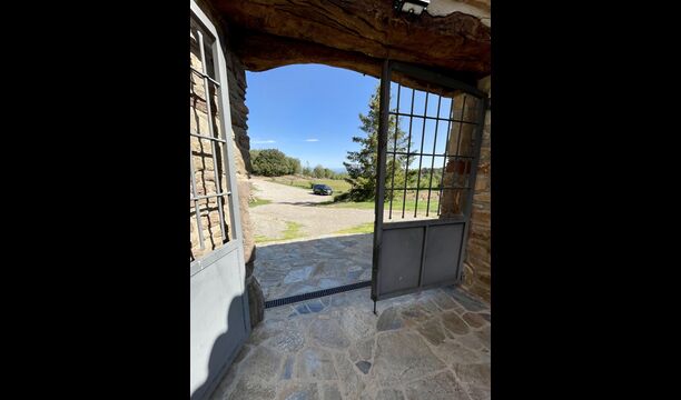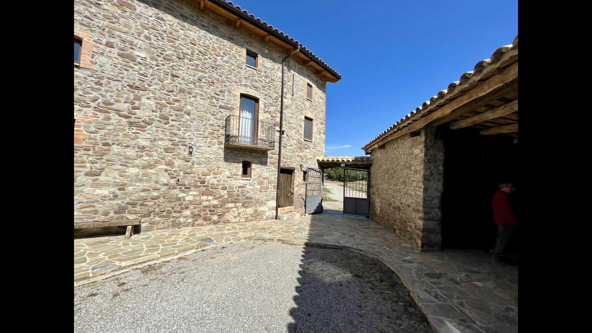 Man ankommer til huset, først gennem en smuk port og videre ad en grusvej til toppen af bakken, hvor Masia torretés ligger med fremragende udsigt over skove og marker.