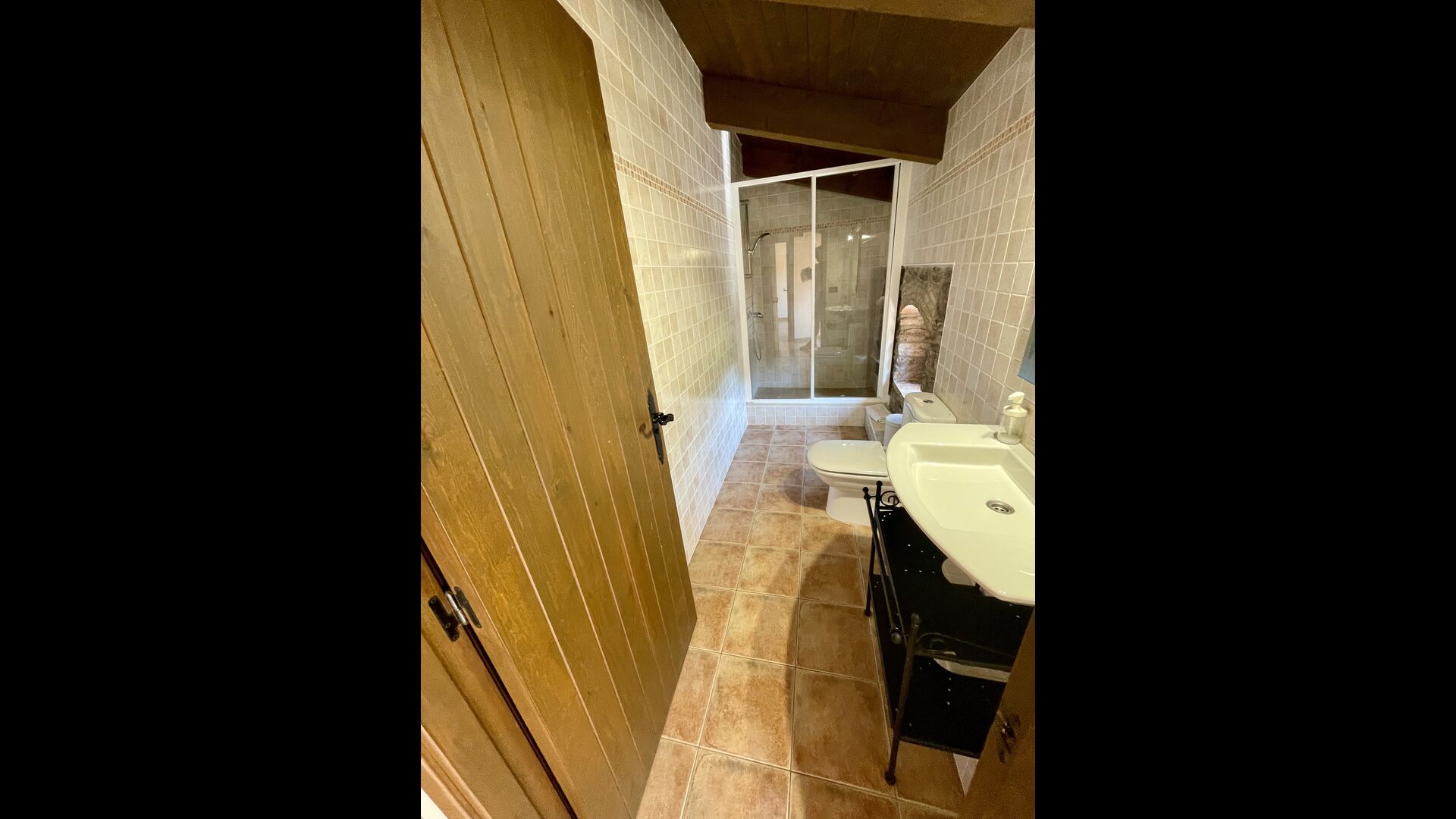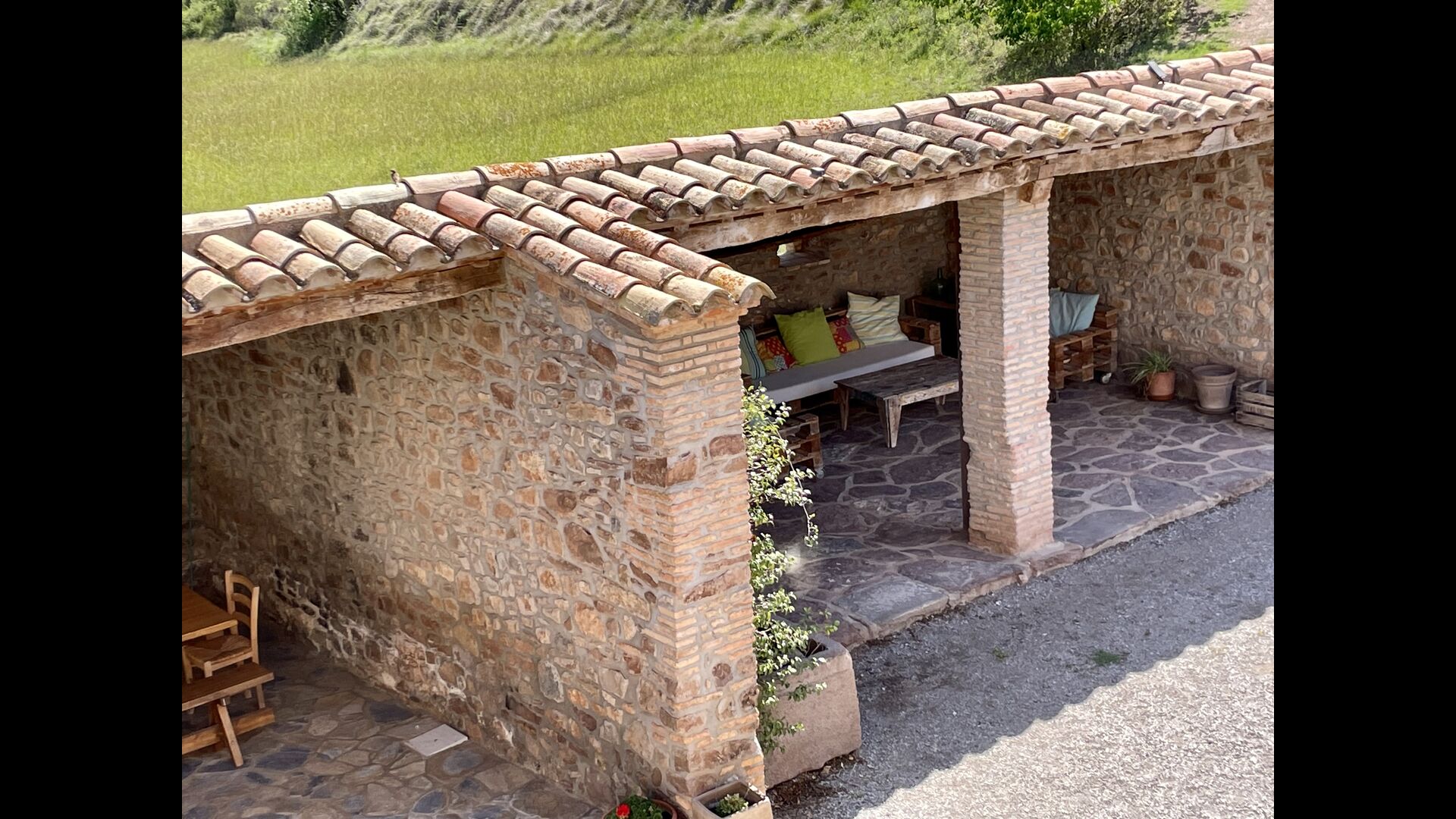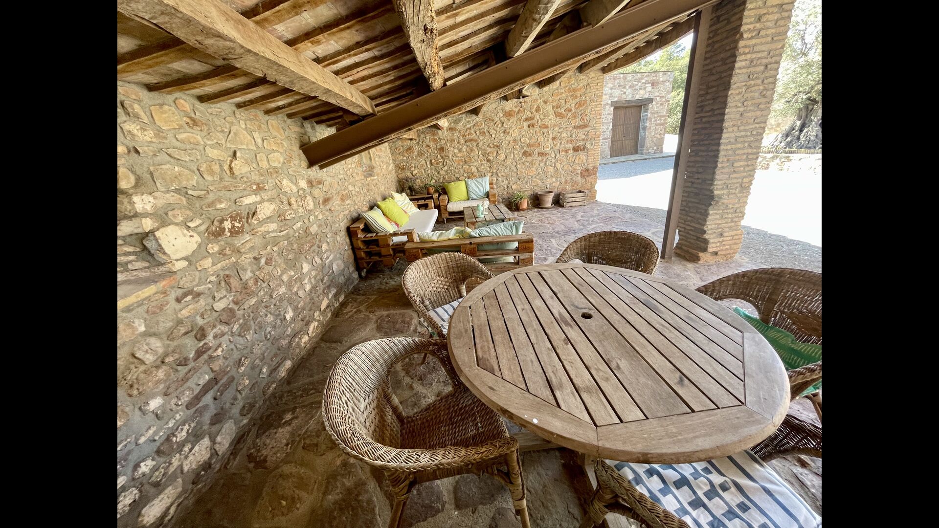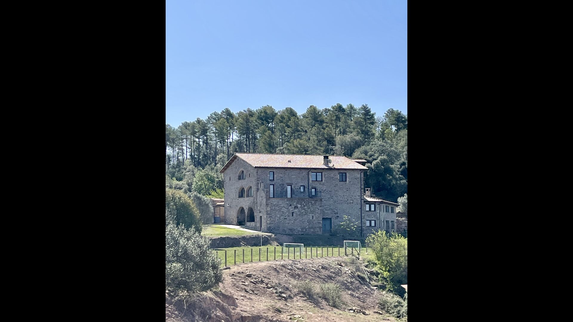 Man ankommer til huset, først gennem en smuk port og videre ad en grusvej til toppen af bakken, hvor Masia torretés ligger med fremragende udsigt over skove og marker.