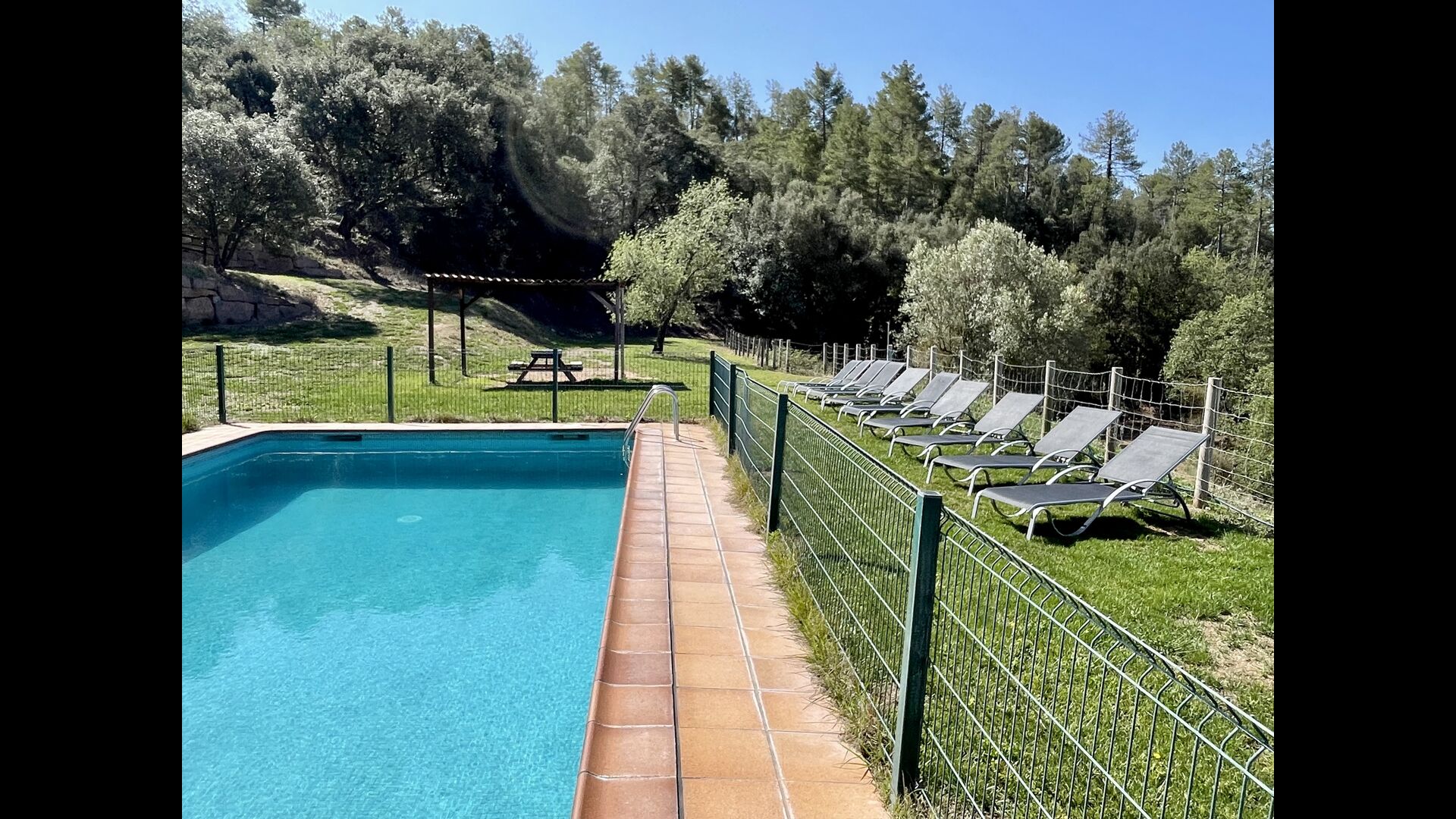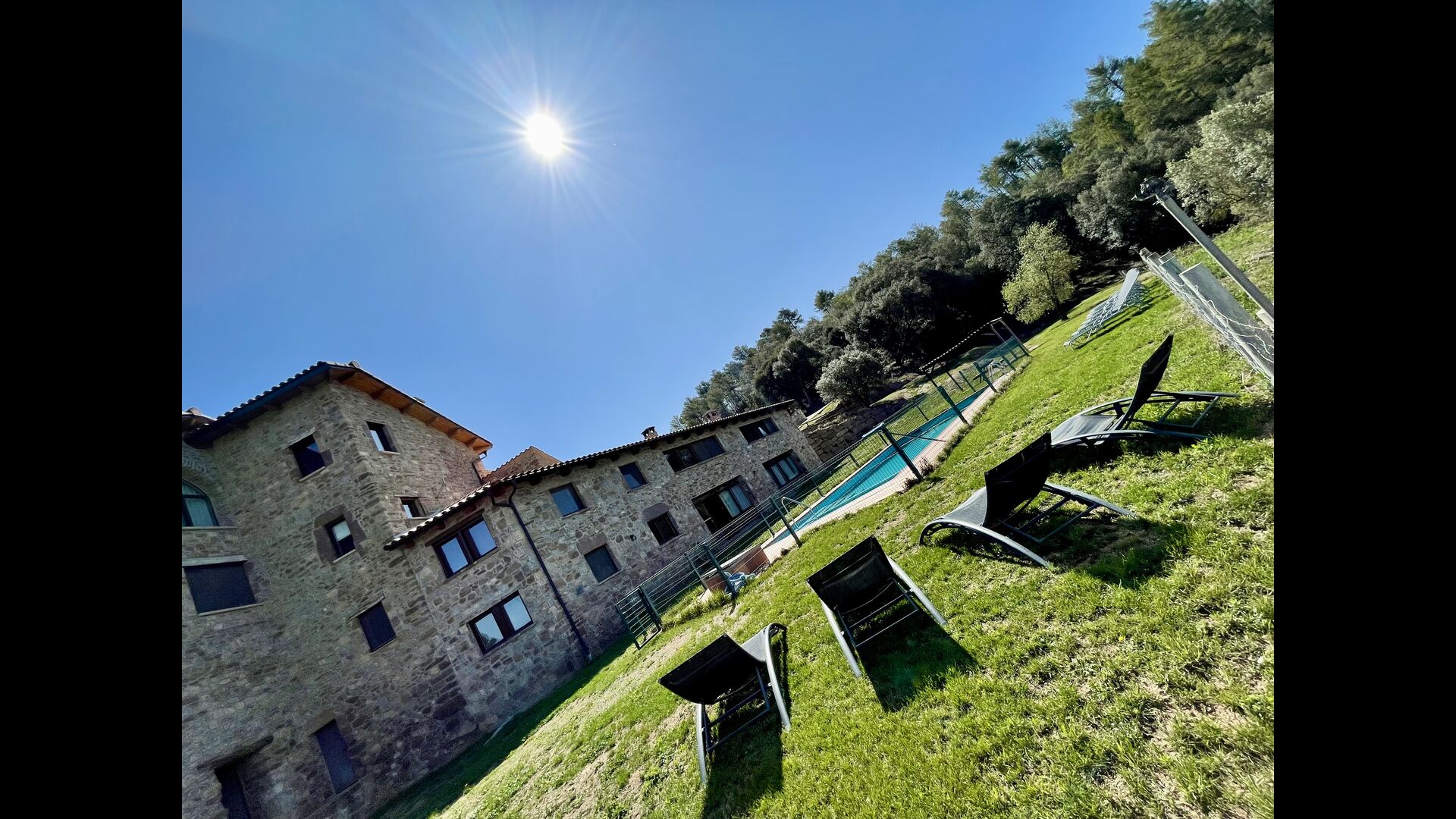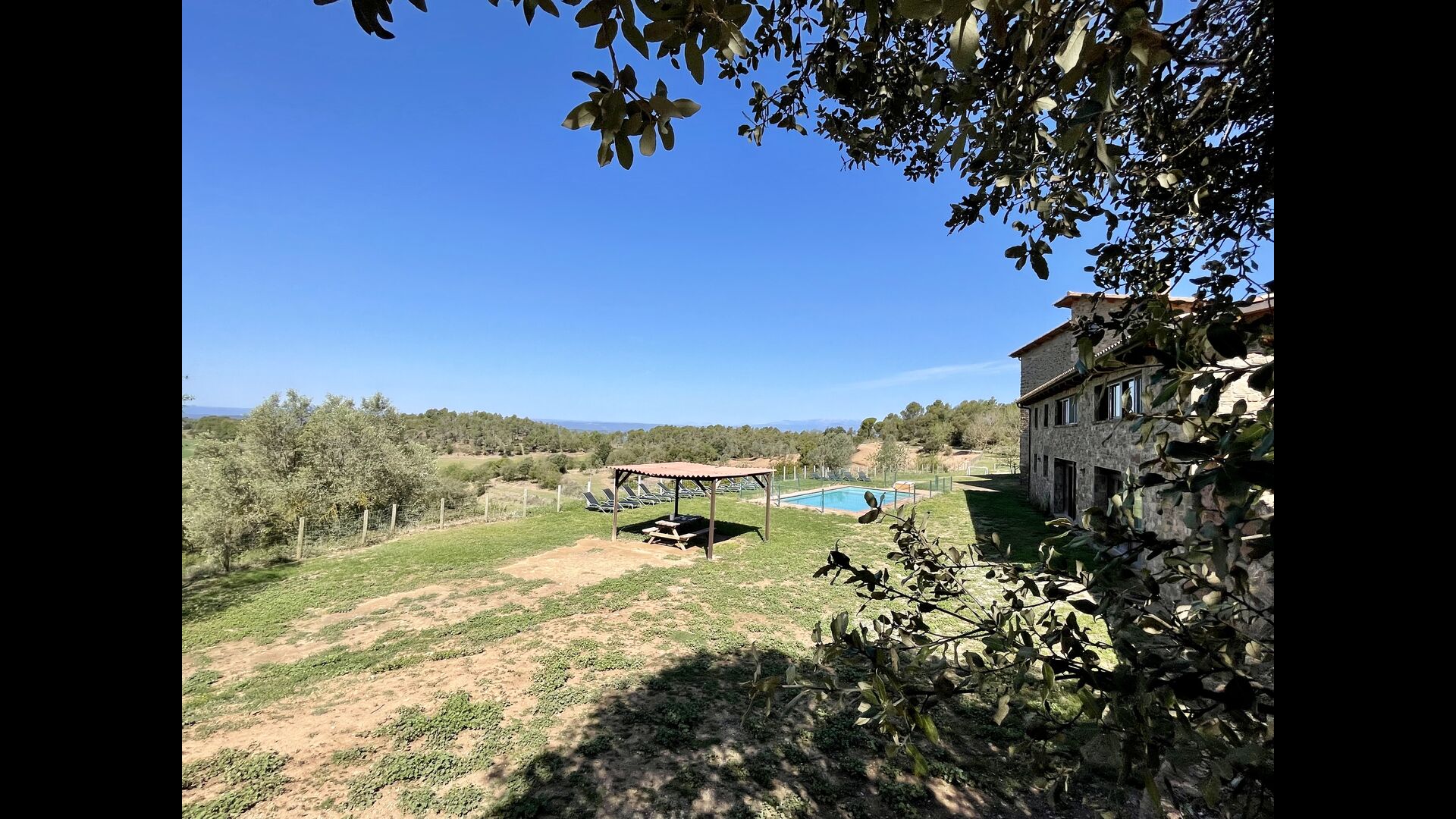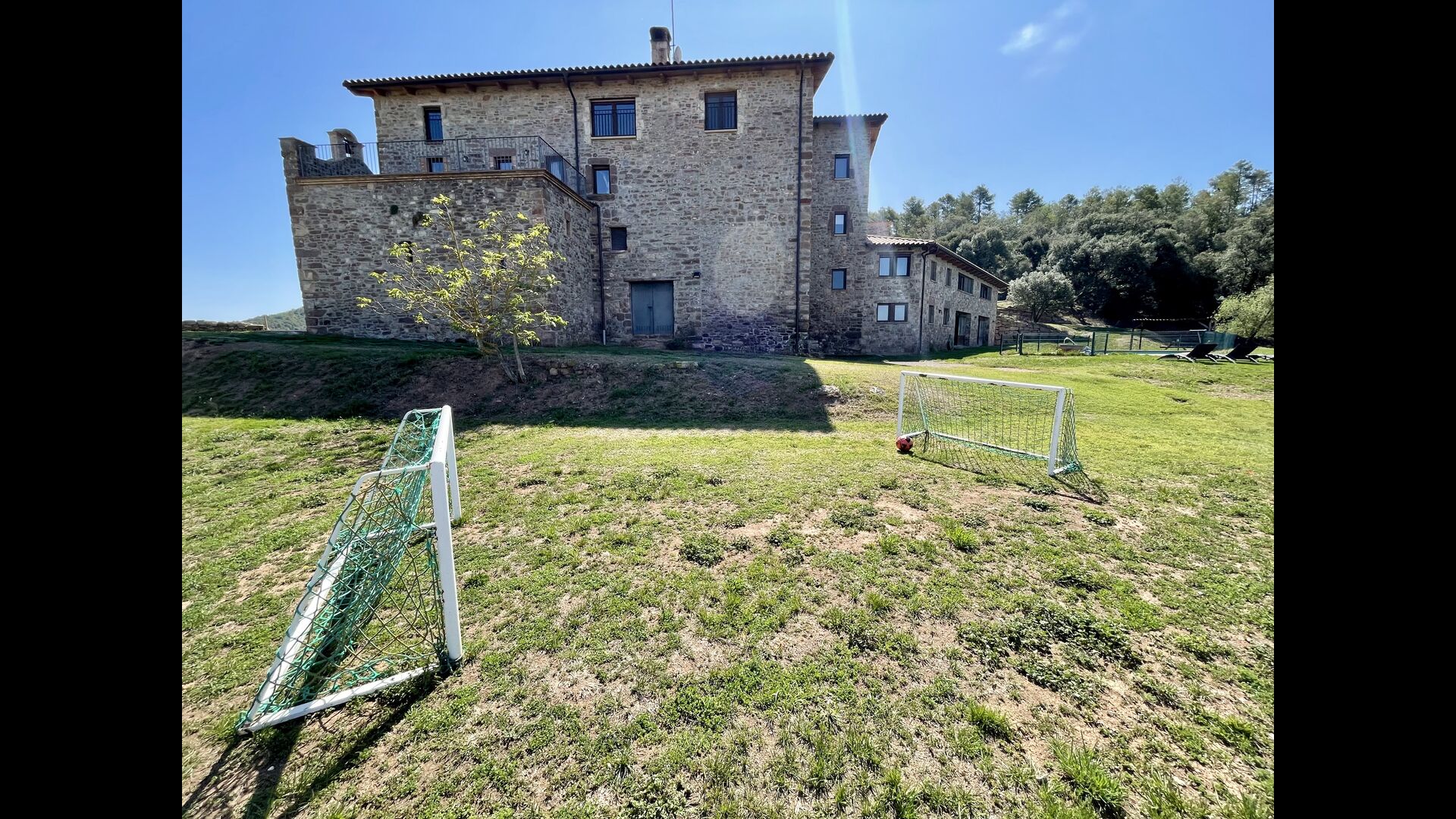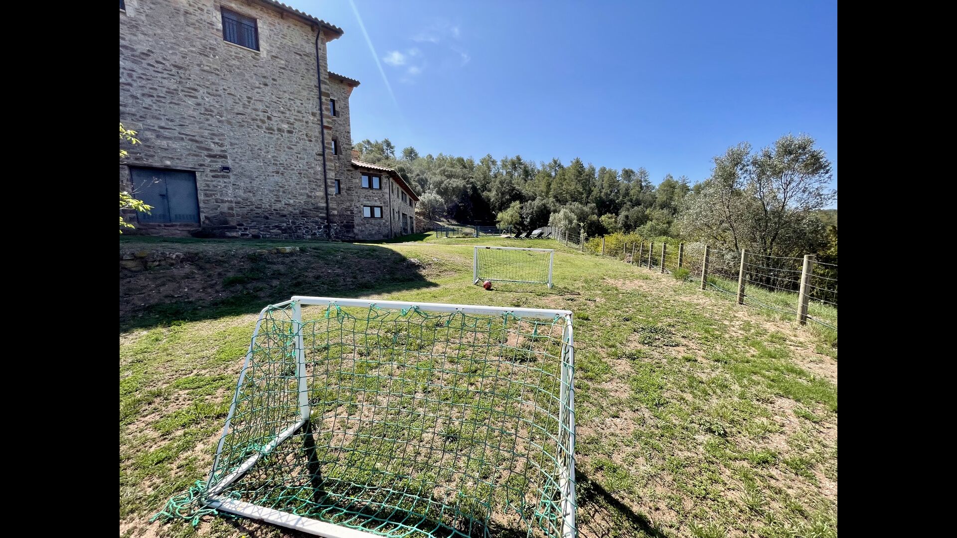 Nedenfor huset finder man det store pool-område med græsplæne og swimmingpool med en særlig afdeling for små børn. Her kan man virkelig nyde de solrige dage i Catalonien. Ydermere er der en lille fodboldbane og indendørs er der en sal med billard, bordtennis og bordfodbold.
