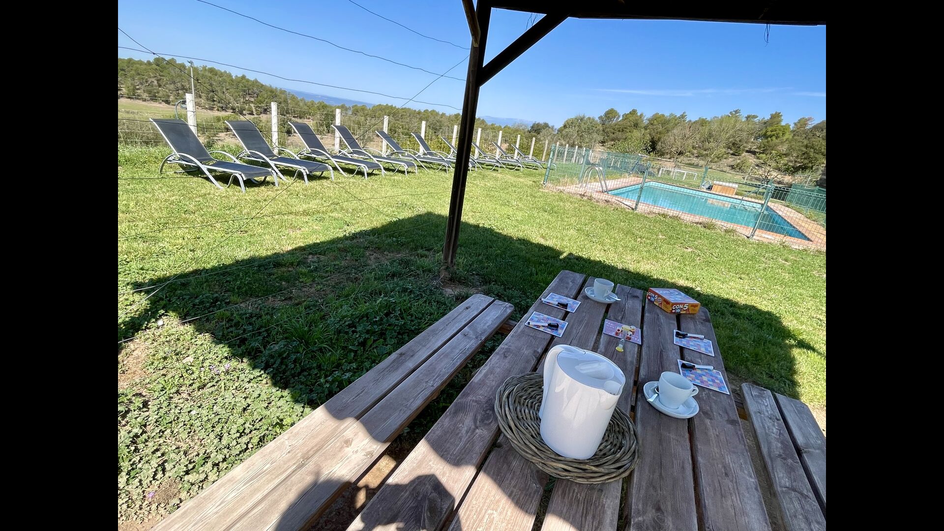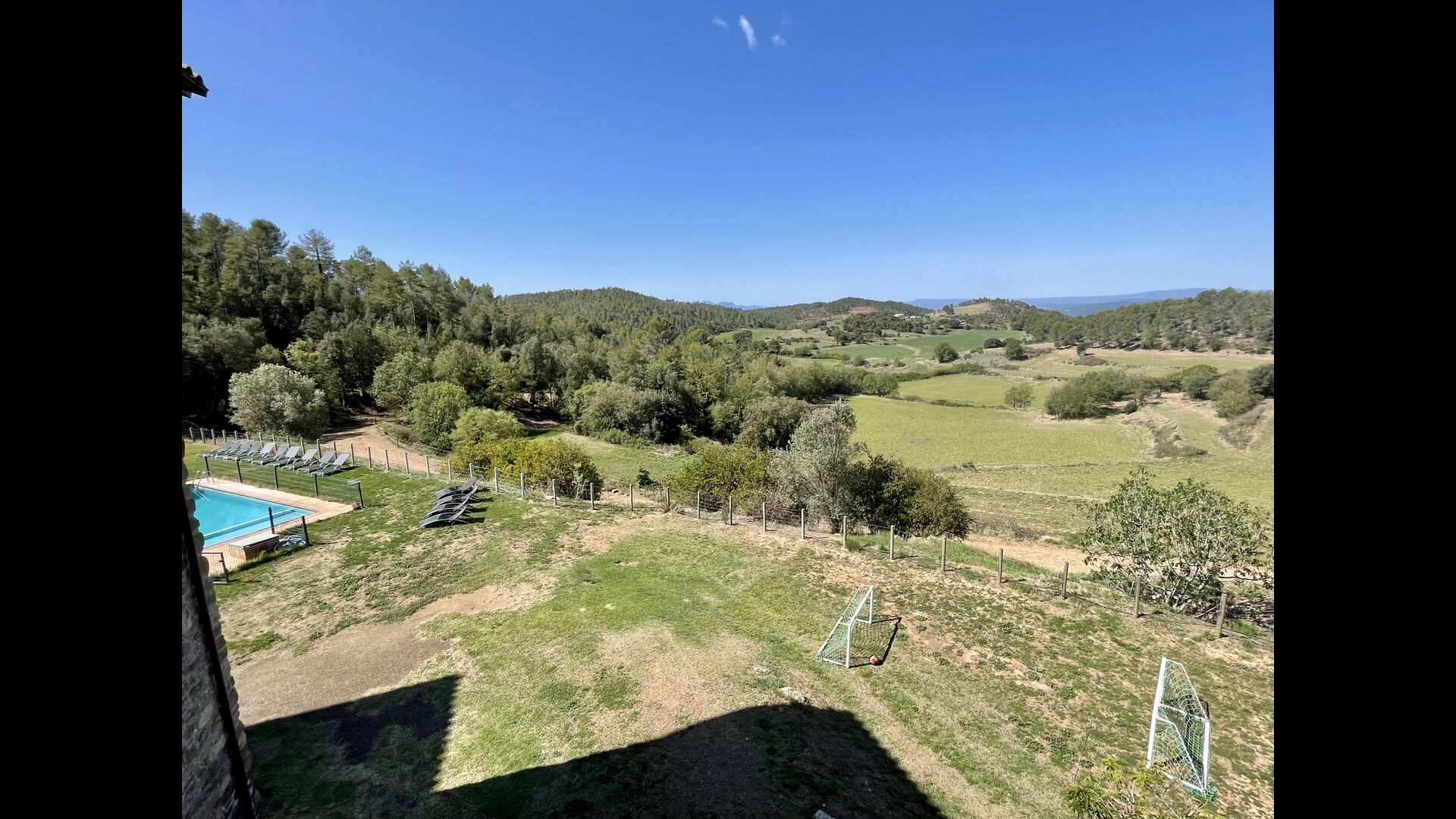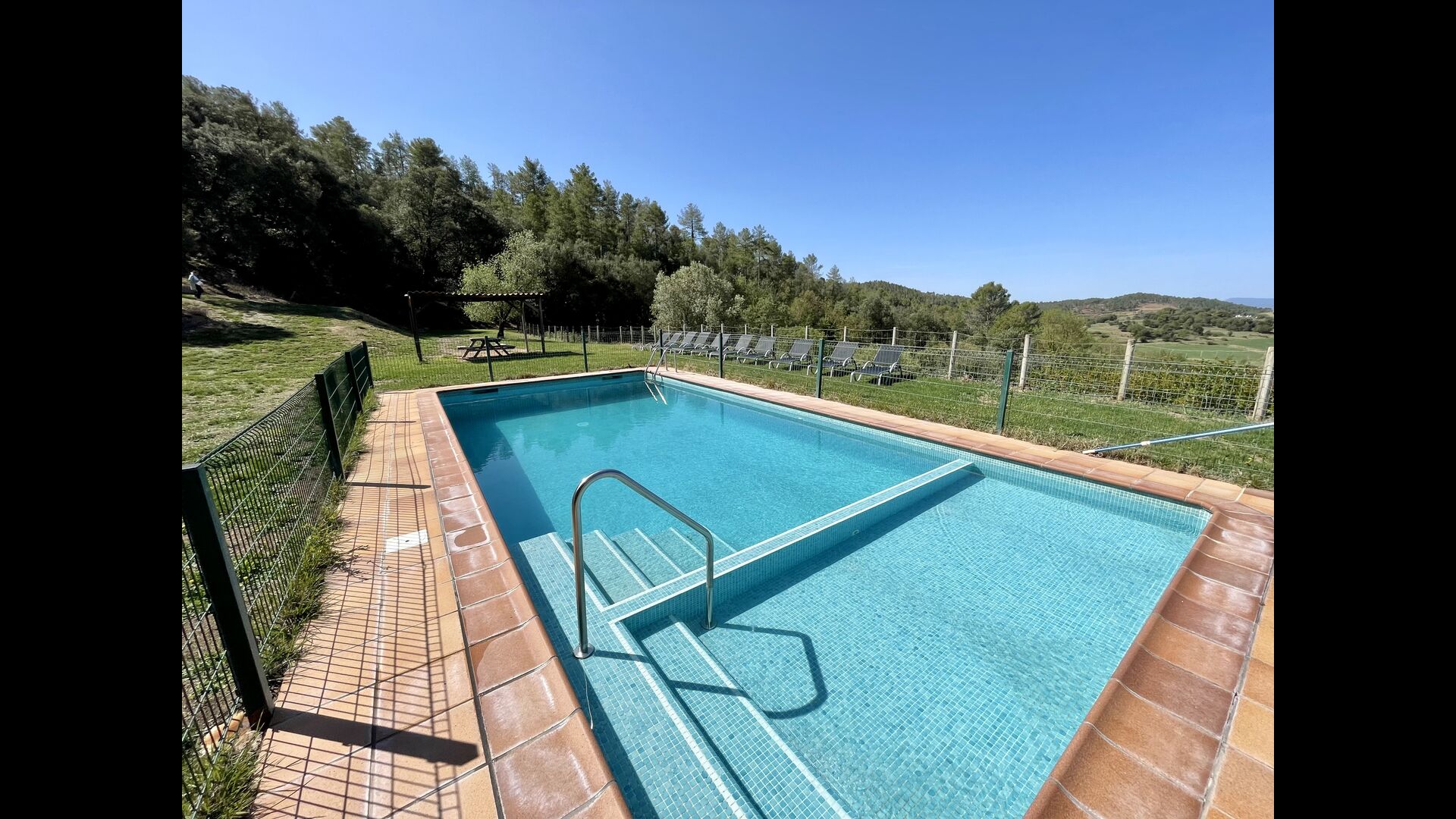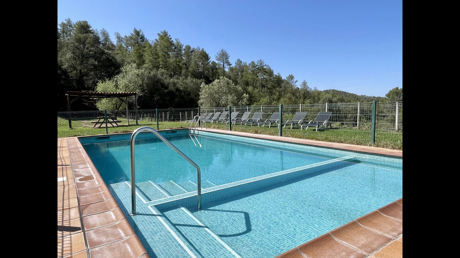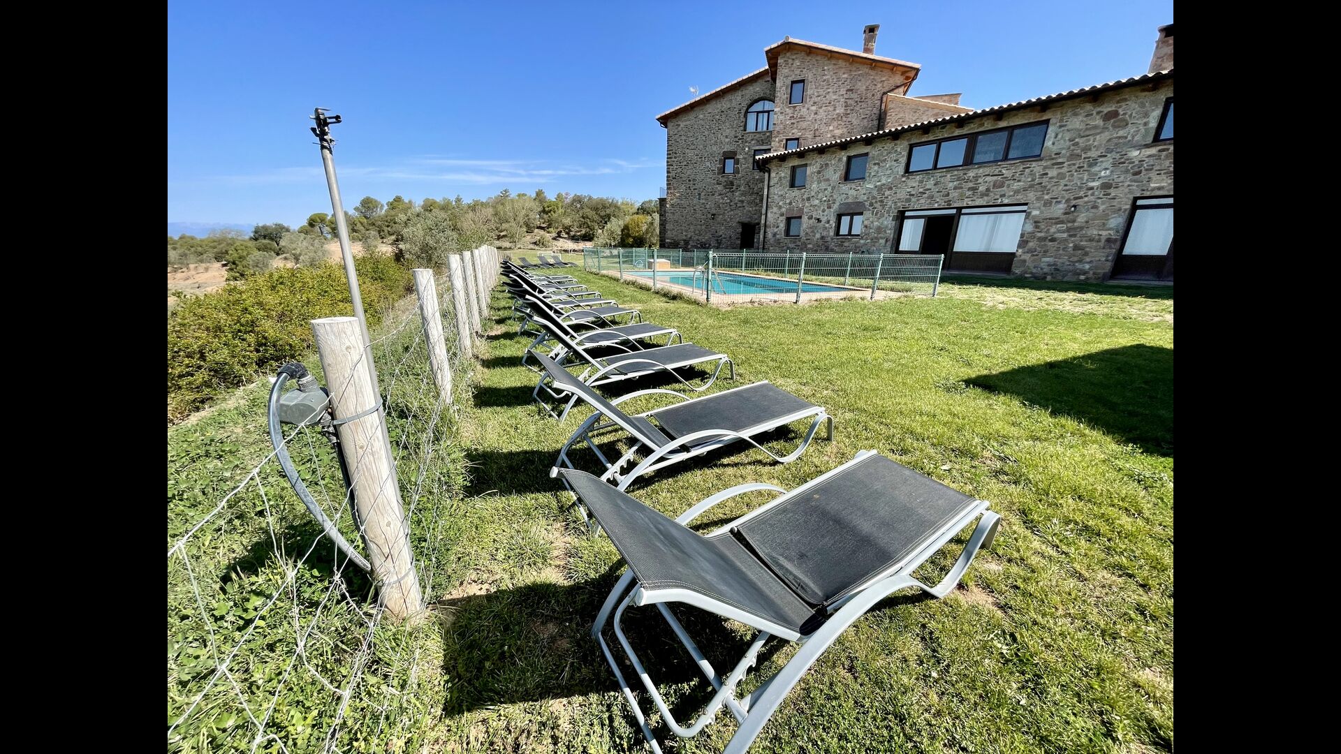 Nedenfor huset finder man det store pool-område med græsplæne og swimmingpool med en særlig afdeling for små børn. Her kan man virkelig nyde de solrige dage i Catalonien. Ydermere er der en lille fodboldbane og indendørs er der en sal med billard, bordtennis og bordfodbold.