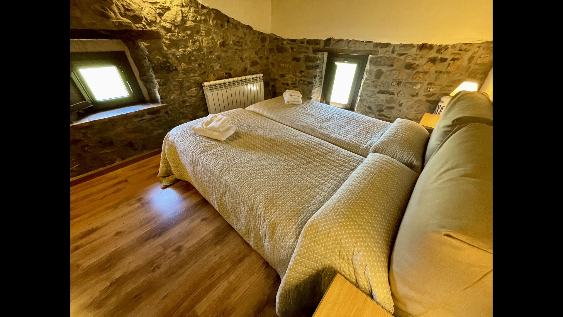 Soveværelserne er fordelt på 1. og 2.sal og har alle en flot udsigt. På 1.sal er der 3 smukt indrettede dobbeltværelser og en lounge, hvor man kan slappe af. Der er tillige en stor terrasse med udsigt til Montserrat. Et af værelserne har eget bad og direkte adgang til terrassen og i den anden ende deler to dobbeltværelser et badeværelse.