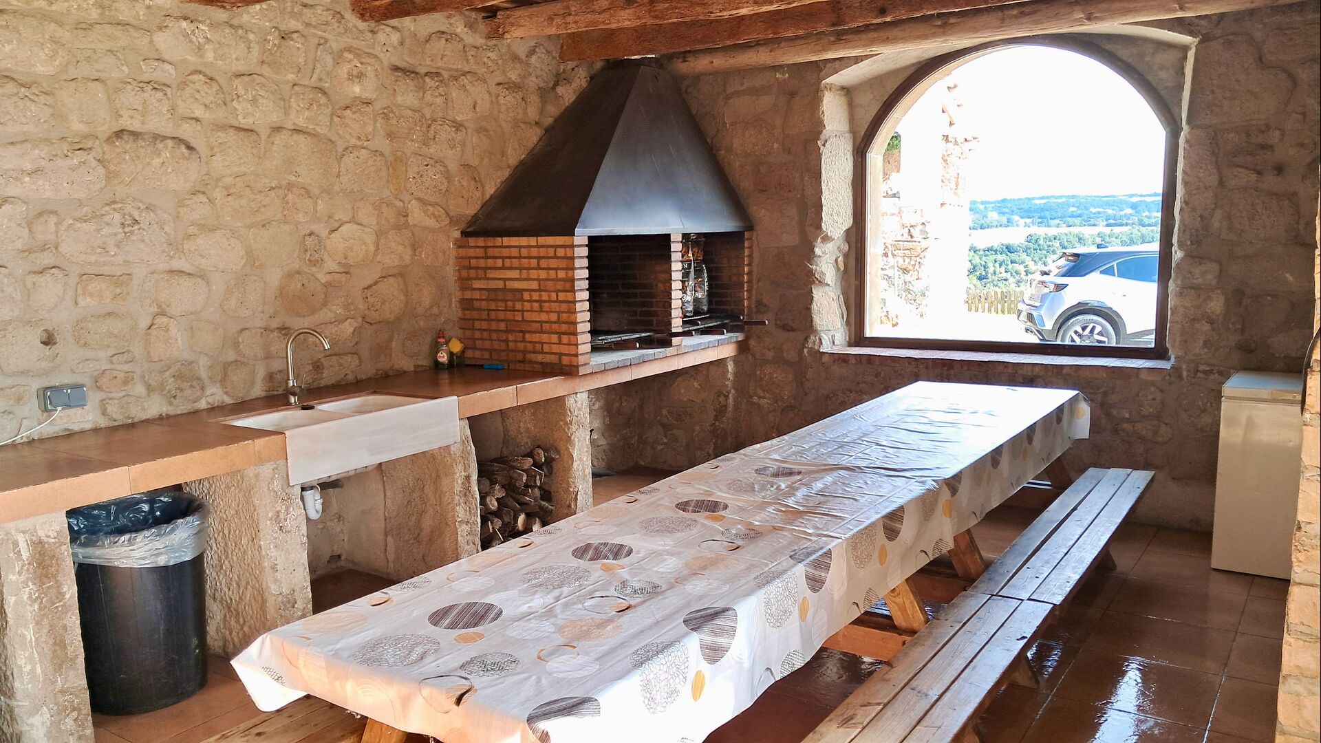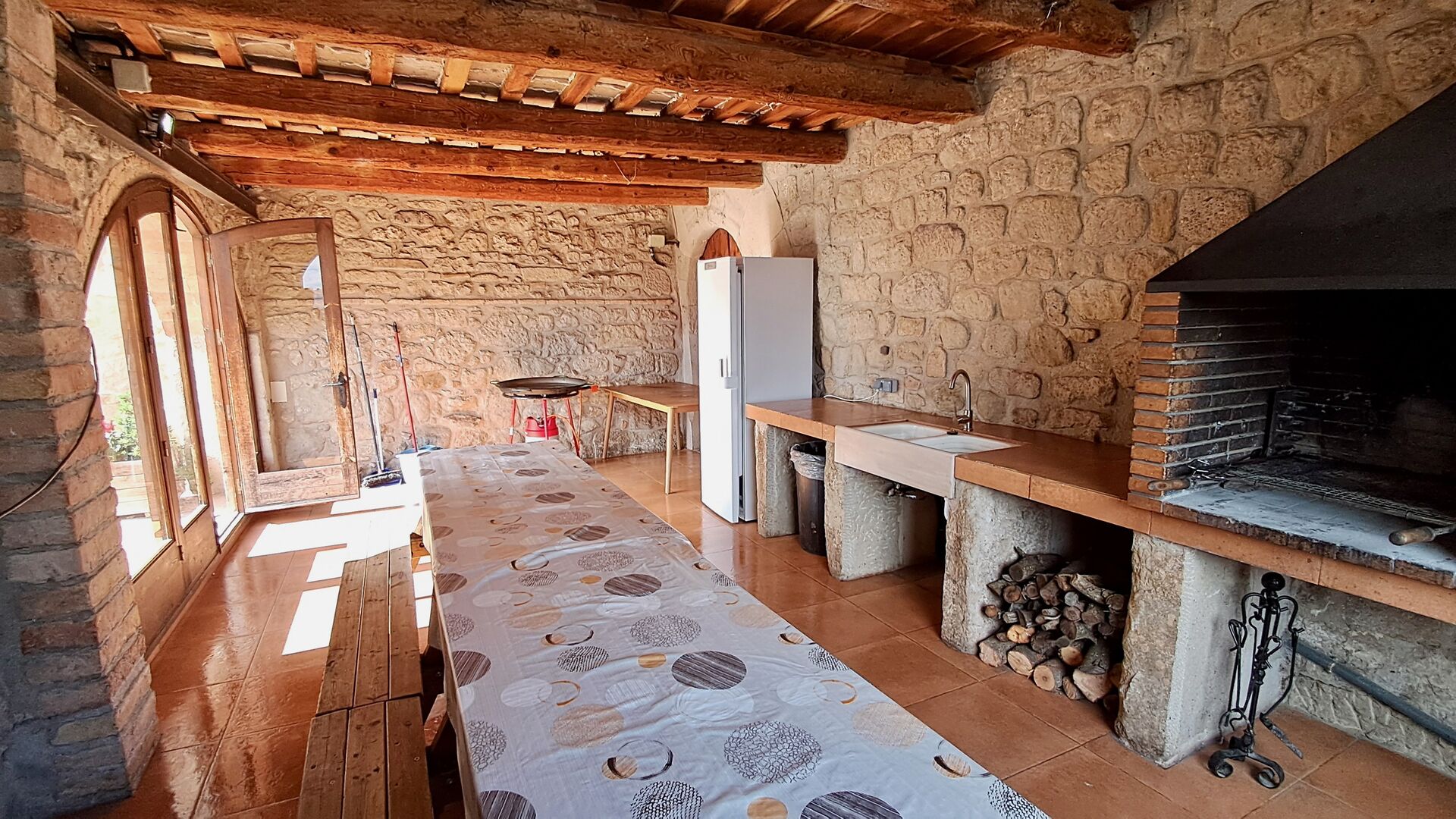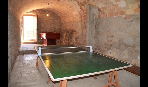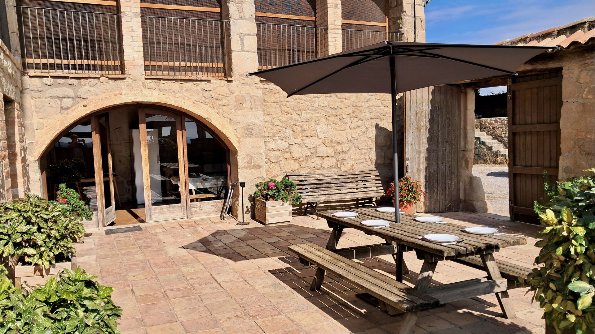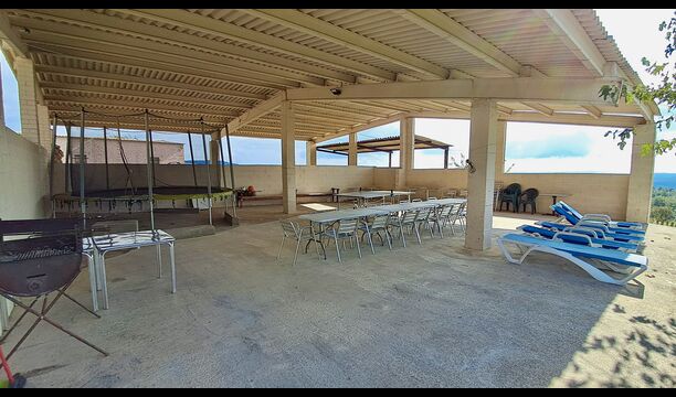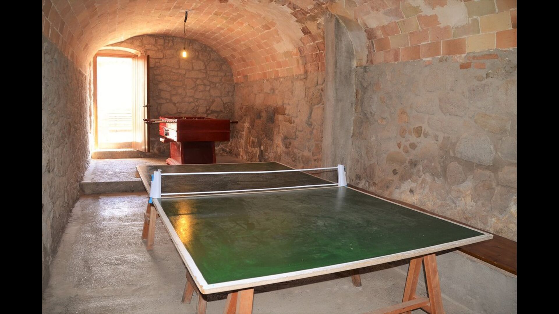 Ferieboligen har en mindre og hyggelig gårdplads med siddearrangement. Her er der også indgang til en mindre spillehal med bordfodbold og bordtennis. På den anden side af huset er der en overdækket terrasse med stor BBQ-grill, vask og fryser samt et stort spisebord. Her kan man altså både tilberede og nyde aftensmaden i den lune aftensol. Hvis man er frisk på at kaste sig ud i de lokale specialiteter, er der en elektrisk paellapande.