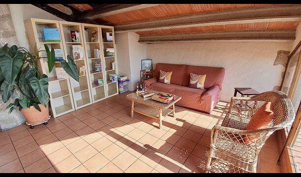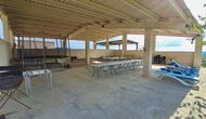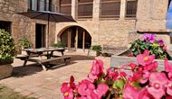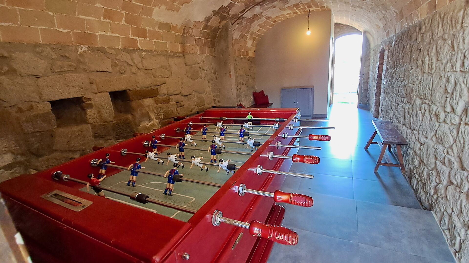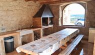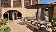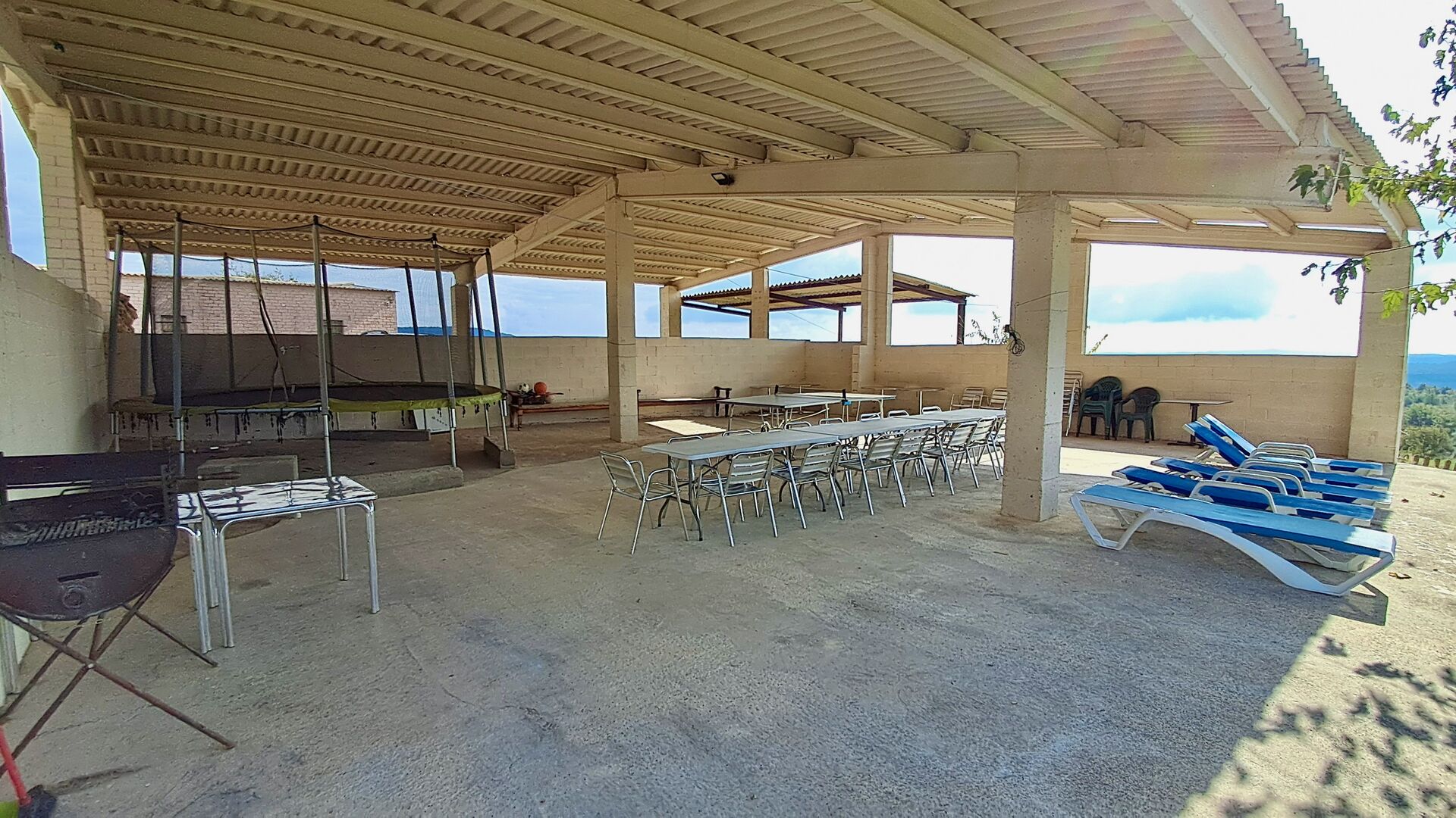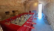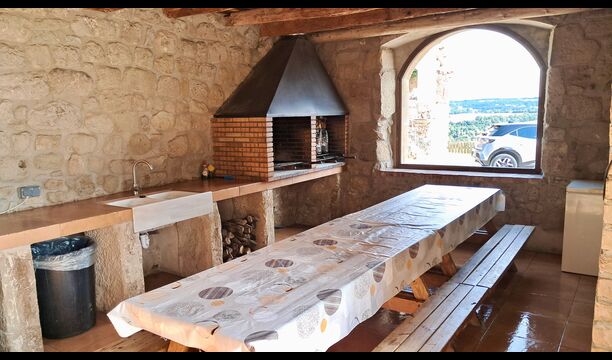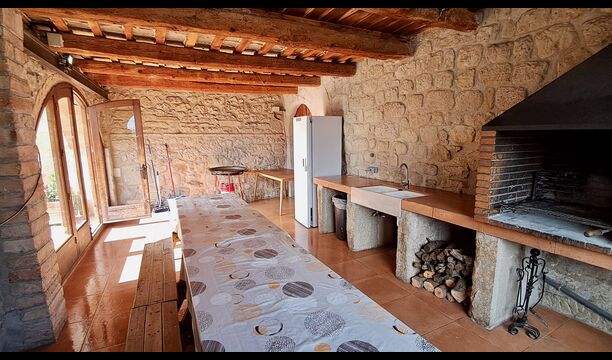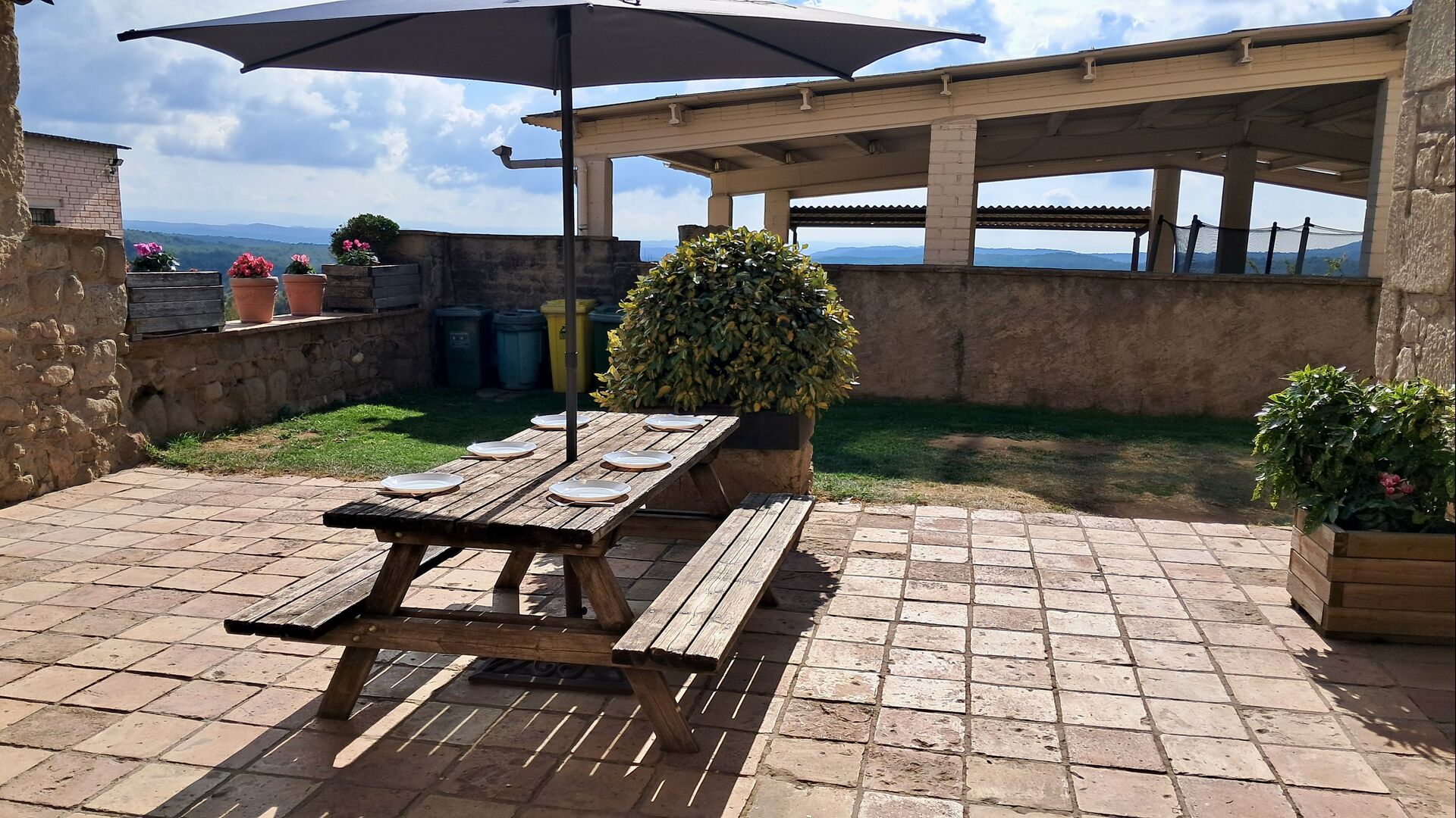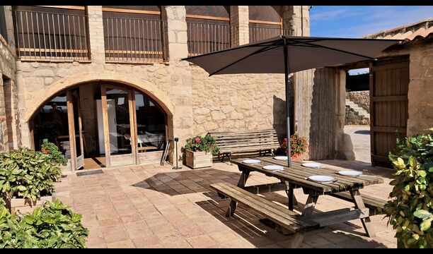 Ferieboligen har en mindre og hyggelig gårdplads med siddearrangement. Her er der også indgang til en mindre spillehal med bordfodbold og bordtennis. På den anden side af huset er der en overdækket terrasse med stor BBQ-grill, vask og fryser samt et stort spisebord. Her kan man altså både tilberede og nyde aftensmaden i den lune aftensol. Hvis man er frisk på at kaste sig ud i de lokale specialiteter, er der en elektrisk paellapande.