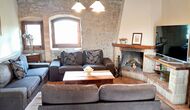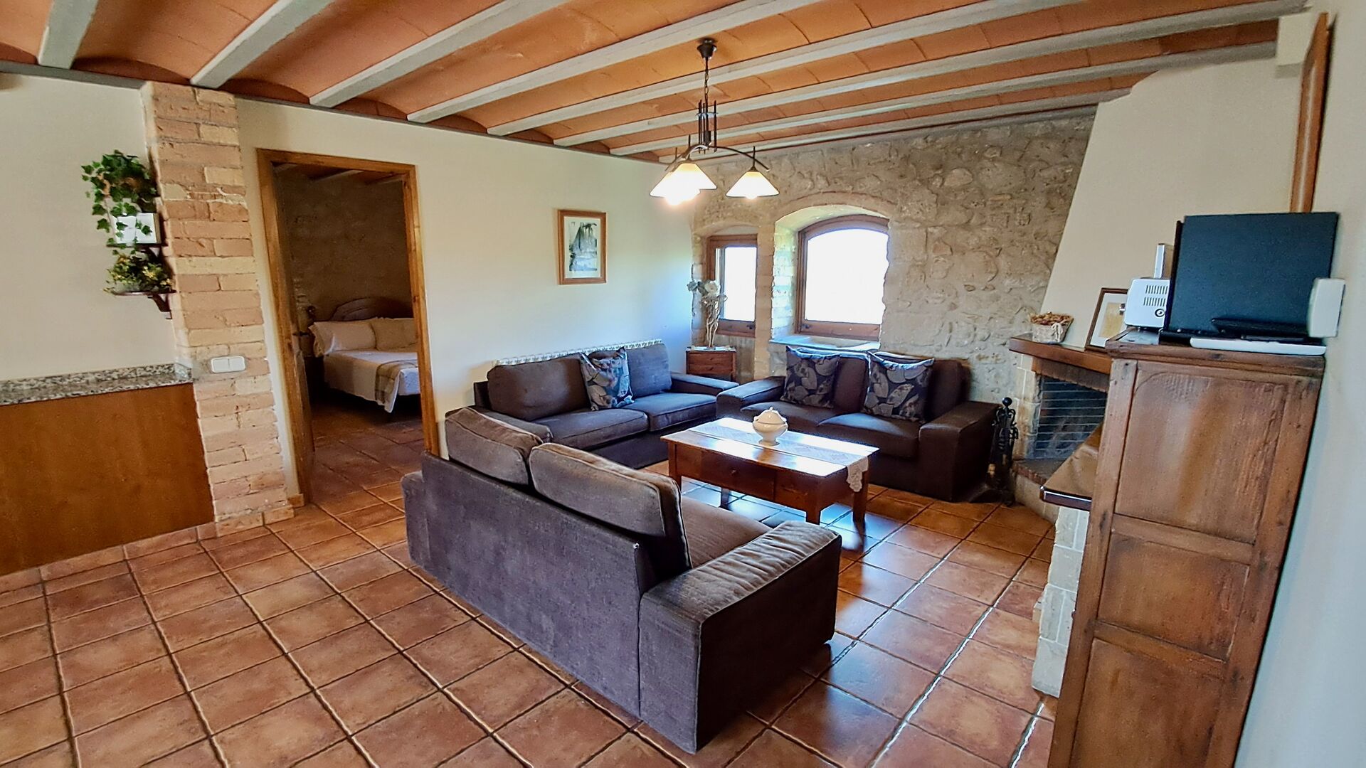 Når man går ind ad hoveddøren, mødes man af et hyggeligt sofaområde med fladskærms TV og DVD. Her er der komfortable sofaer og stole.