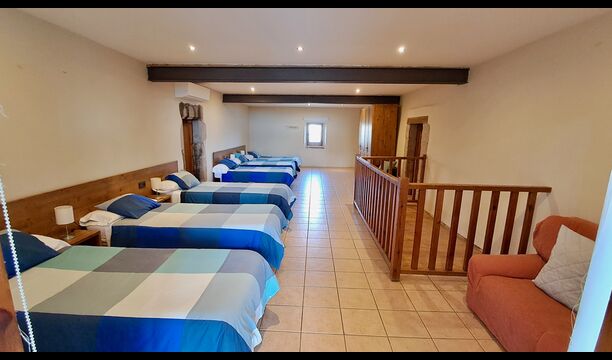 I ferieboligen er der i alt syv rummelige og flot indrettede soveværelser: Seks dobbeltværelser, hvor fire af dem har enkeltsenge og to har dobbeltsenge, og et tripleværelse. Dette tripleværelse passer perfekt til børnene i feriegruppen, og det er ligeledes muligt at få opstillet ekstra opredning (mod tillæg). Der er i feriehuset seks moderne badeværelser, hvor fire af dem er en suite.