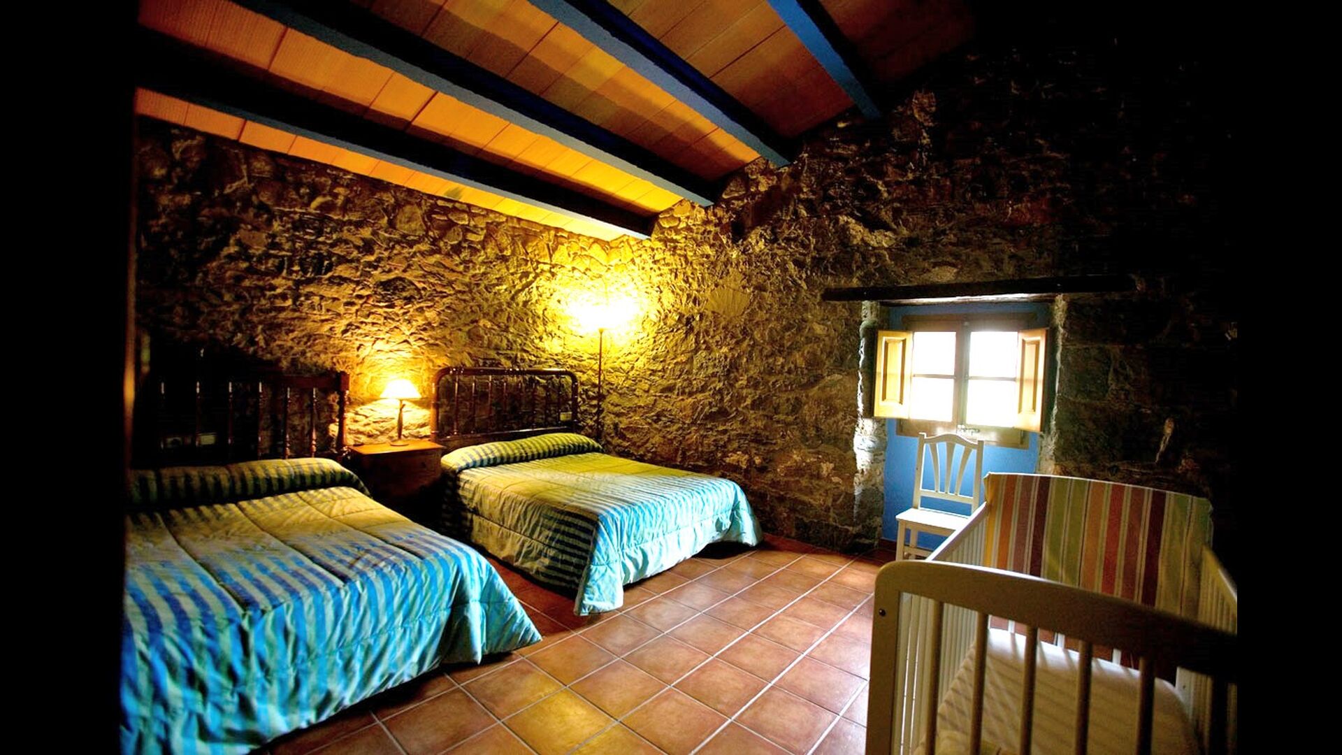 På første sal finder du 3 soveværelser – 2 soveværelser med 2 senge hver og 1 soveværelse med 2 dobbeltsenge. Du finder også 3 badeværelser og en stue hvor du kan samles med venner og familie til en god samtale, bræt- eller kortspil eller middag. Huset leveres også med lagner, tæpper og bade-/brusehåndklæder (swimmingpoolhåndklæder medfølger ikke), samt 2 børnesenge til børn under 3 år.